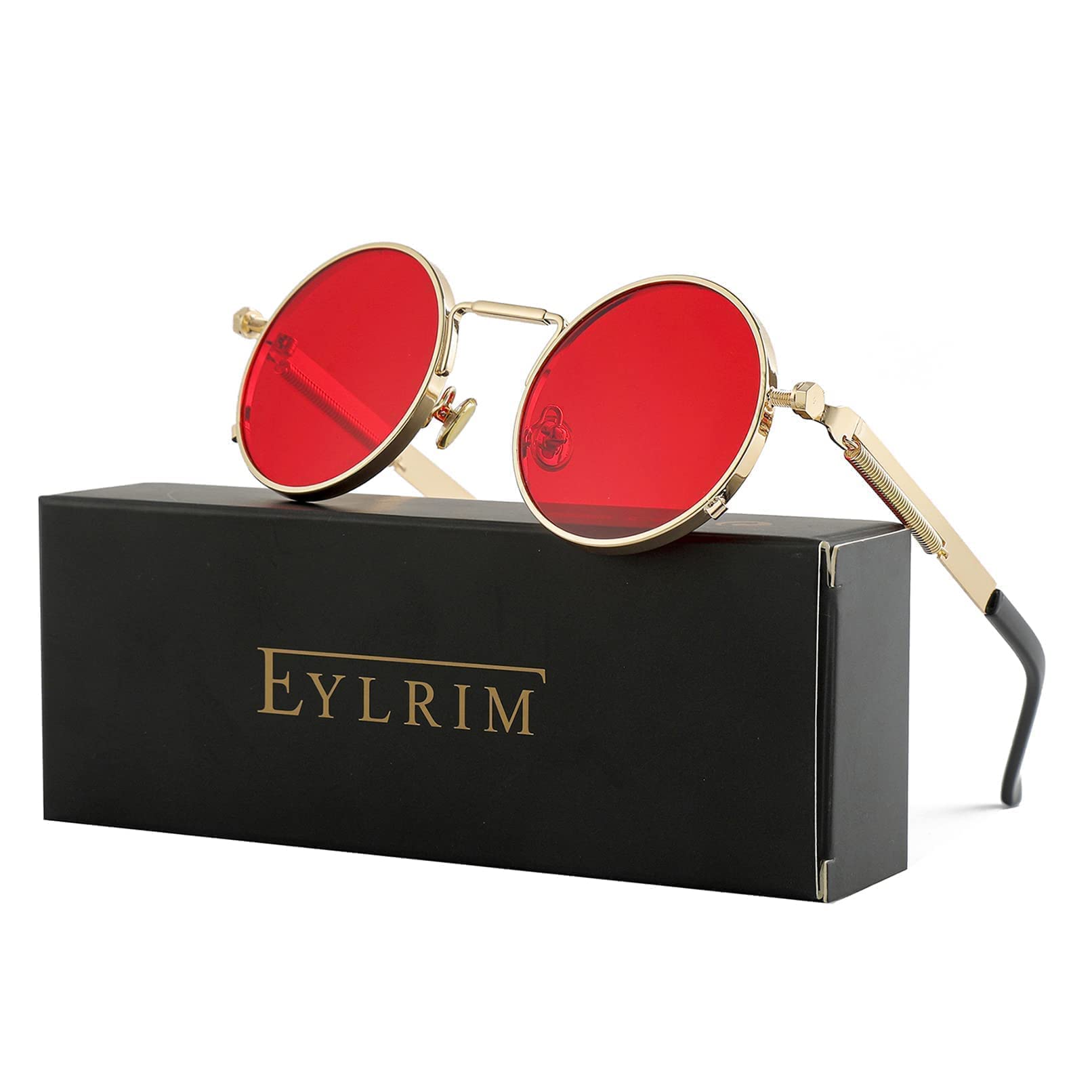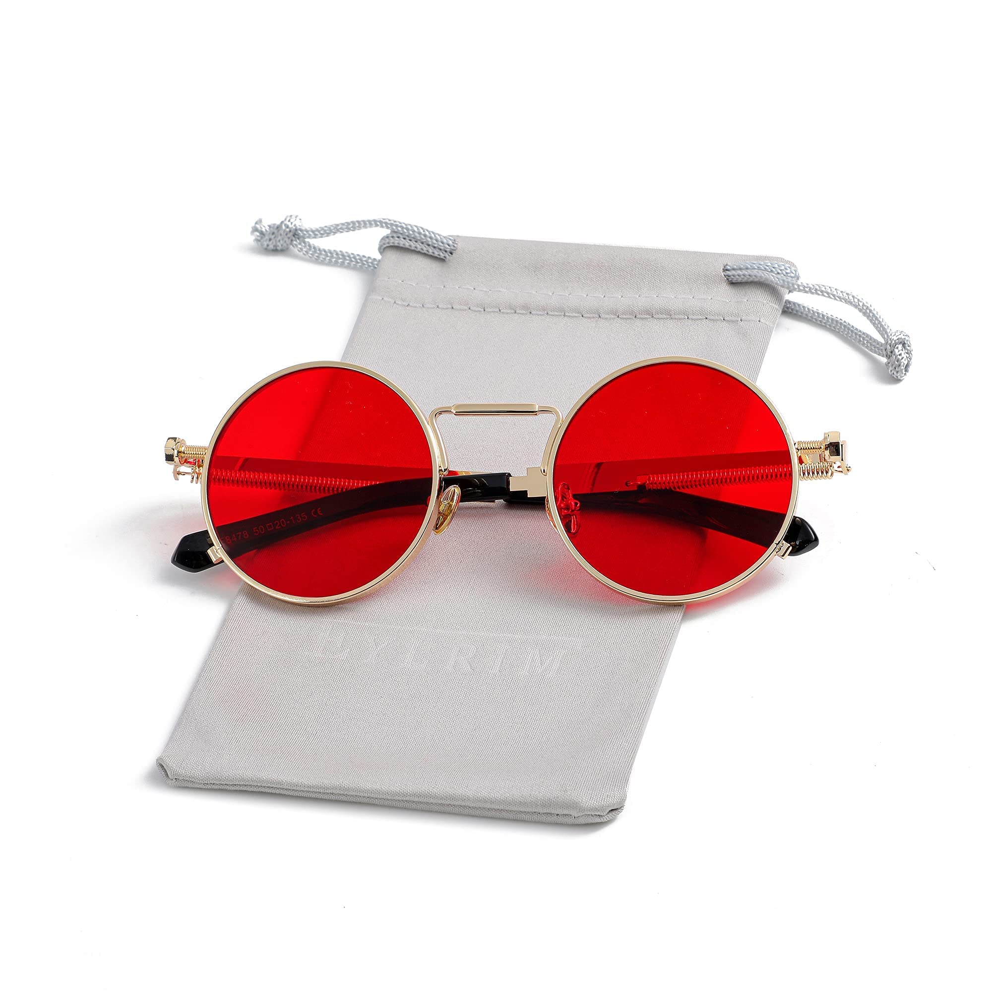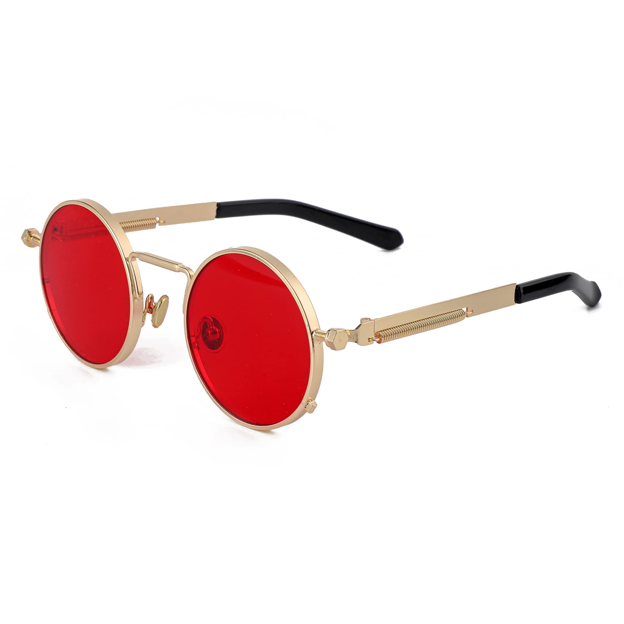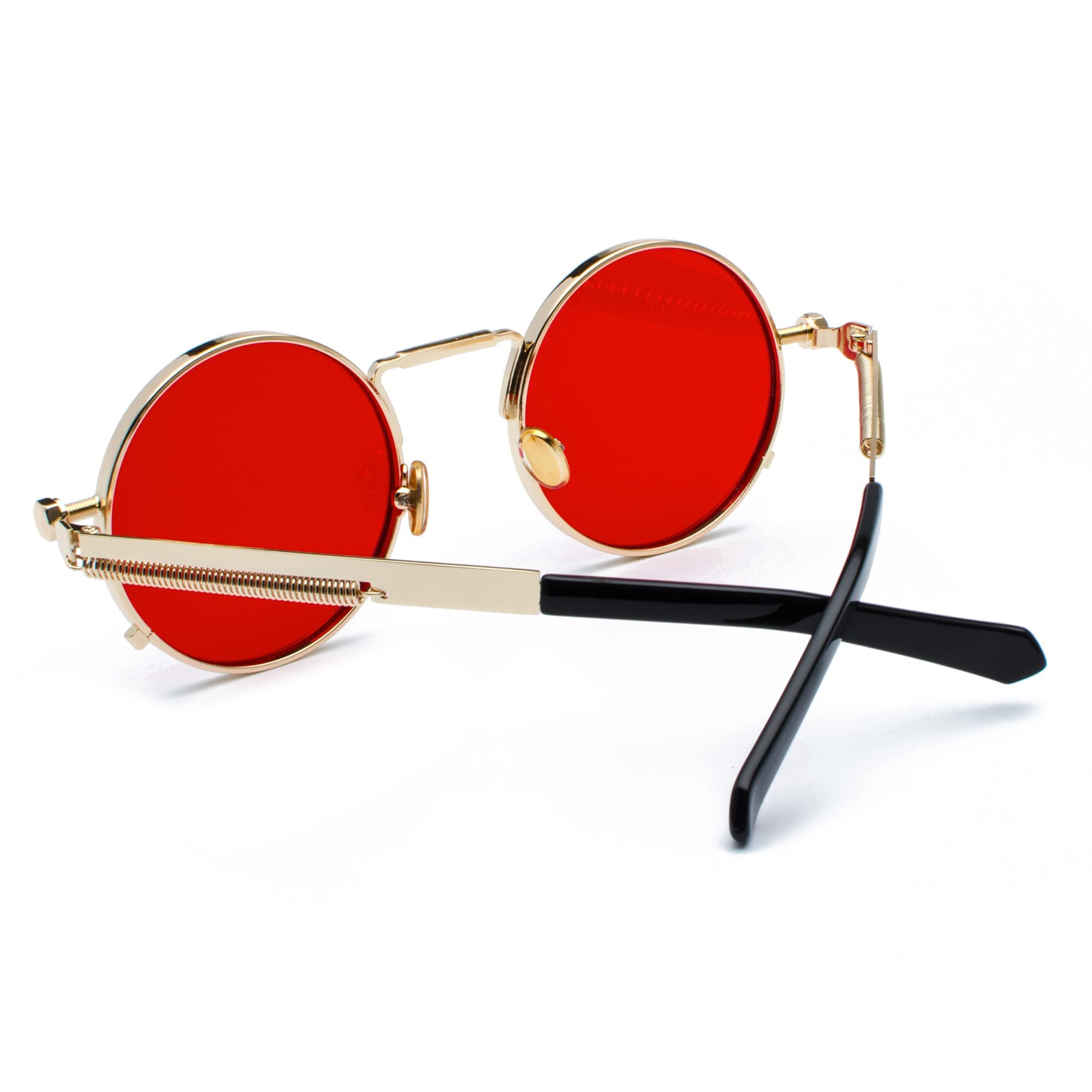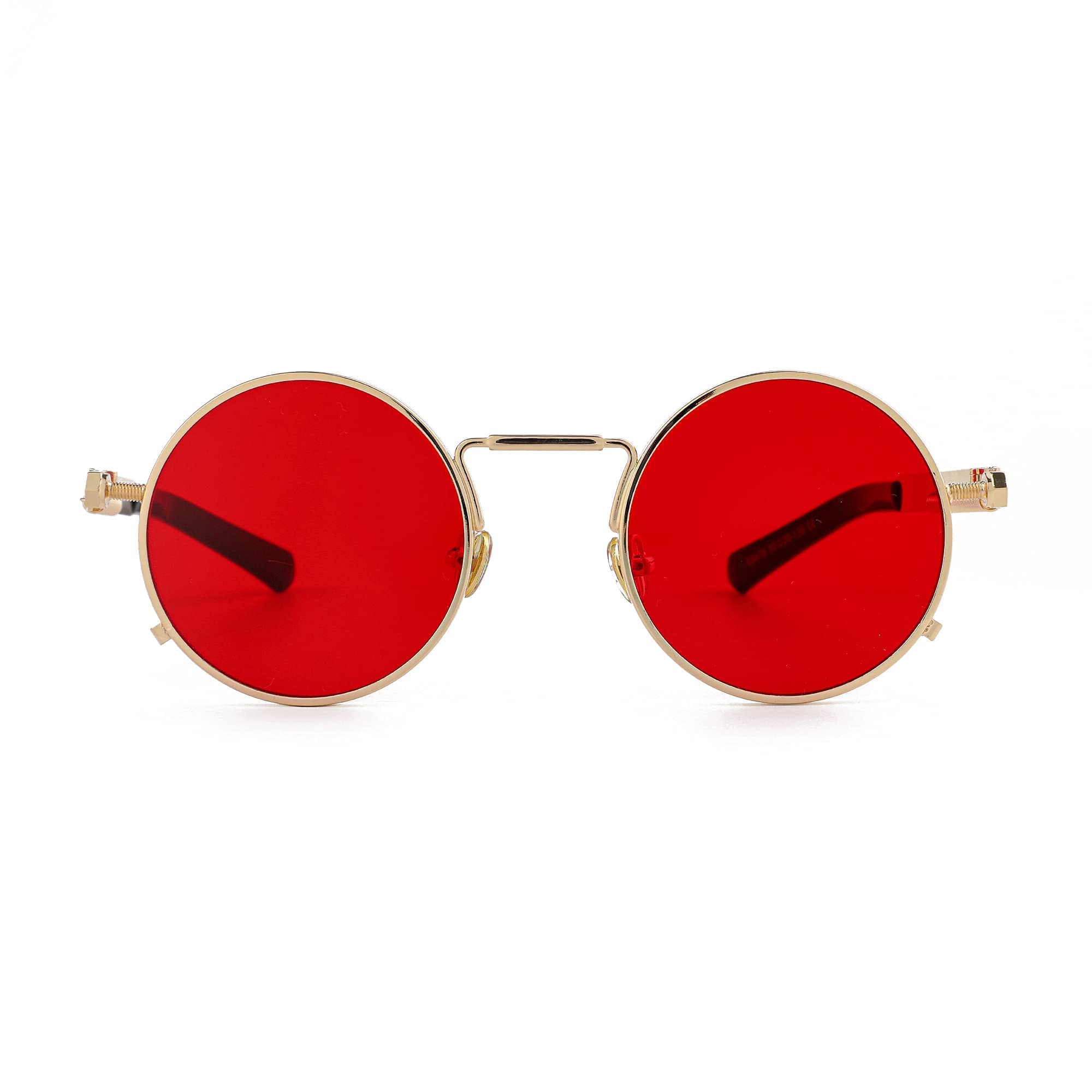 ☀RETRO ROUND SUNGLASSES DESIGN: Ocean red lenses with black round frame retro design, steampunk sunglasses with hip-hop style are very suitable for daily wear, or as an accessory for party and cosplay costumes. This is always the best choice.