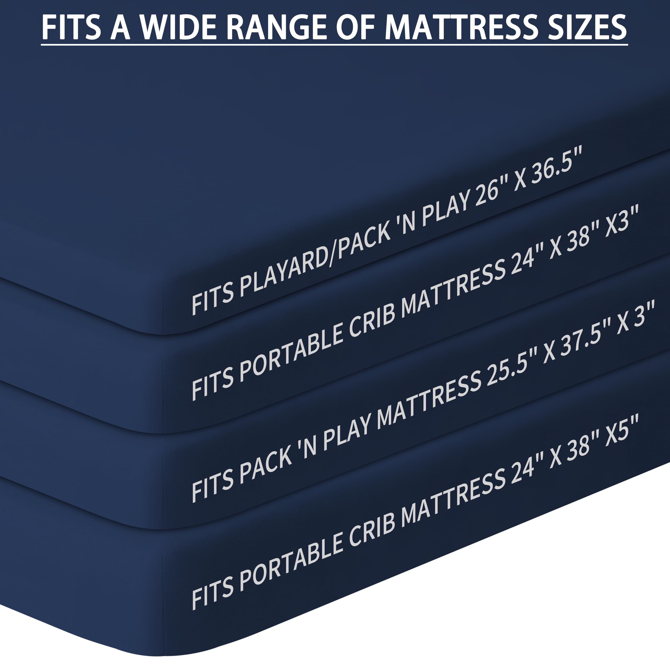 PERFECT FIT: The pack n play sheets measures 38" X 26" X 6". This playard sheet can snug fit your Graco Pack n Play or potable playard mattress no loose but flat which gives your baby a comfortable playground. Also fit for a mini crib mattress.