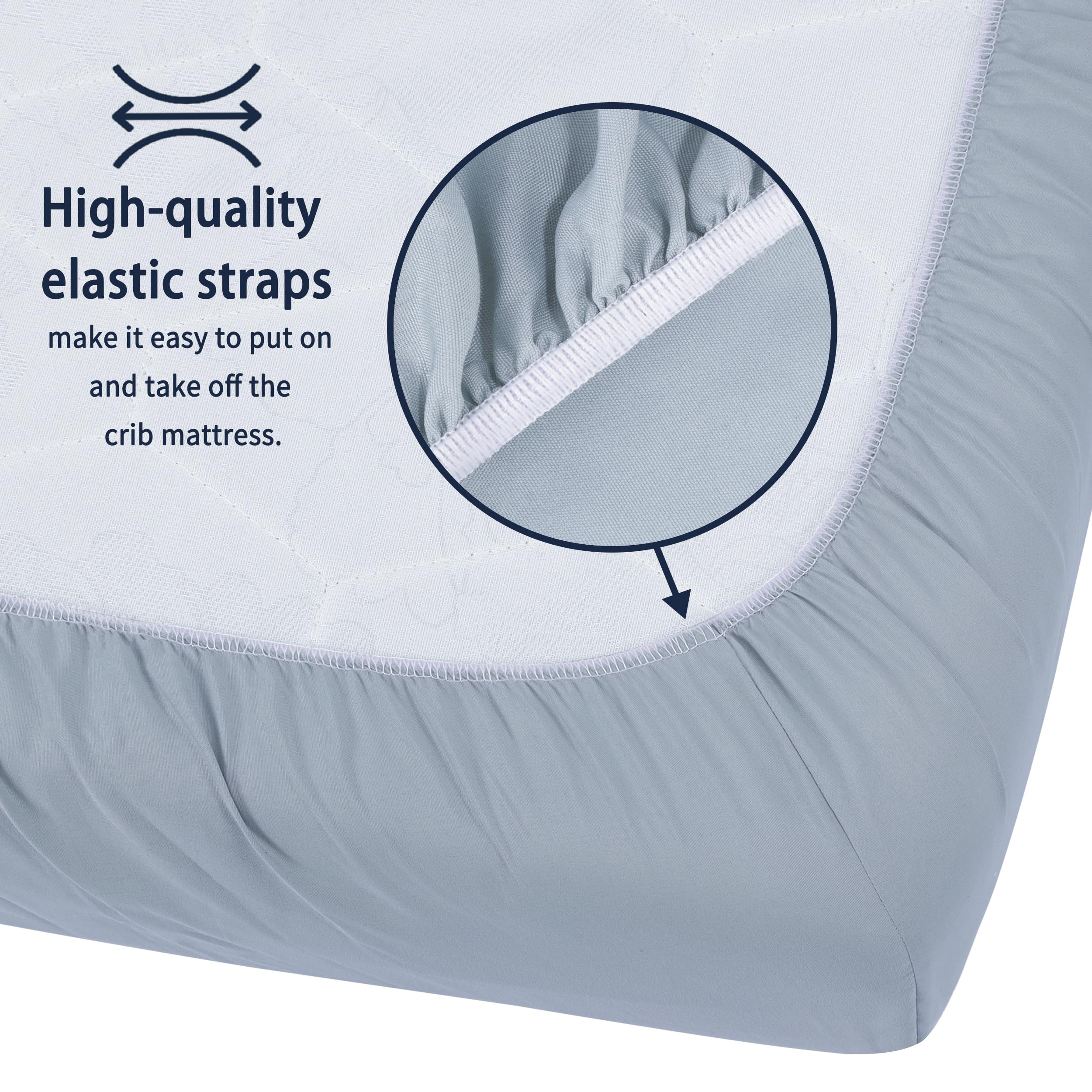 EASY TO SET UP - Each sheet comes with elastic straps that make it easy to remove the sheet from the crib mattress or take it off. Durable straps around the entire edge hold the pack and play sheets securely in place