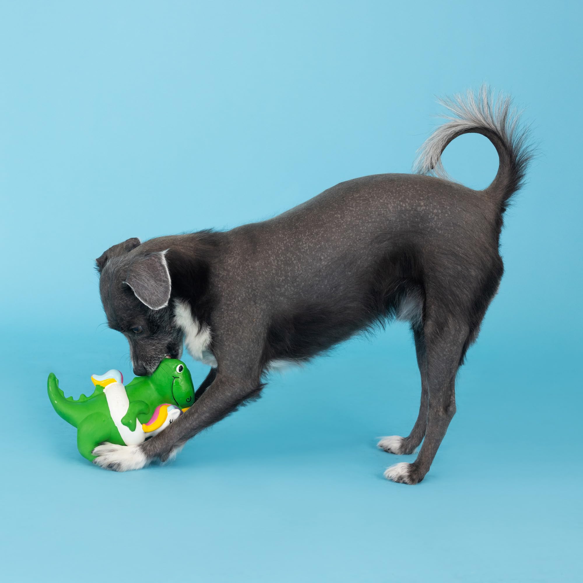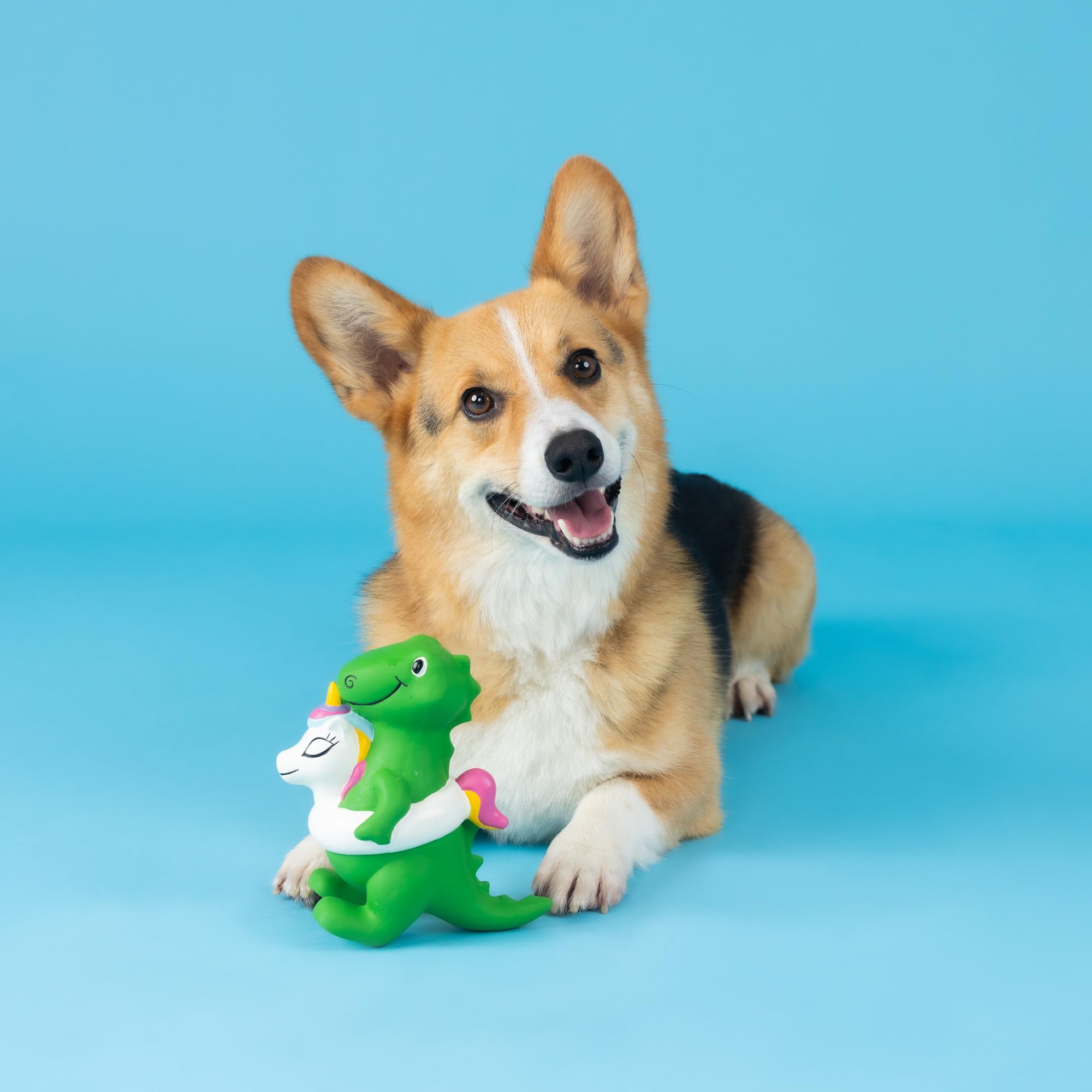 Make it summertime all the time! PetShop by Fringe Studio's “Pool Side Rex” latex toy is perfect for playtime, anytime. Made with natural latex and a super loud squeaker, this toy is ready for fun in the sun. Great for all-sized dogs and not intended for aggressive chewers.