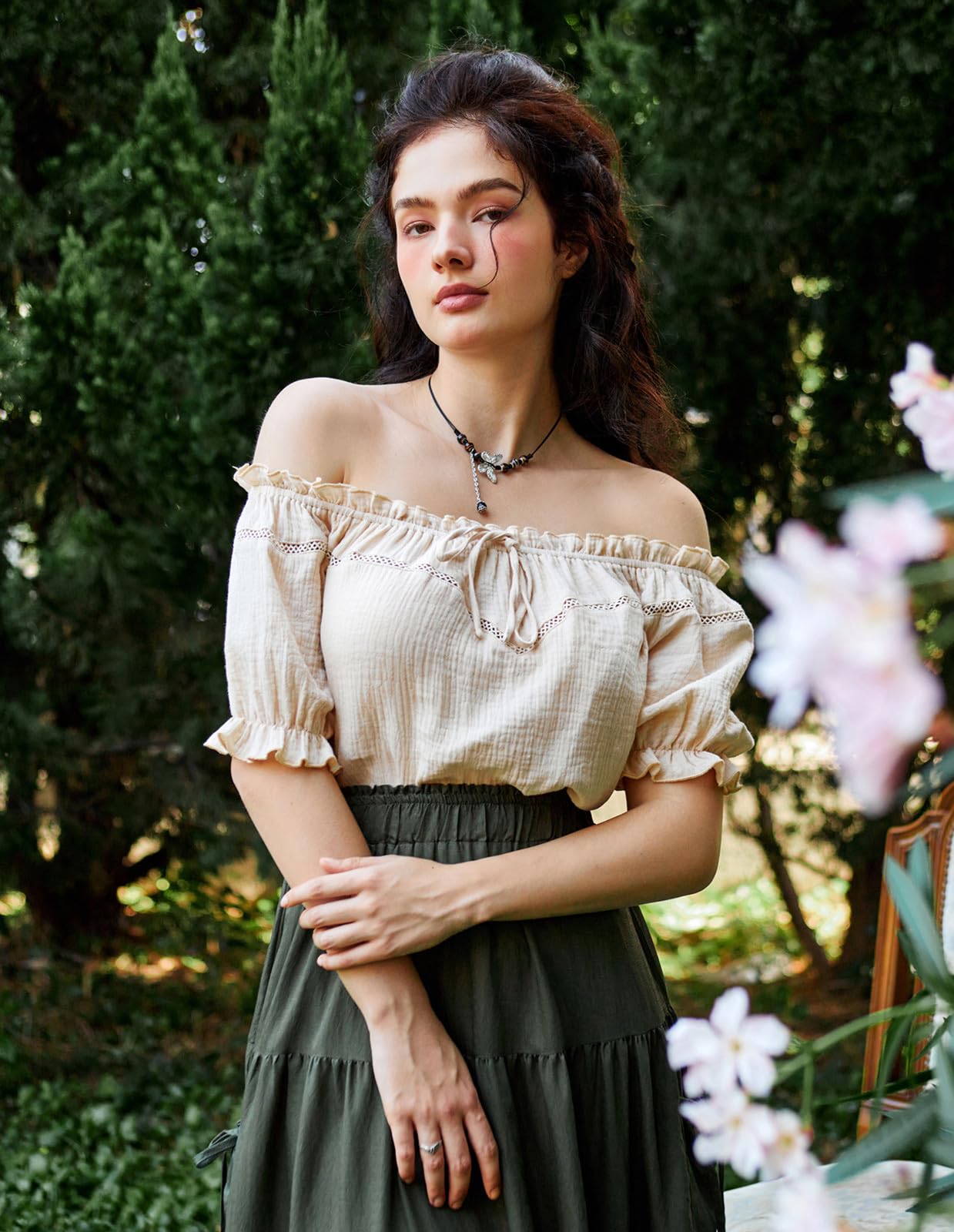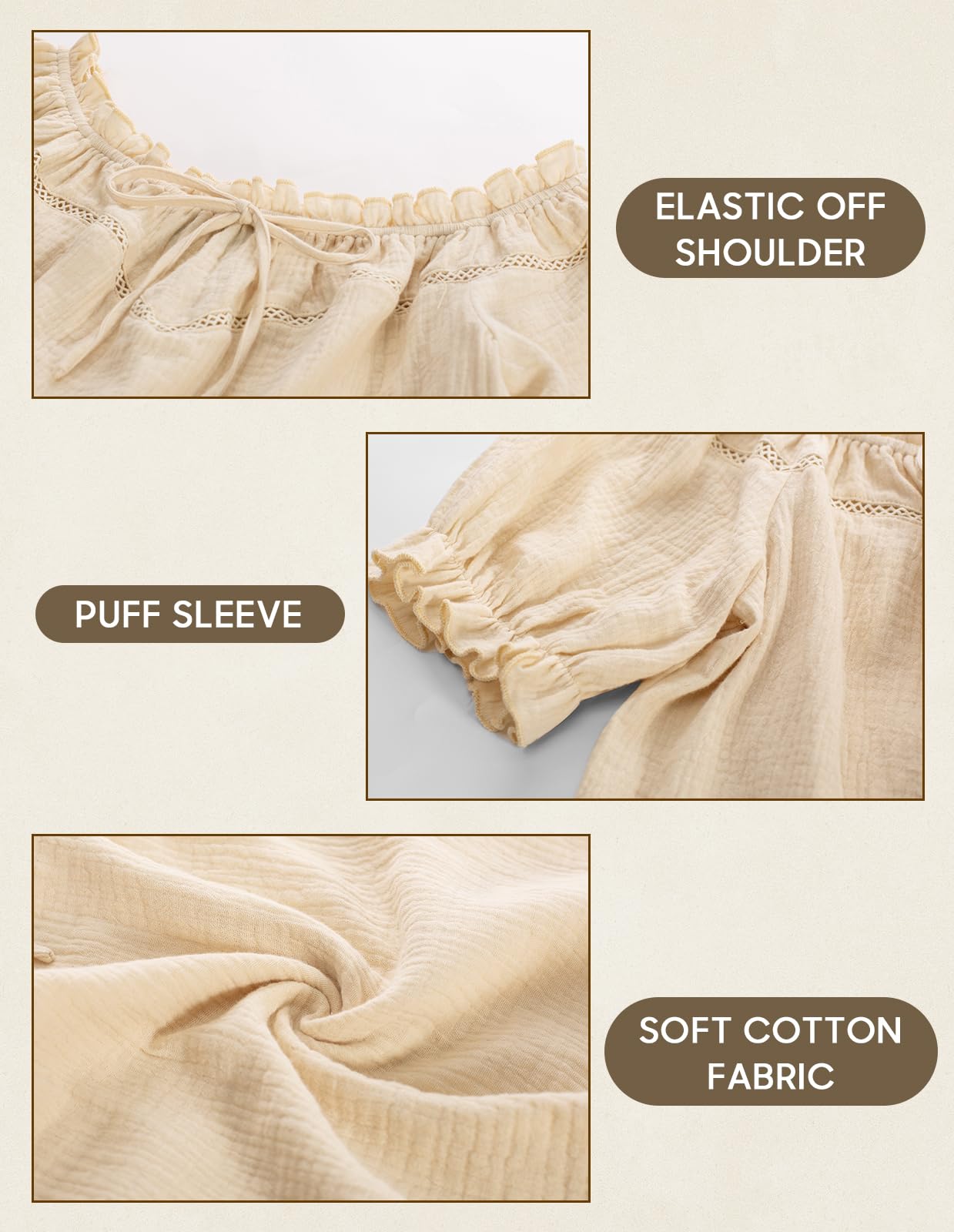 Features: Embrace the softness of cotton against your skin, while the off-shoulder design adds a touch of allure. The playful puff sleeves bring a hint of whimsy to elevate your style