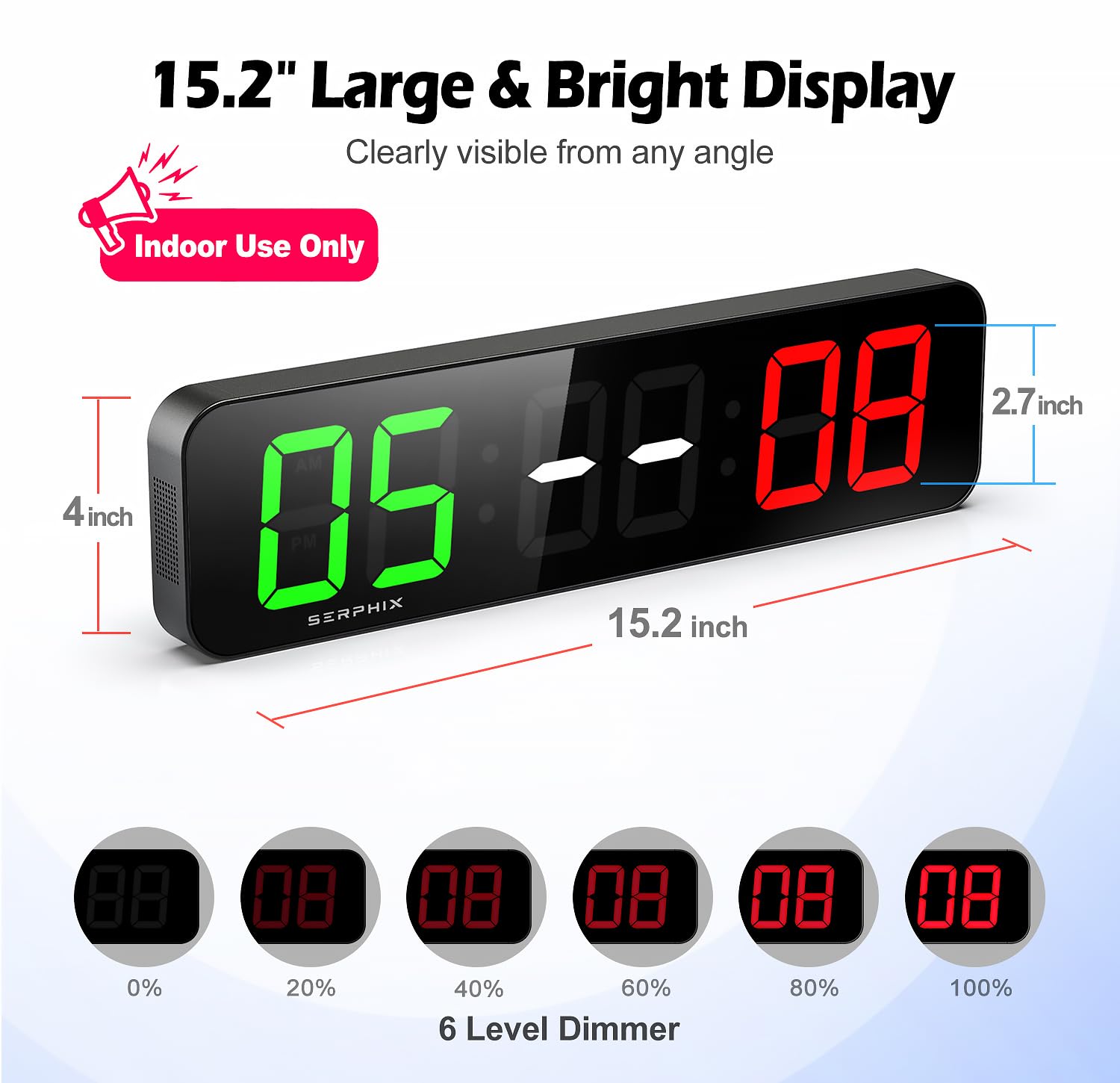 【Large Digital Display】The size is 15.2 x 4 x 1.5 inches, with 2.7-inch large digits. The score spacing is noticeable for clear reading from a distance. It features 5 levels of adjustable brightness to meet various indoor gaming needs.