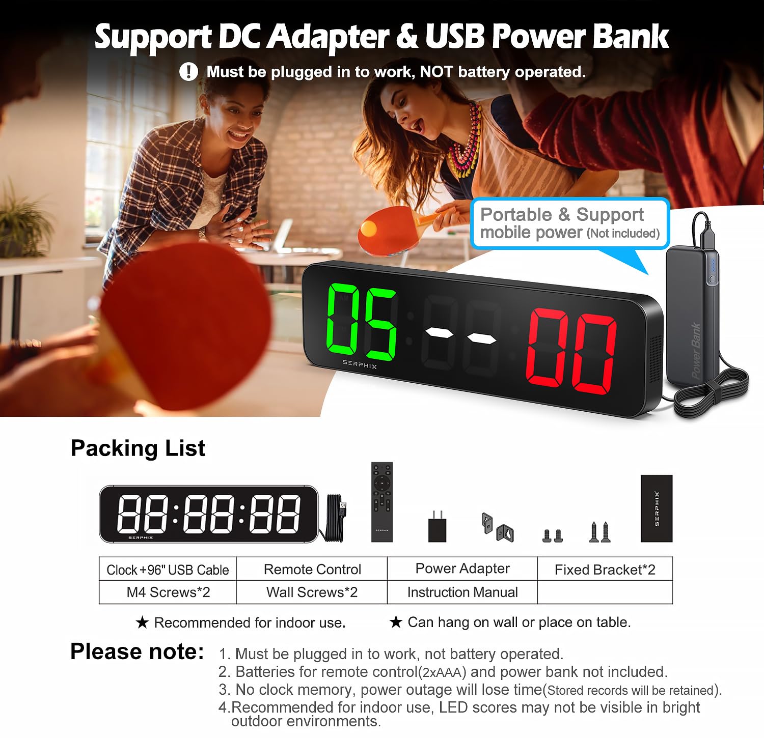 ❗【Recommended for Indoor Use】LED scores may not be visible in bright outdoor environments.