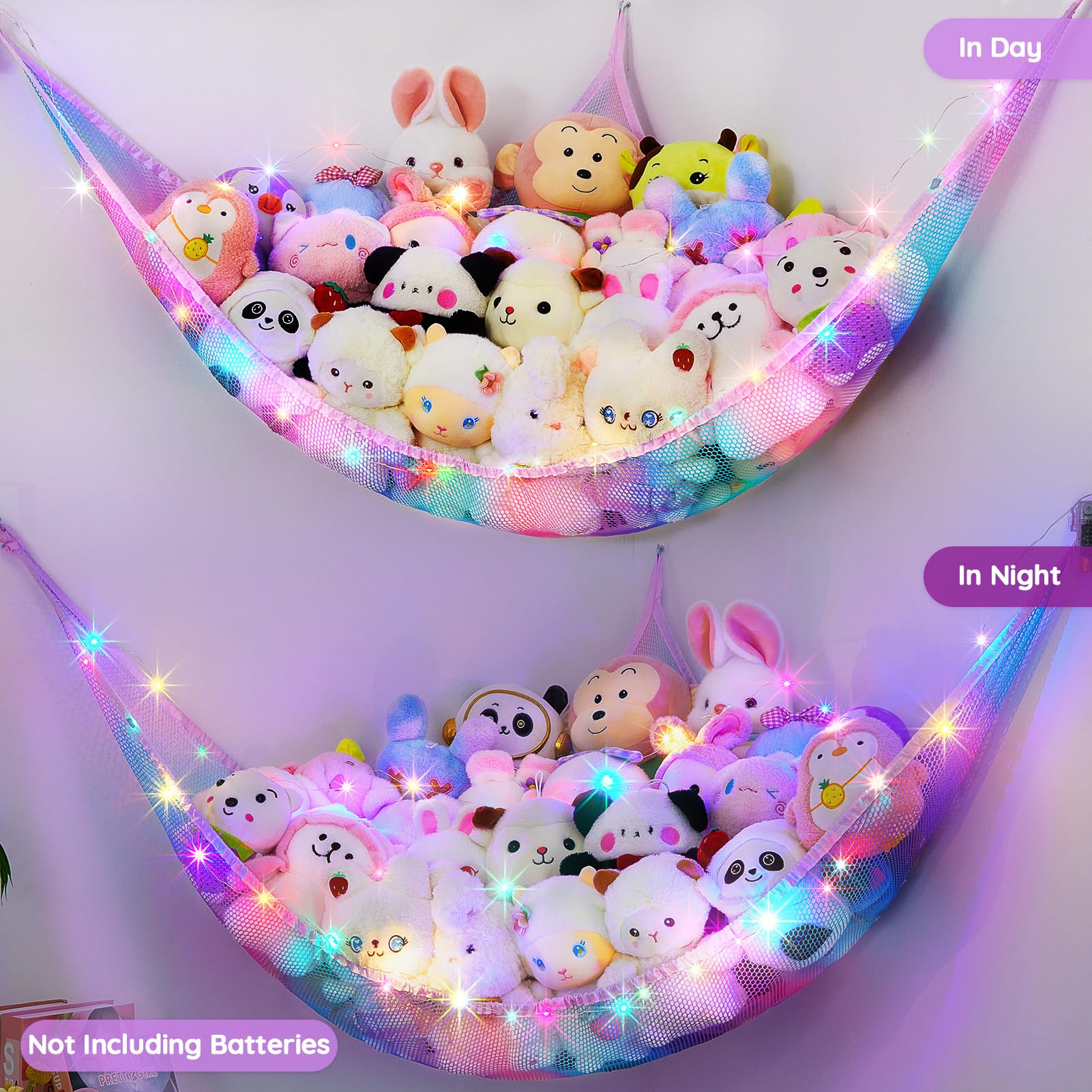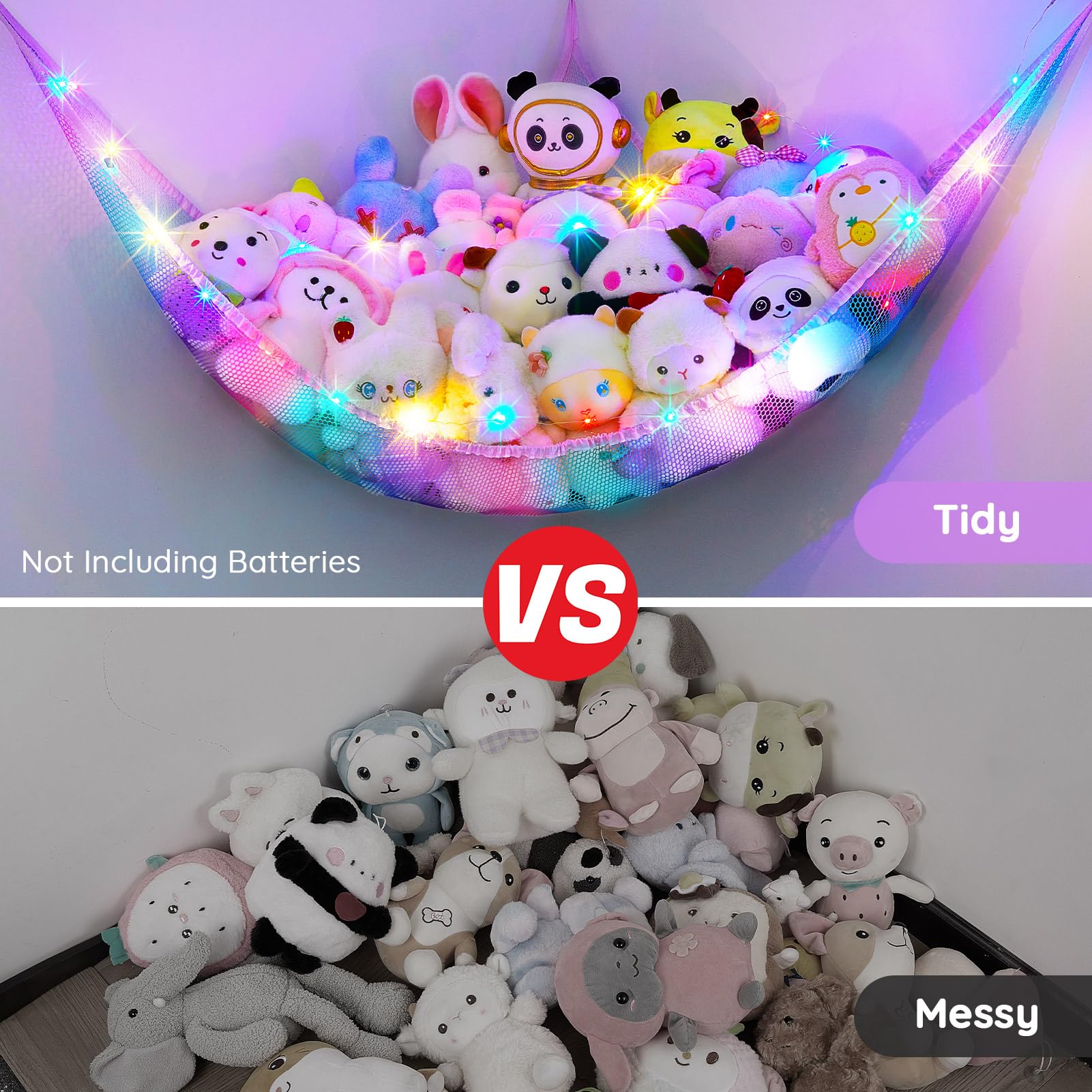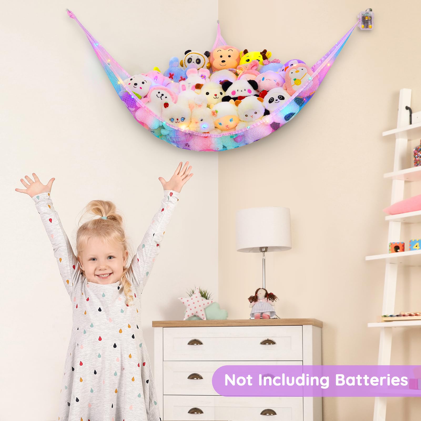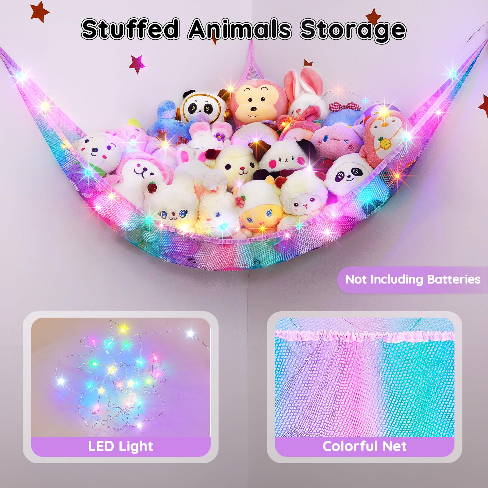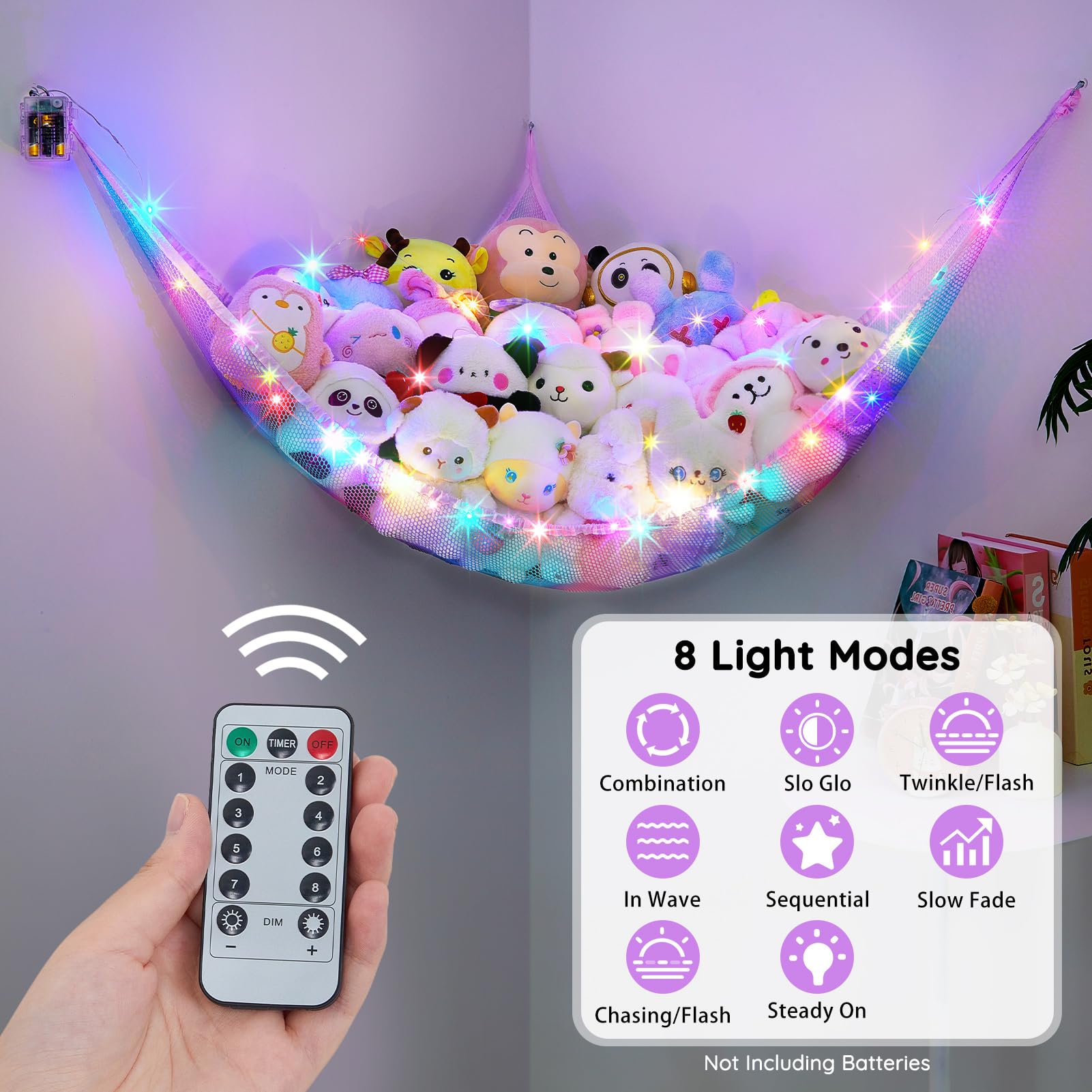 Stuffed Animal Net with LED Light: A strip light comes with the toy hammock and the light can adjust 8 different lighting modes