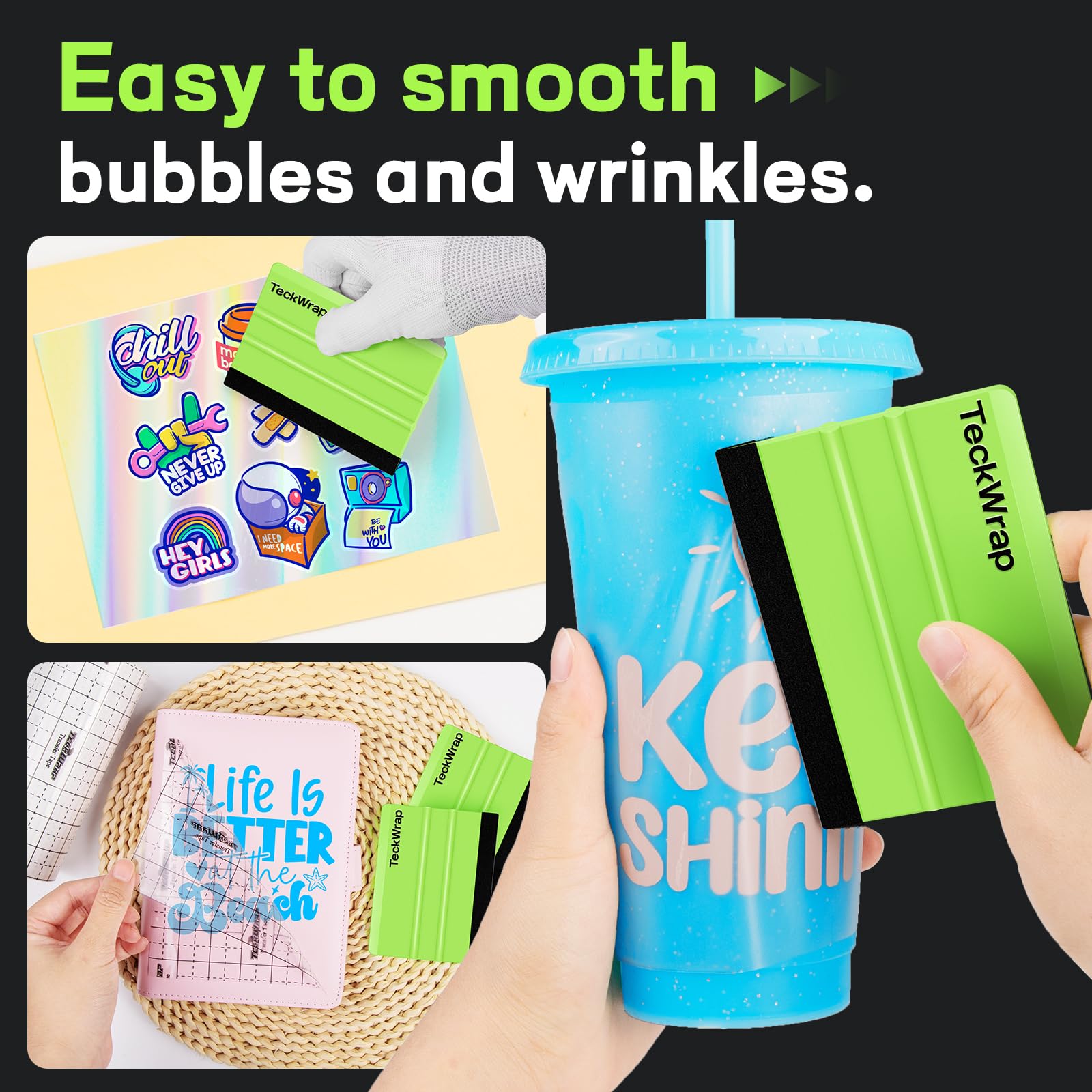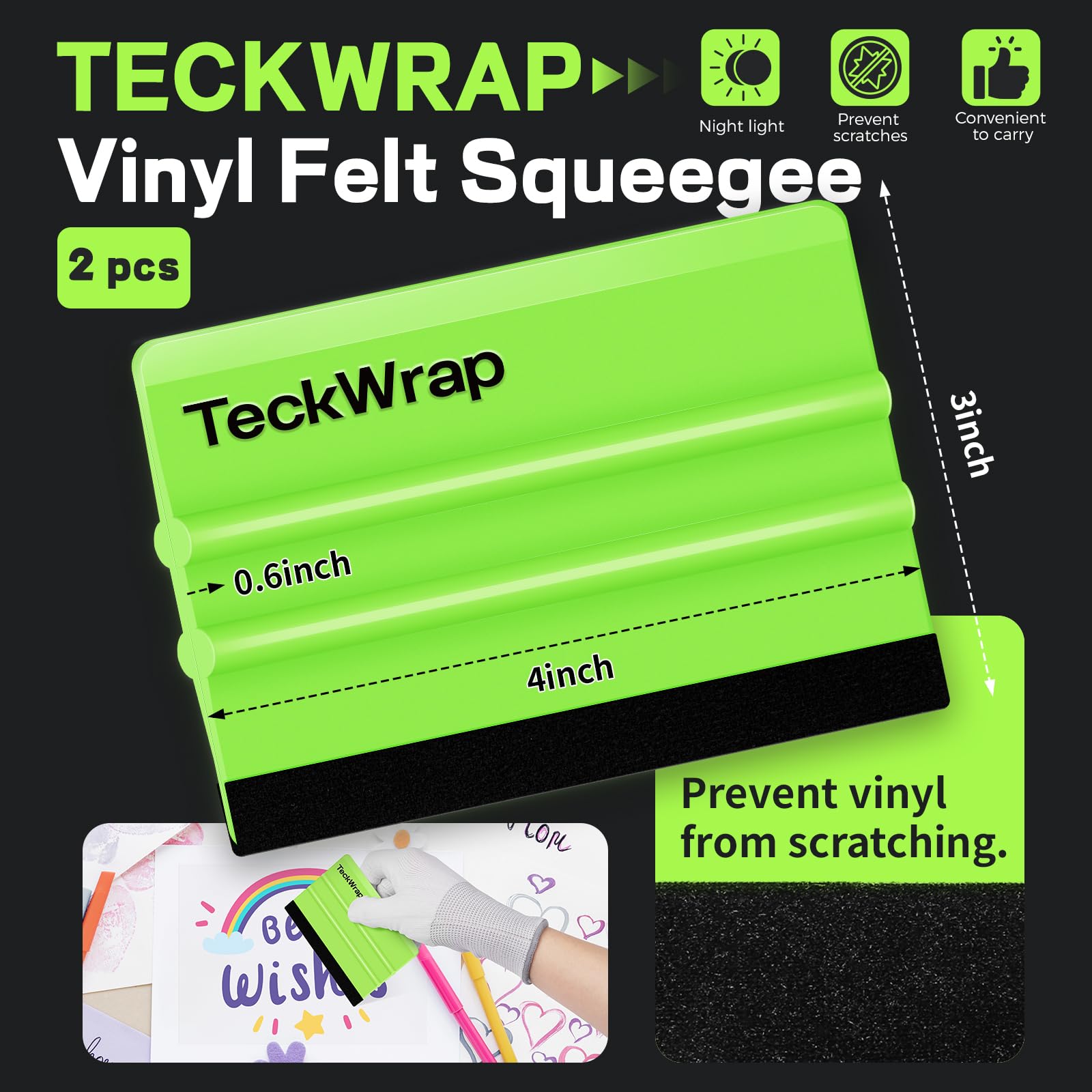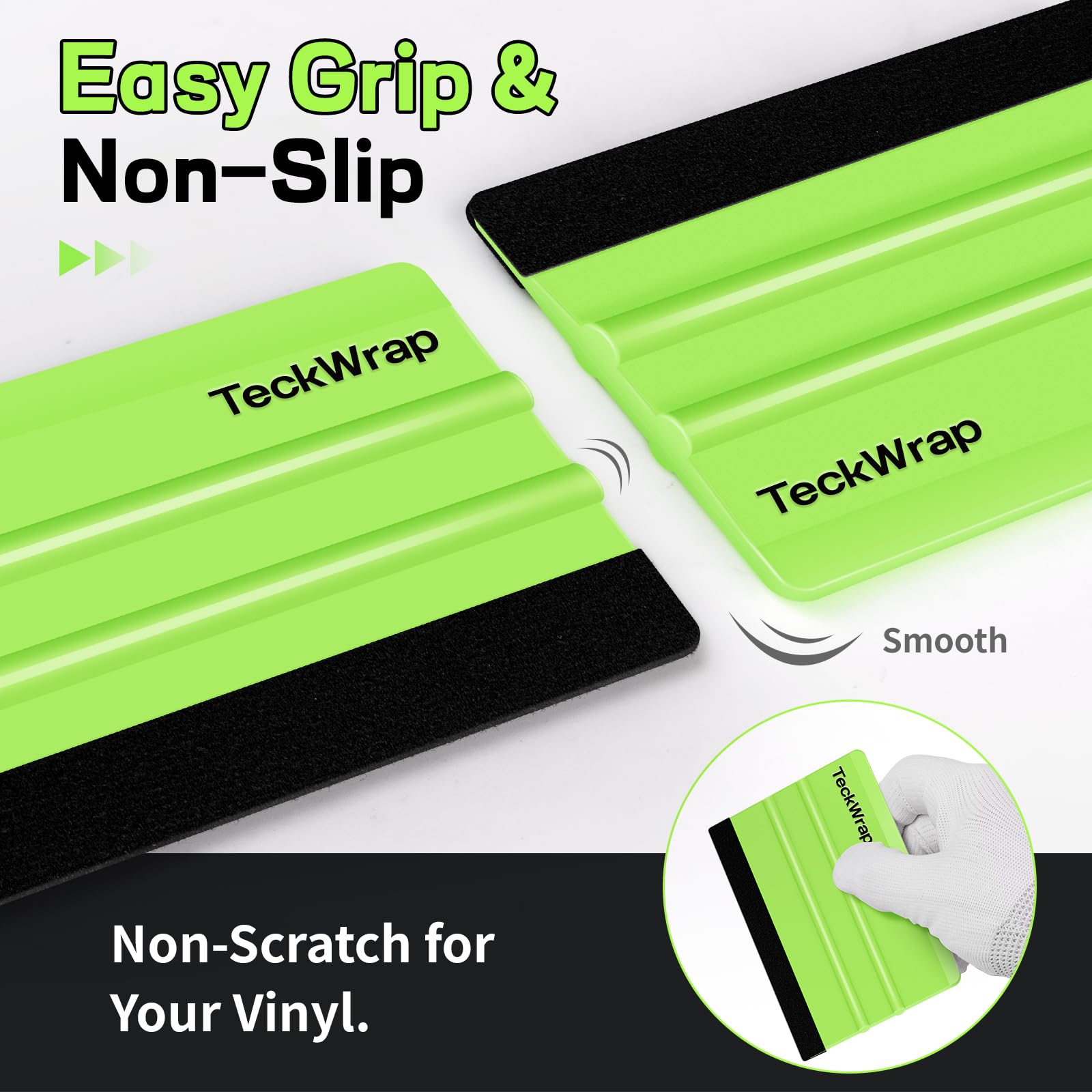 TECKWRAP vinyl squeegee tool, your ultimate companion for flawless application in various tasks such as vinyl decals, inkjet vinyl sticker paper and wallpaper installation. Crafted with ergonomic excellence, this professional-grade squeegee ensures optimal performance and reliability, featuring a comfortable grip that minimizes hand fatigue during extended use. Its fabric felt protection guarantees scratch-free application, preserving the integrity of surfaces. Compact and practical, this plastic squeegee non scratch for decals is easy to carry and store, making it a versatile addition to your kit for all your application needs.