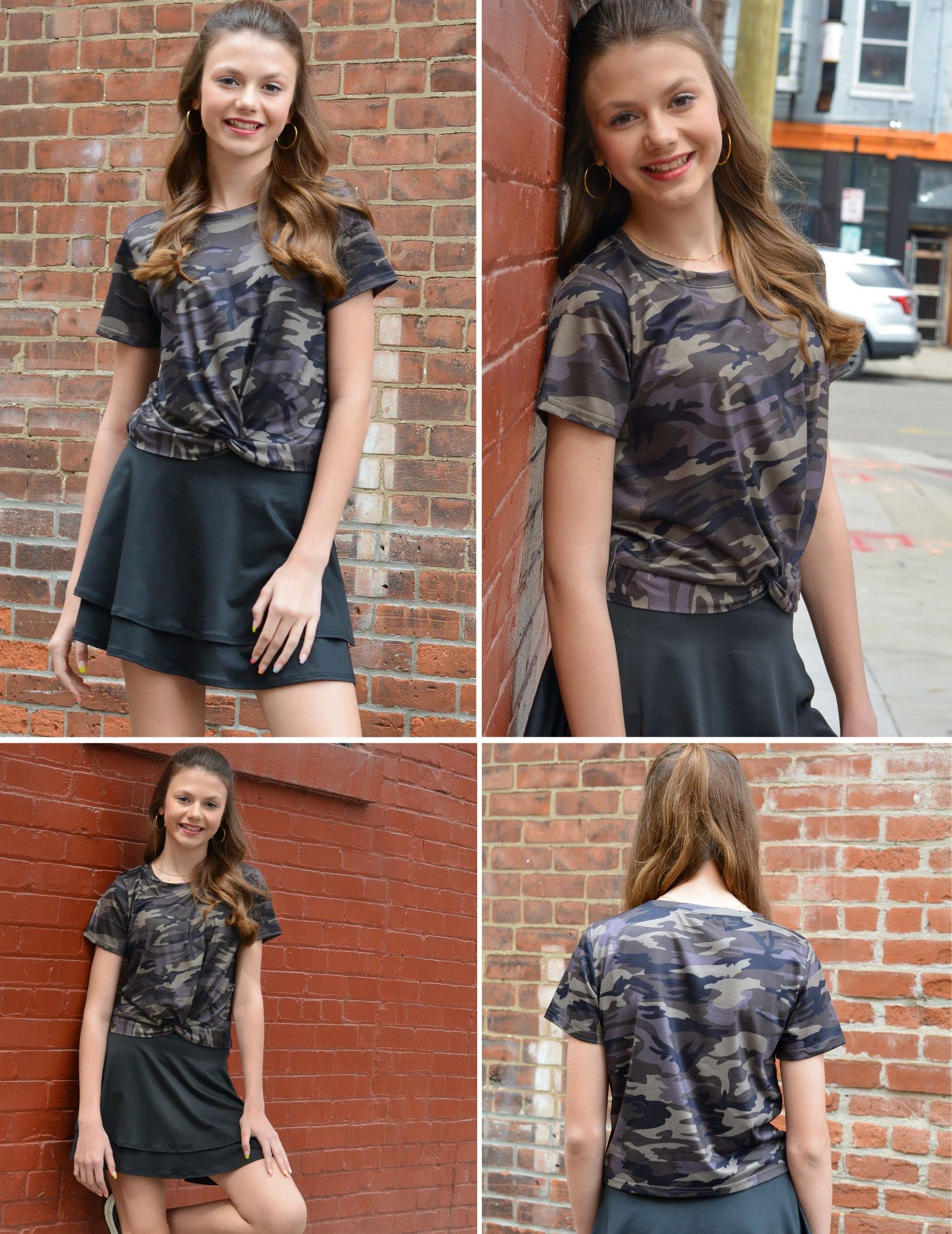 Twisted:Twist front top tee,short sleeve shirts,classic O-neck design,special popular tie dye print Tees short,Unique for hot summer