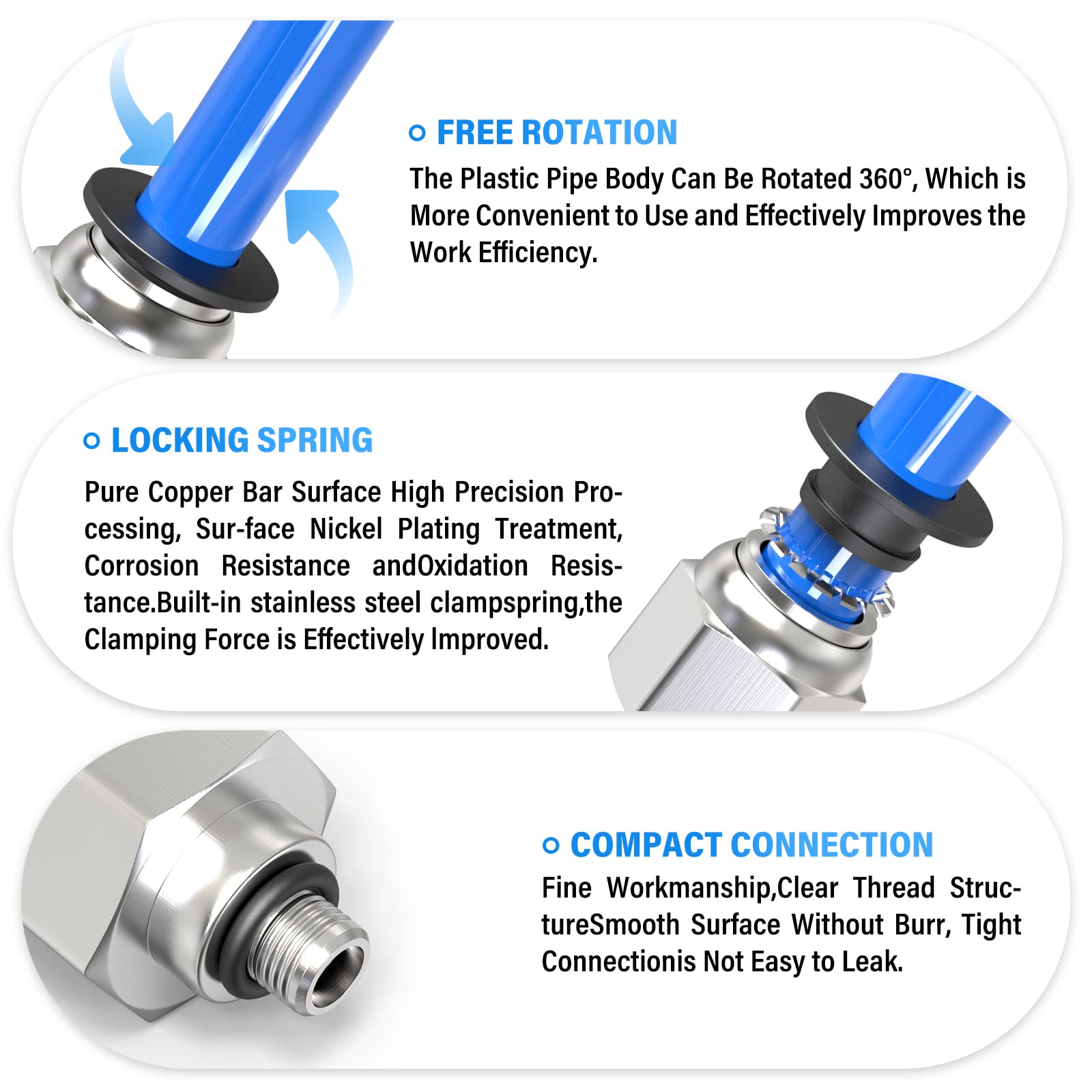 ★Product Specification: Size:6mm Tube OD x M5 Thread Material:Copper and Plastic Shape: Straight Shape Pressure Range: 0 ~ 145Psi Operating Temperature Range: 32~140°F Medium: Water, Air,Oil Etc. ★Package Included: 10×Straight Shape Tube Fittings Push Lock ★Product Feature: 1. Corrosion Resistance, High Density, Not Easy to Burst. 2. The product is Sturdy and Durable and Has a Long Service Life. 3. Easy Assembly, Easy and Simple. 4. It Can be Used for The Connection of pipes and The Use of Different Pneumatic Components, and Has a Wide Range of Uses. ★Attention! 1.Do Not Use for Fittings for Drinking Water Pipes. 2.Avoid Contact with Fire Sources. 3.Working Pressure Must Not Exceed 145psi. 4.Do Not Use Fittings under Extra External Load (Bend, Twist or Pull), Otherwise It will Cause Damage or Leakage. 5.Avoid Mixing with Incompatible Materials (Strong Oxidants, Acids, Bases, Etc.).