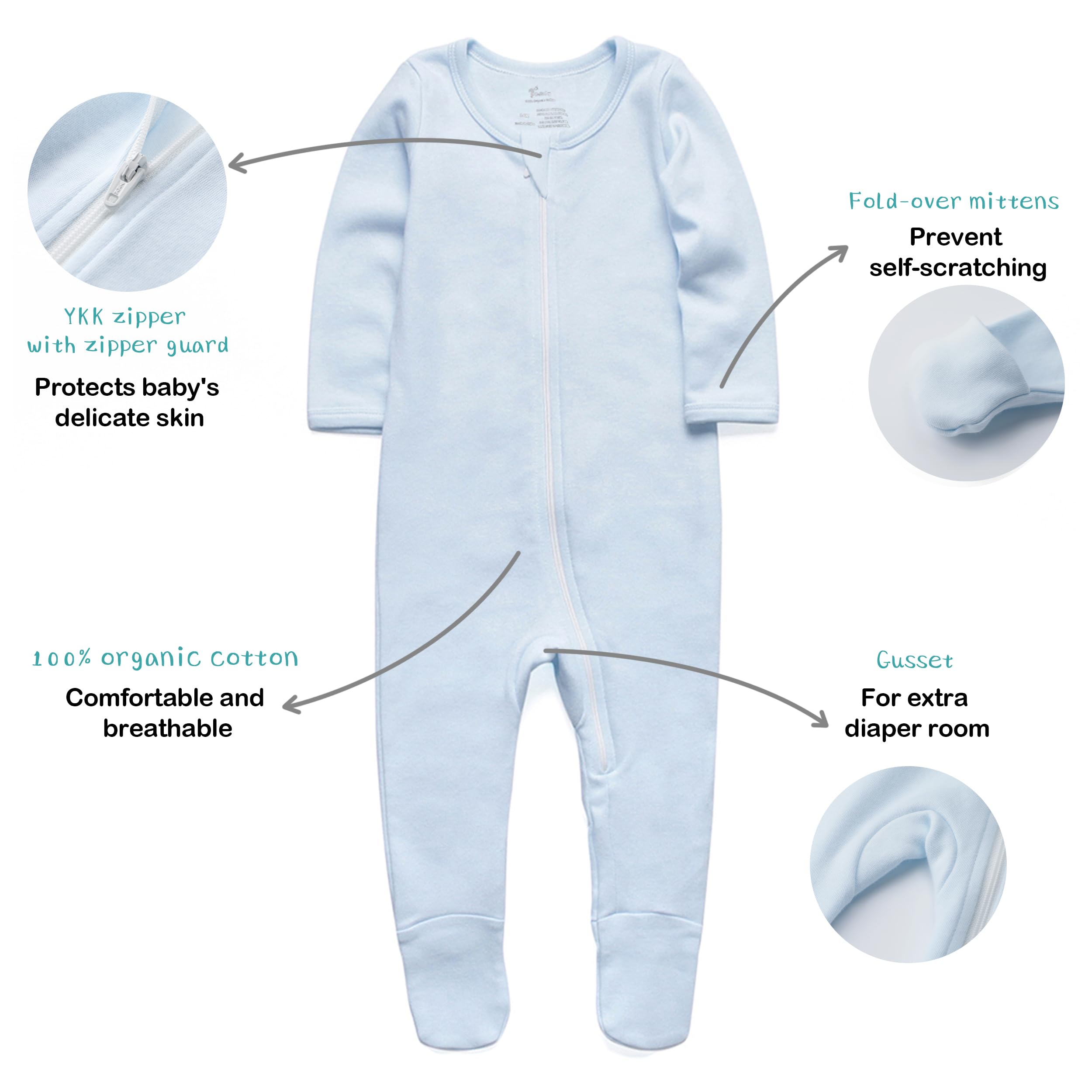 Made of 100% organic cotton fabric. Award-winning soft sleeper PJs, comfortable and breathable for baby’s sensitive skin,perfect onesie for any occasion