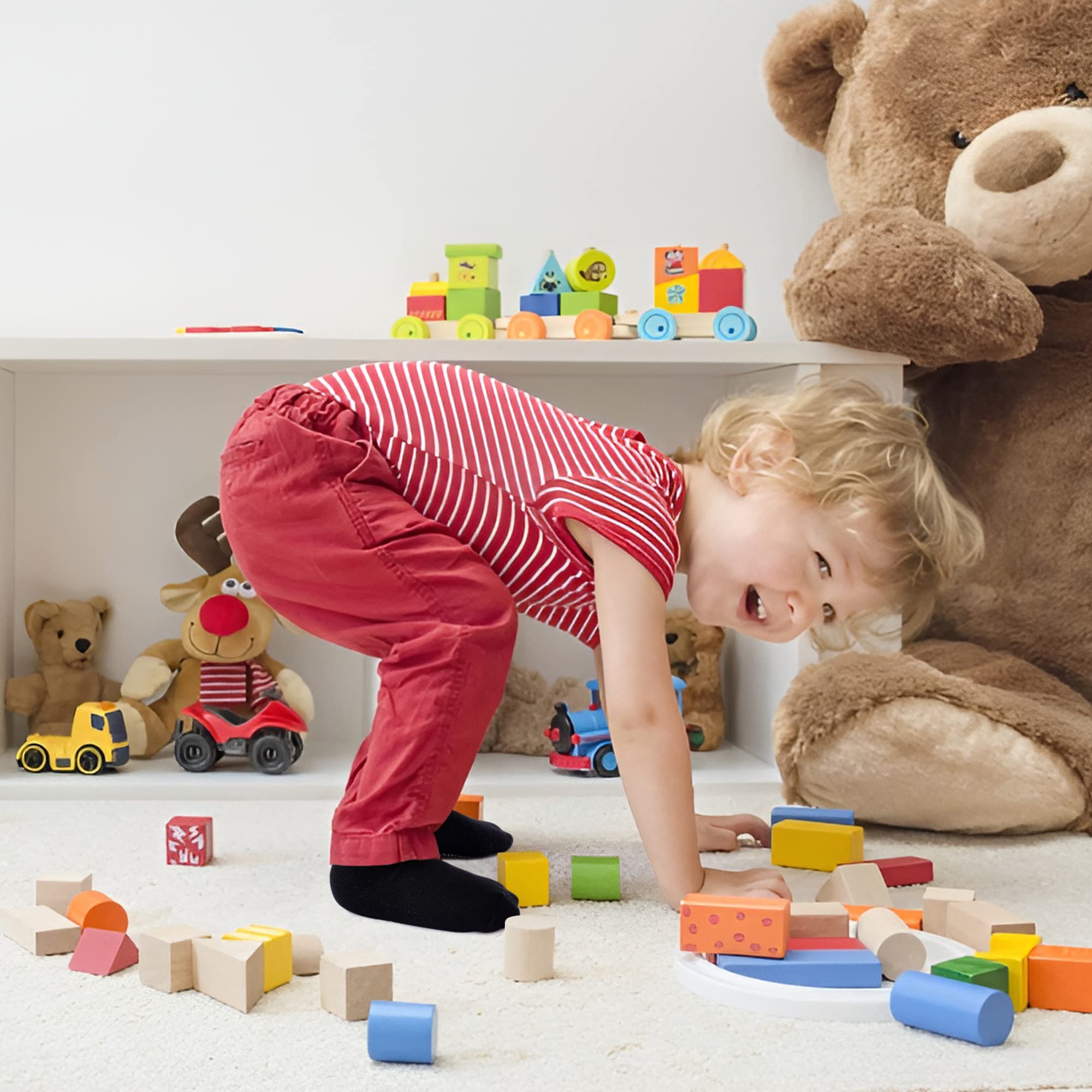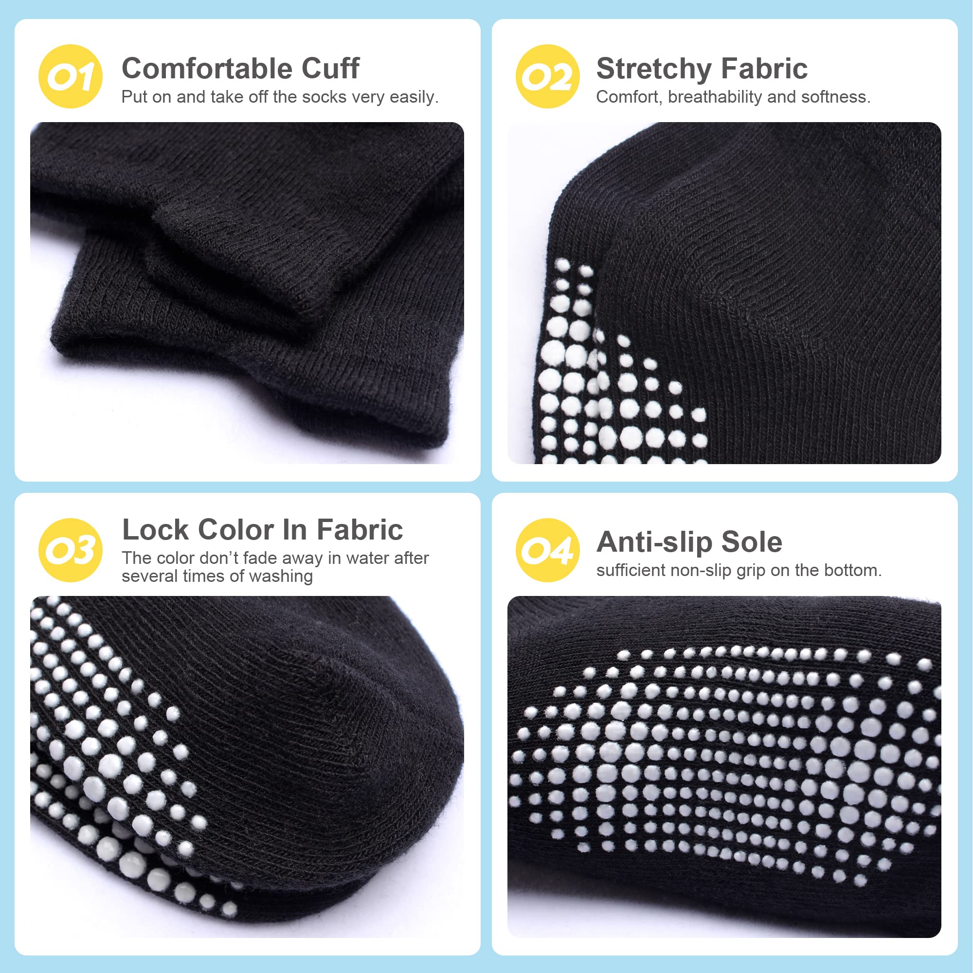 π£VALUE PACK: 12 pairs of toddler non slip socks with Pure & Bright color at very reasonable price. Suitable for kids ages 3-5T, from shoe sizes 9-11. These toddler grip socks are easily to match with multiple outfits. Unisex 3t 4t 5t socks are perfect for active baby and toddlers.