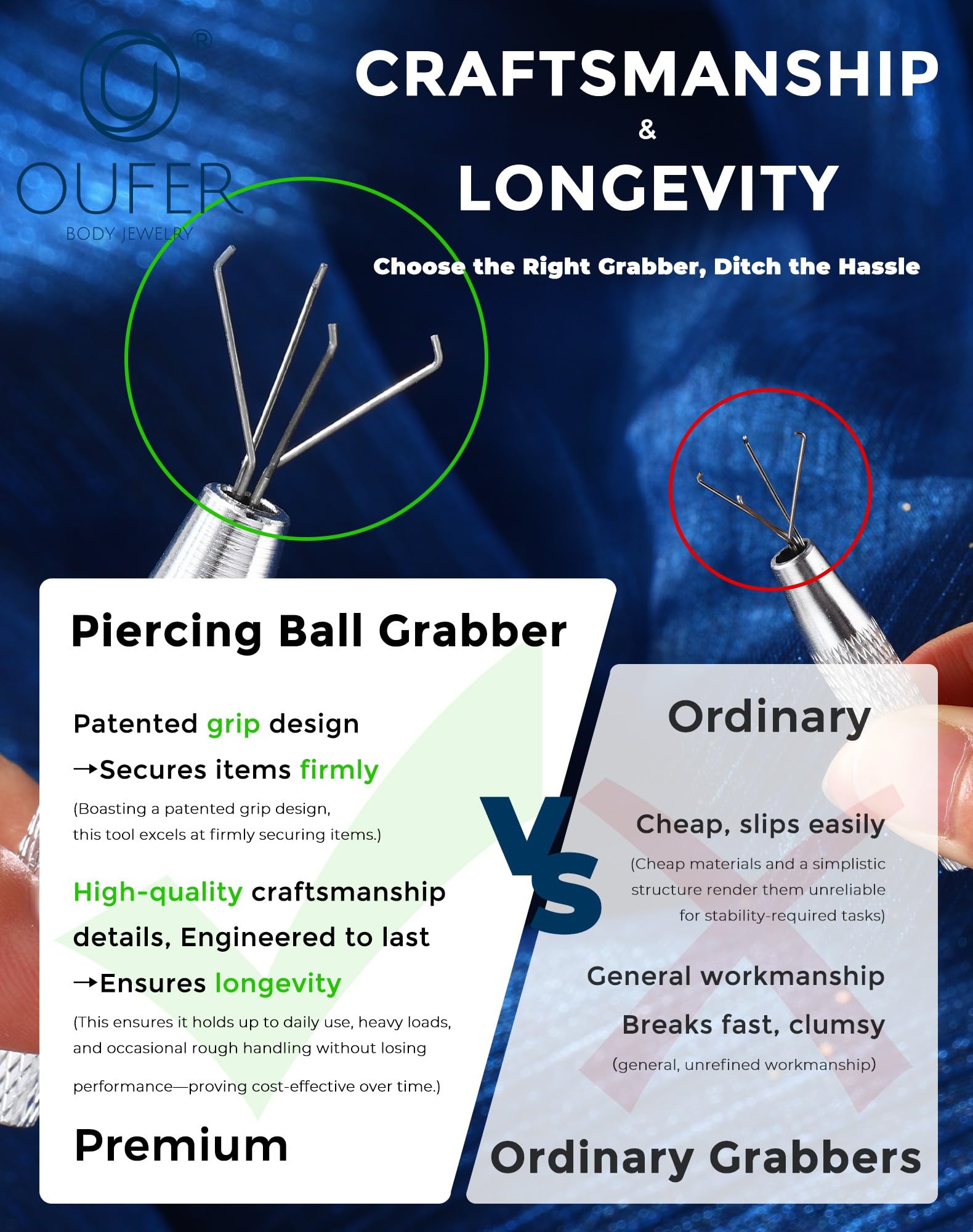 [Comfortable Gauge]: 1pcs Piercing Ball Grabber is 60mm long, which is more compact and portable than ordinary tools. which is the best tool size.