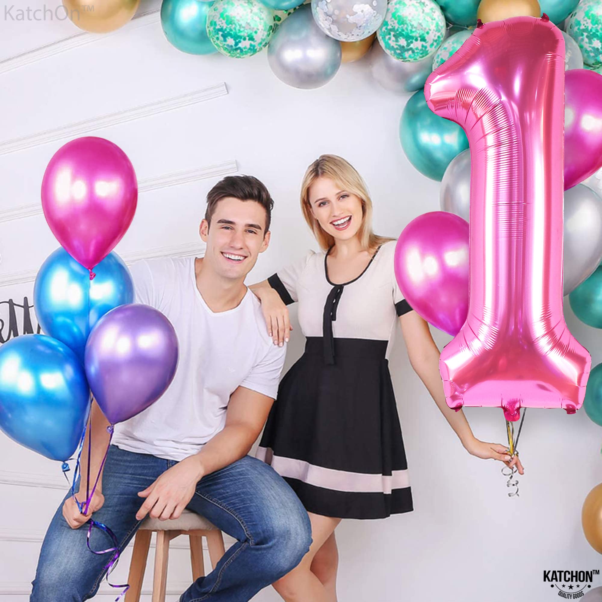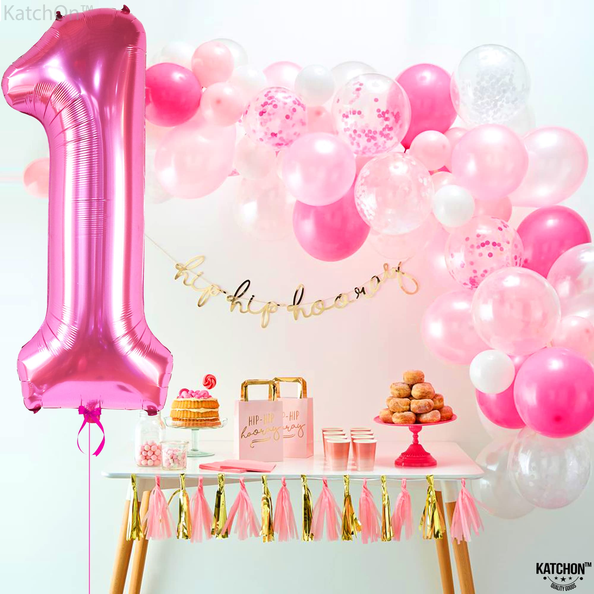 LARGE SIZE - 40 INCH | SHINY METALLIC BALLOONS : This hot pink sweet one balloons is the party complement you shouldn’t miss. Add a great impact to your 1st birthday girl decoration with this 40-inch Huge mylar pink number 1 balloons for 1st birthday 1 pink Ribbon and 1 Straw. Pair hot pink 1 balloon with other number balloons debut celebration and for hot pink party decorations. Use this one pink balloon for 1 year old birthday decorations. Perfect for hot pink balloons 1 birthday decorations.