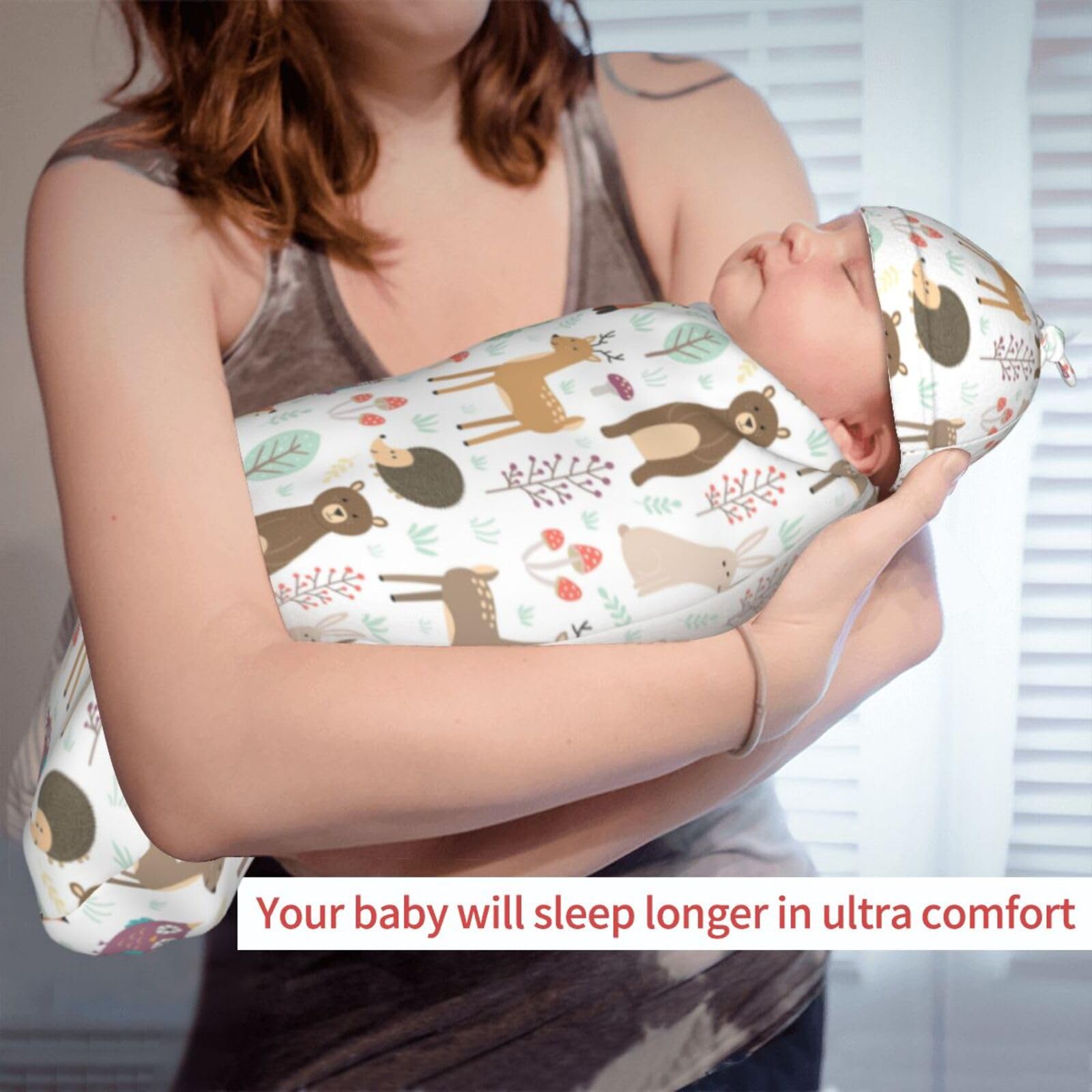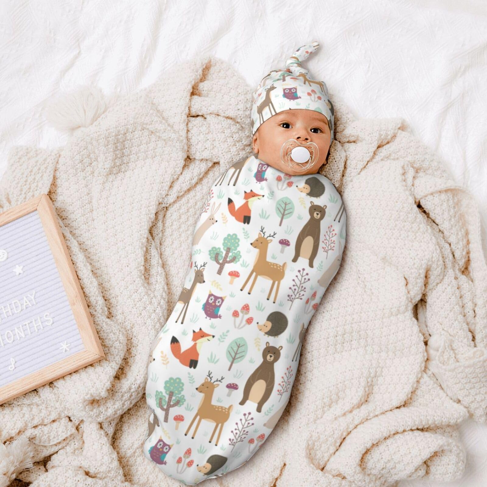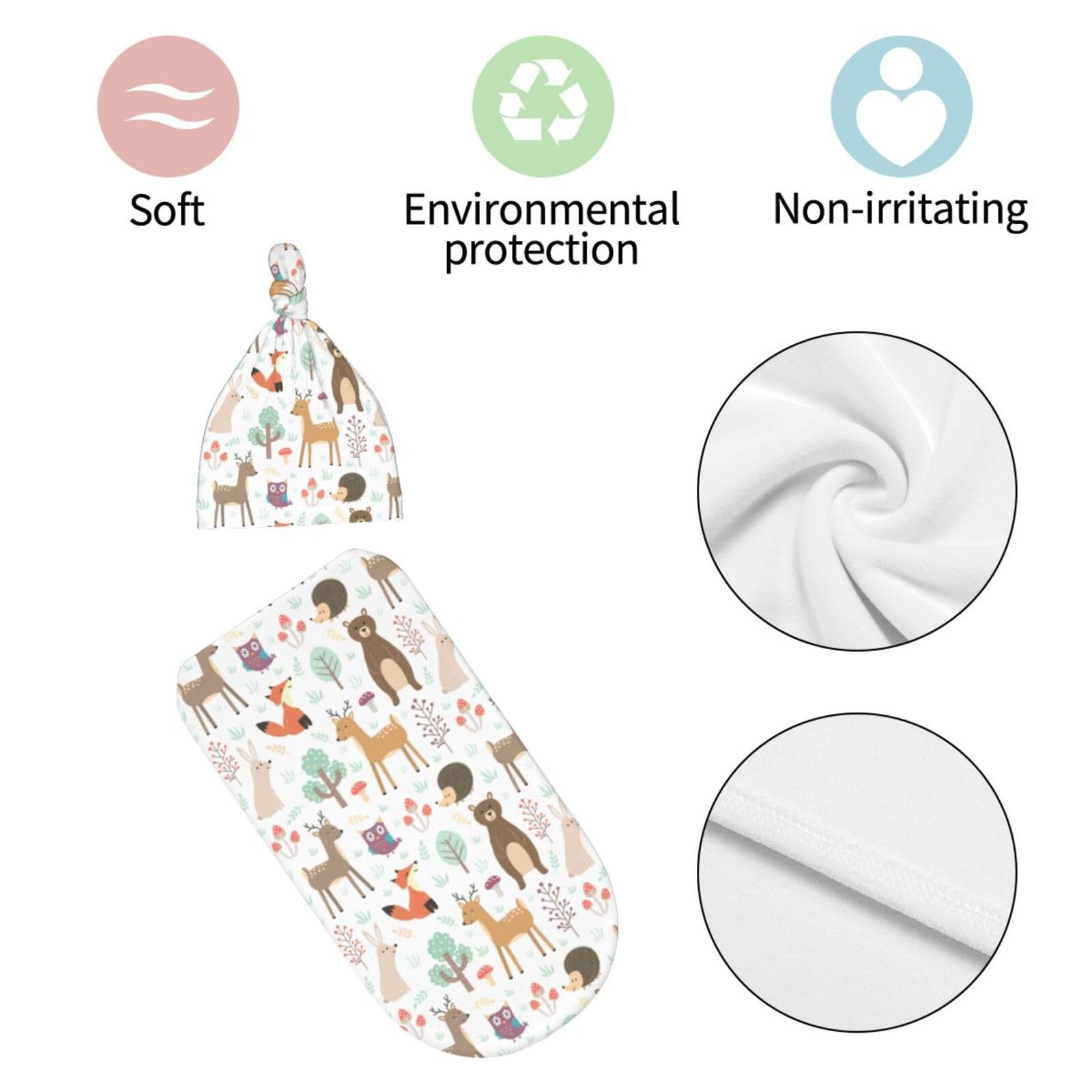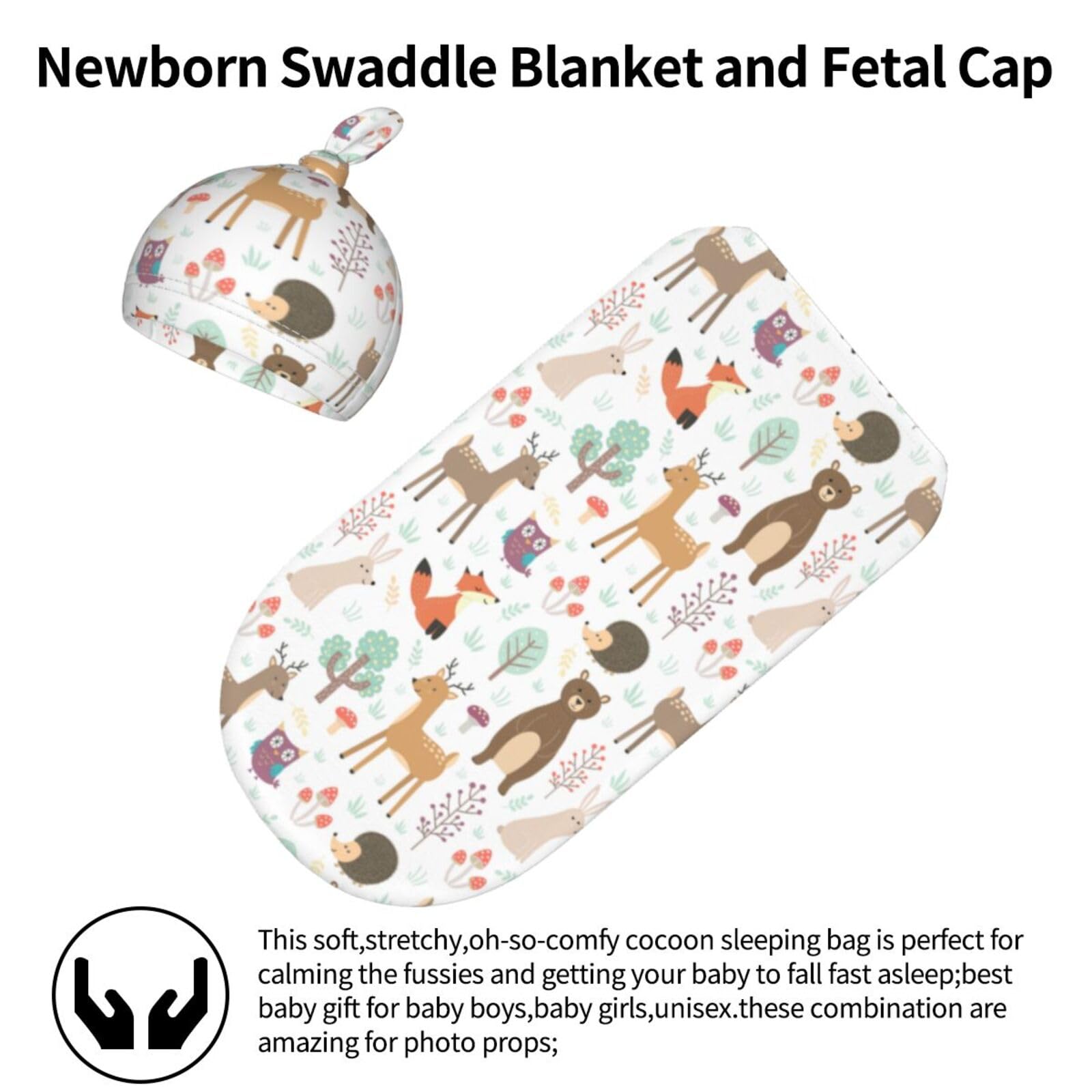 Perfect Size: Woodland theme print swaddle blanket Is 11.4*20.8 In, Newborn Hat Is 6.5*13 In. This Dragon Swaddle Blanket Is Suitable For Babies Aged 0-6 Months. Beanie Hat Has An Adjustable Knot On The Top, Which Can Be Tightened Or Loosened As Needed To Ensure Comfort For Newborns