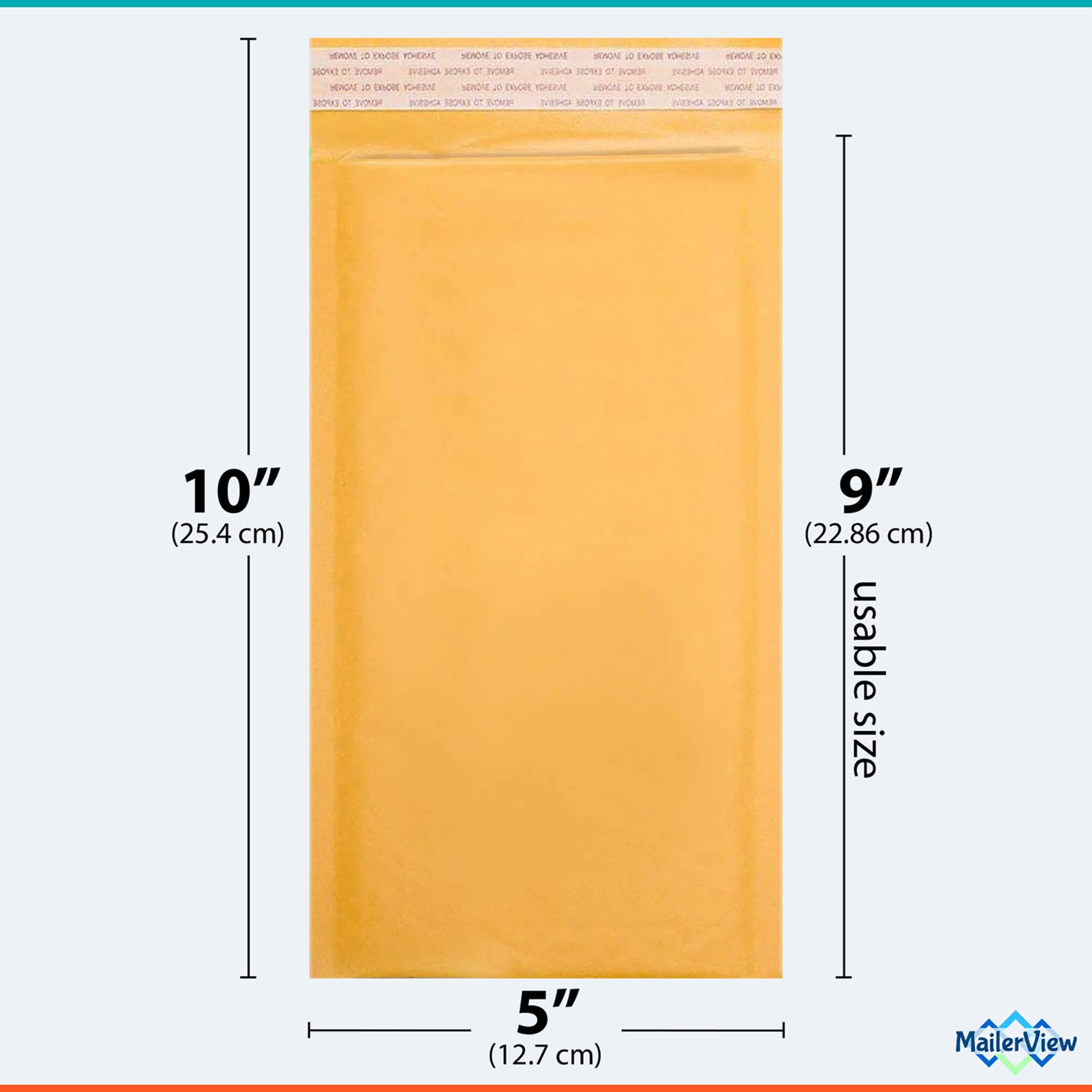 5x10 Inches, Bubble Mailer, Number #00 Kraft, Made in USA, Padded Envelopes with Self Seal Tape, Package Bags, Packaging, Shipping Envelopes with Bubble, Book Mailers, Usable size 5x9, 250 Pack