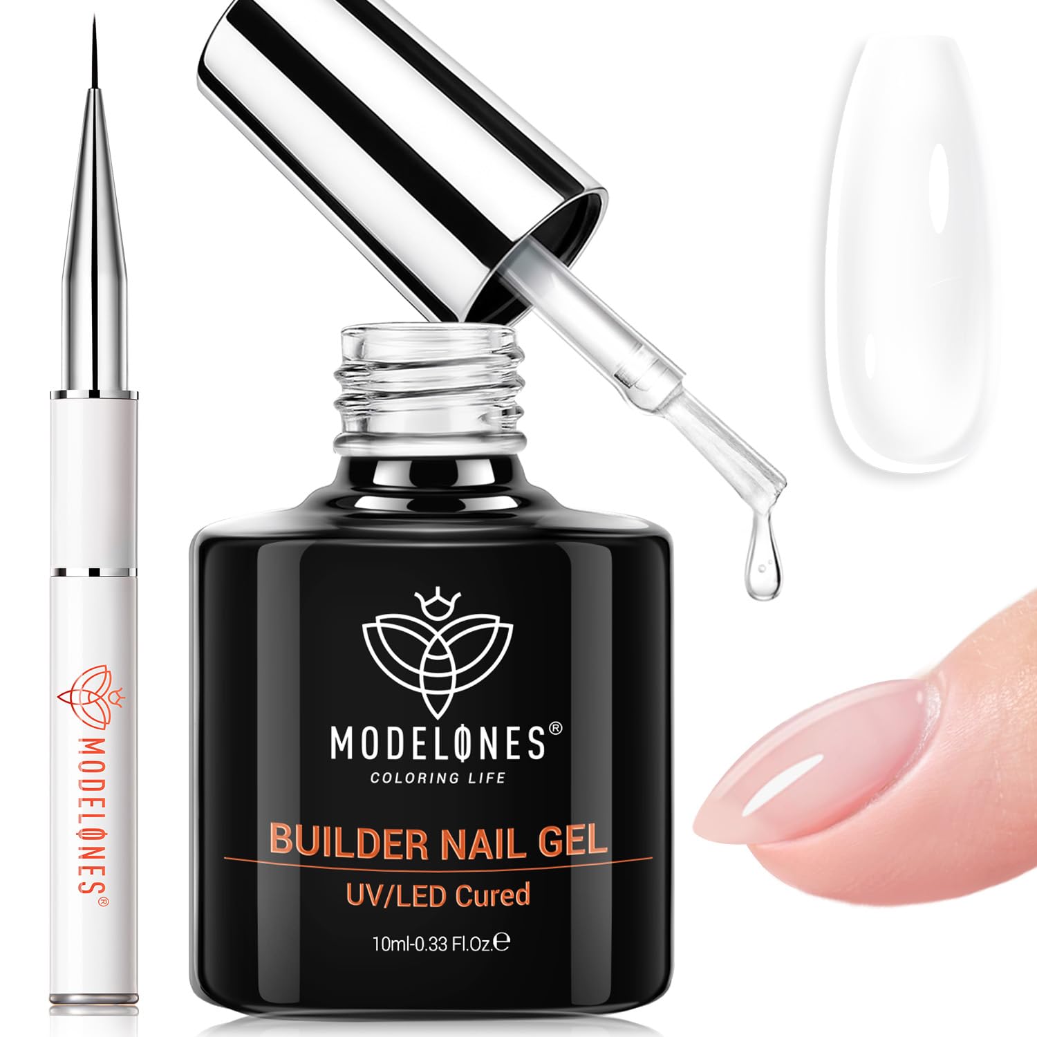 30 Days No Peel-Off & No Bubbles: Modelones builder nail gel is made of professional formula, which is adjusted after 72 tests. Say Goodbye to Air-bubble and Peel-off problems. High durability clear gel builder can stay last longer and brings you natural, strong, flexible, and feather-light nails. Long-lasting for 30+ days with with proper application