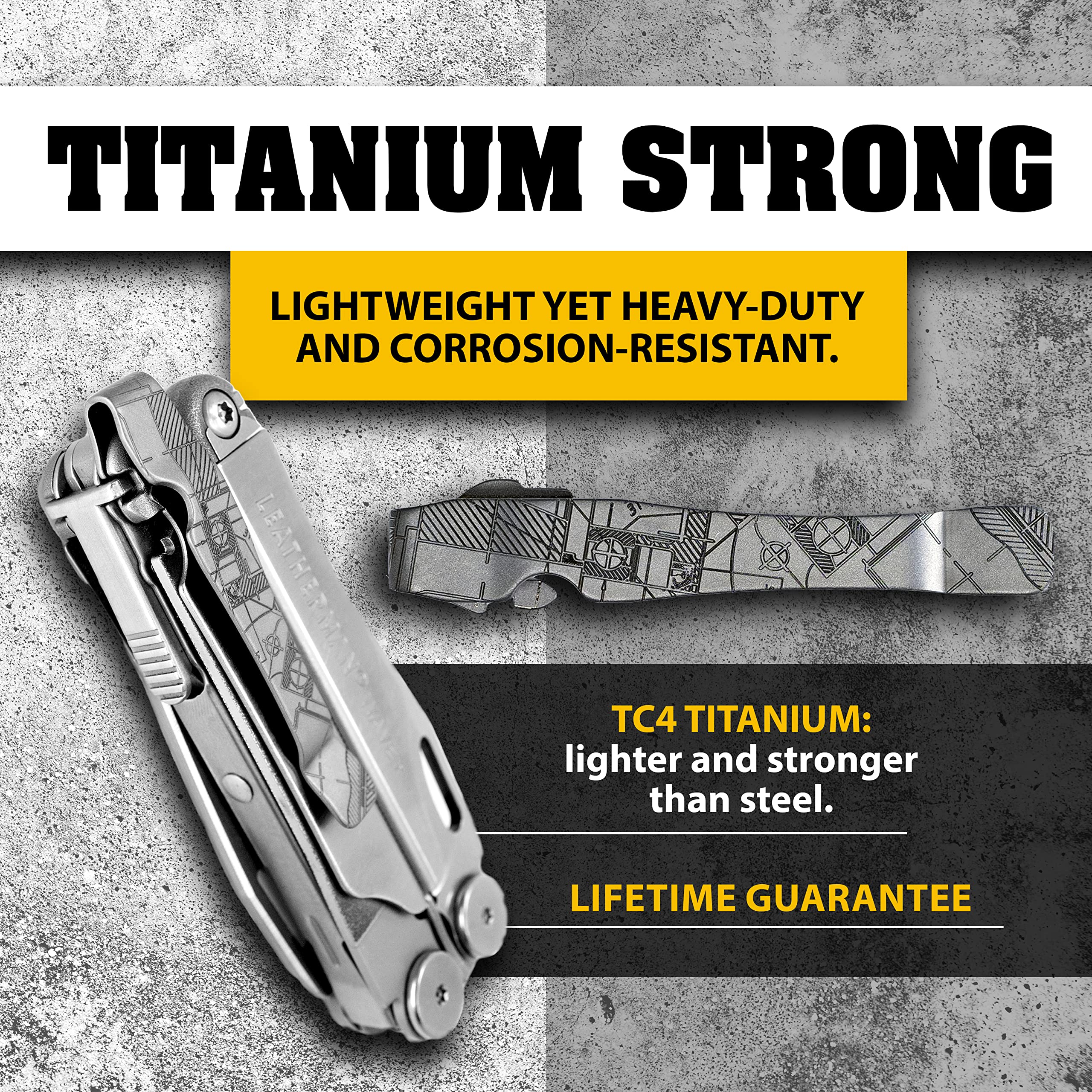 Titanium TC4 - Titanium is an excellent upgrade to the standard Leatherman Wave pocket clip in stainless steel. This new version is 20% thicker. It's ultra-light and corrosion resistant.