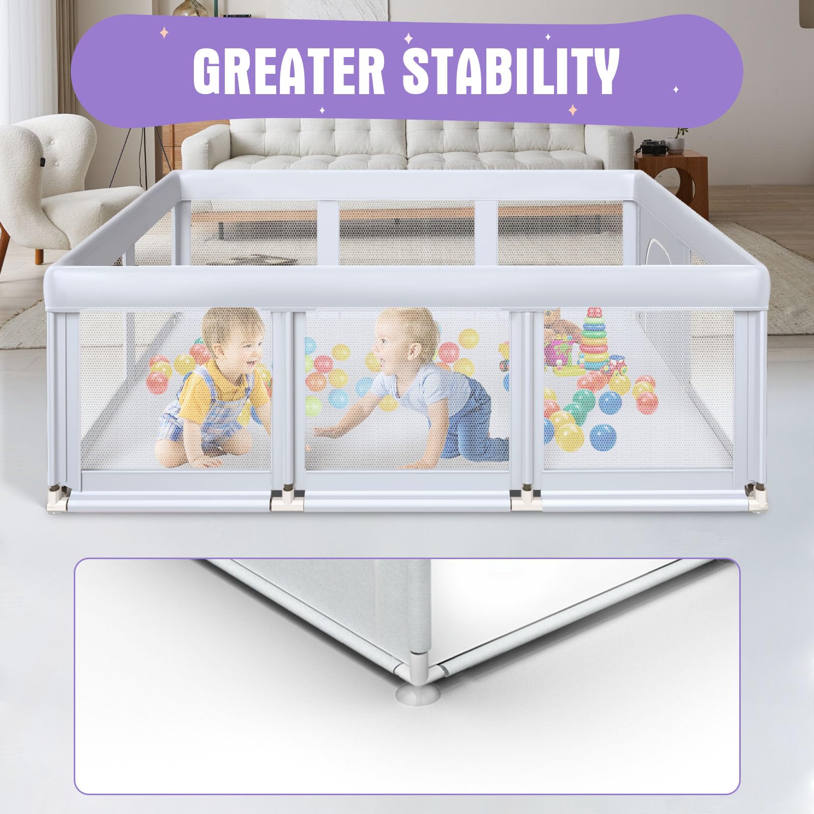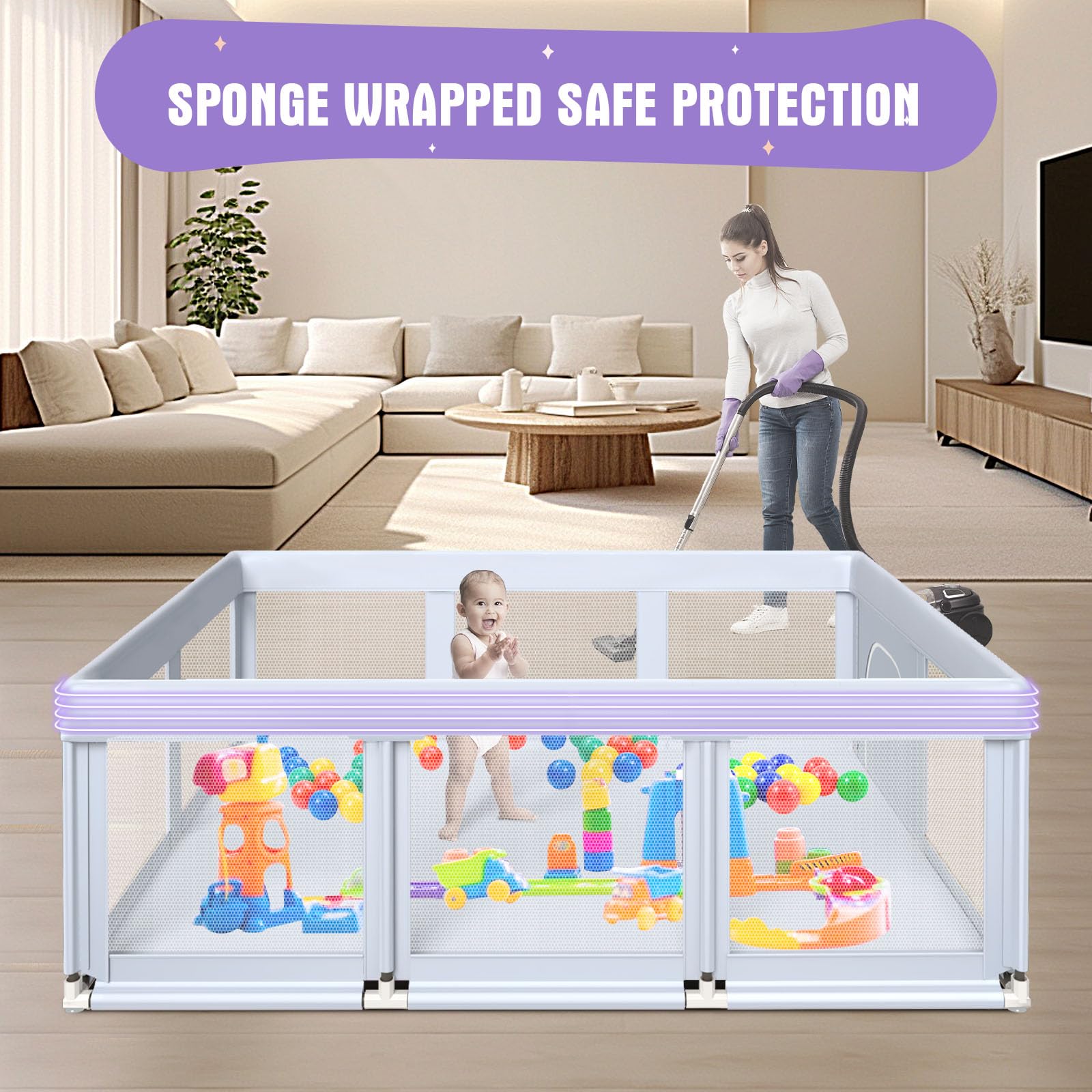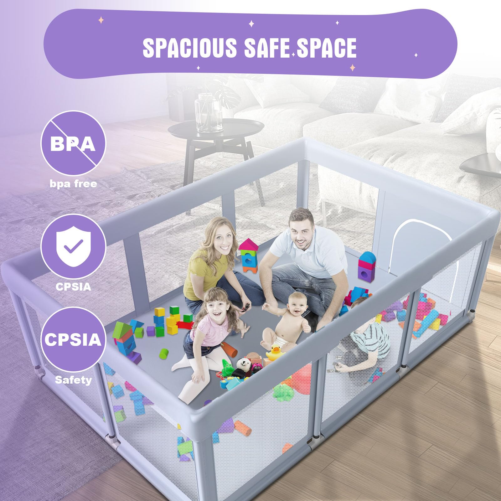 SAFE PET-FREE:Our toddler playpen will be a pet-free safe place for any baby and pet family, 4 non-slip suction cups are designed for extra stability, and can sticks securely to the floor, so your baby won't tip over the pen and cause danger.