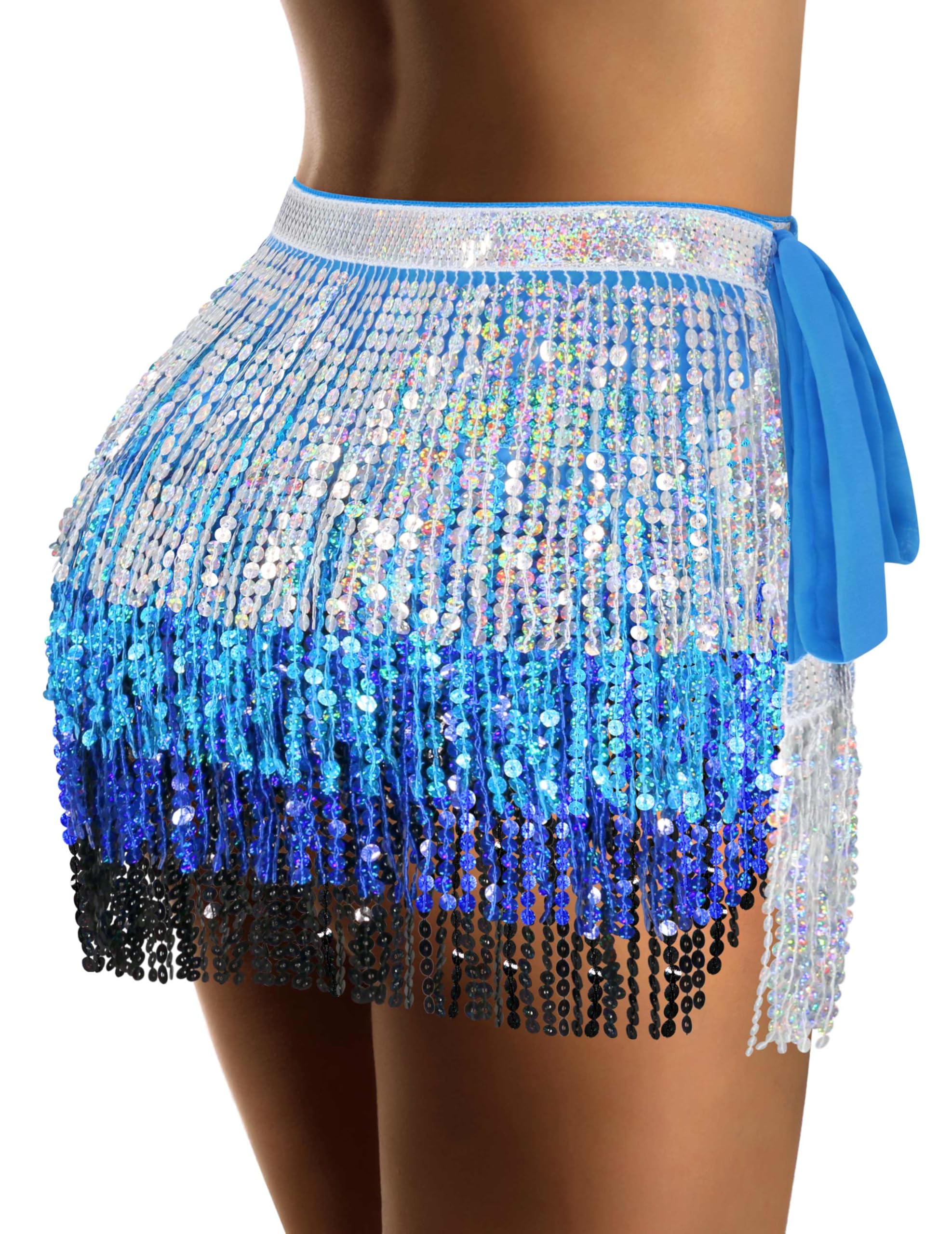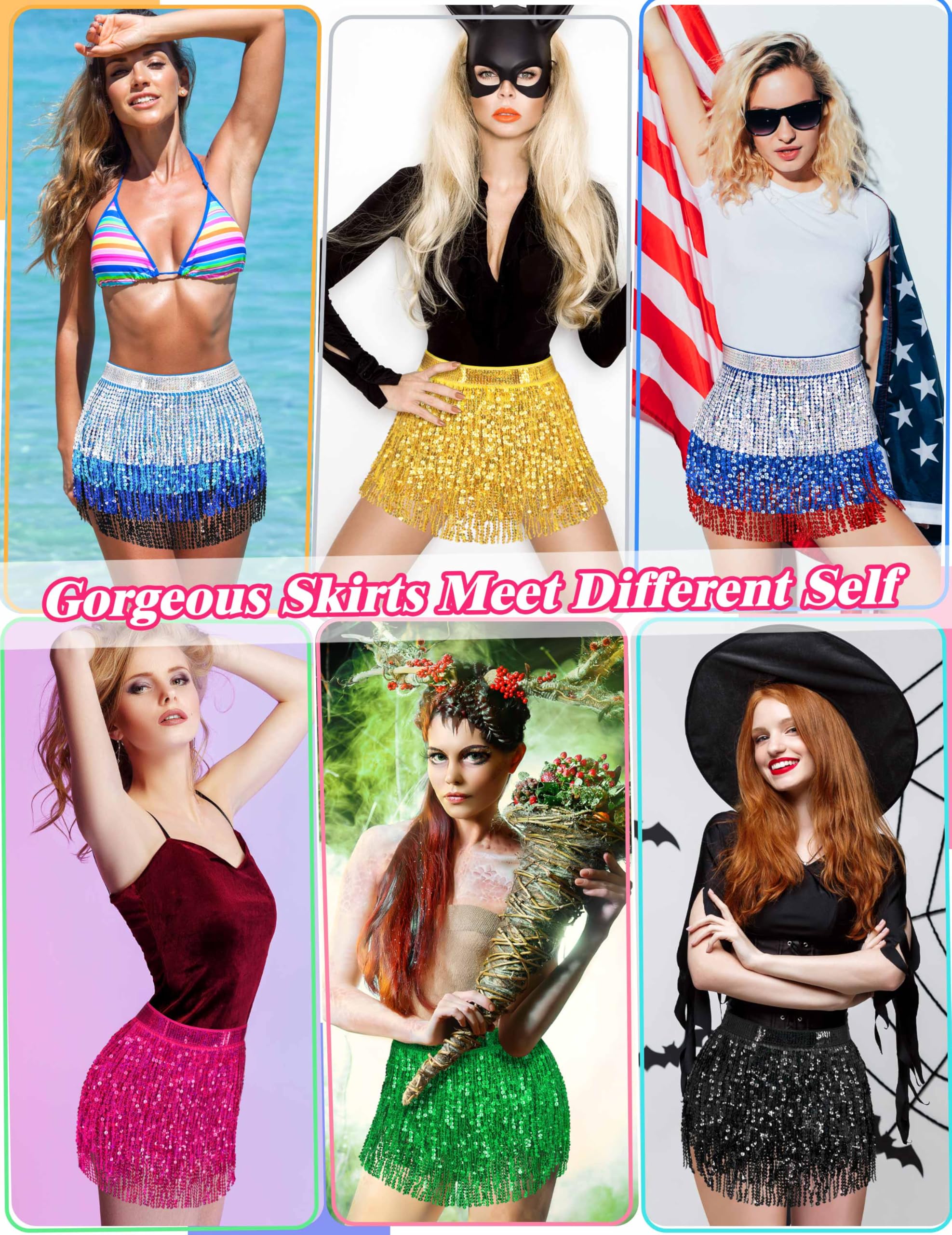 EXCELLENT FASHION ACCESSORY: The tassle sparkle skirt is a perfect choice to match your clothes and you can wear it as beach outfit, belly dance outfit, rave outfit and others. There are several colors for you to choose to meet your various needs. Wear the sparkle flapper skirt, you'll be sexy queen.