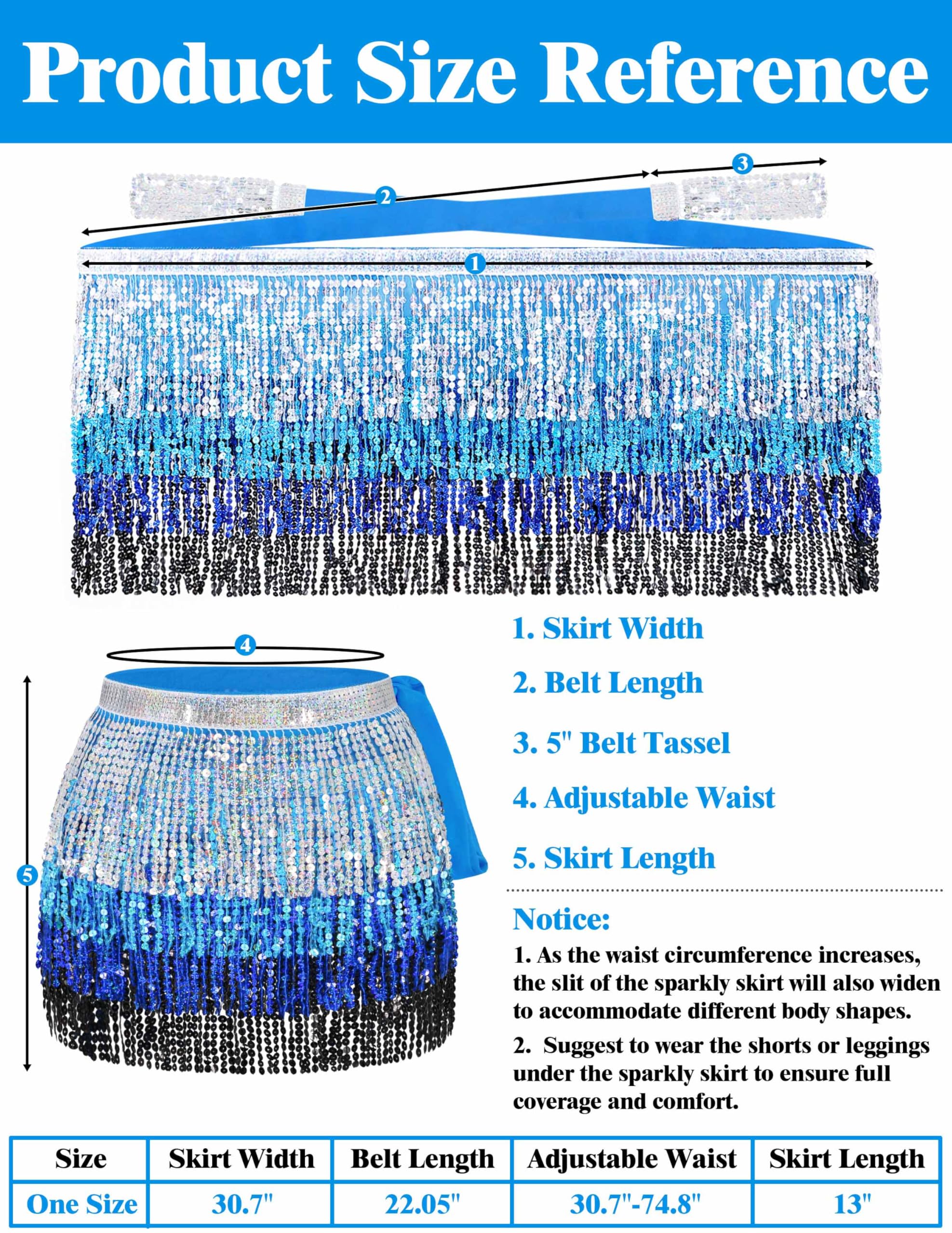 GORGEOUS SEQUINED FRINGE: The belly dance skirt with four-layered sequins and fringes is shinier and more gorgeous, which makes you more acctractive. What's more, the tinsel skirt perfectly fits your curves and showcases your most glamorous side. When you wear this sparkle skirt, people will pay more attention to you and you will be the focus in the crowd.