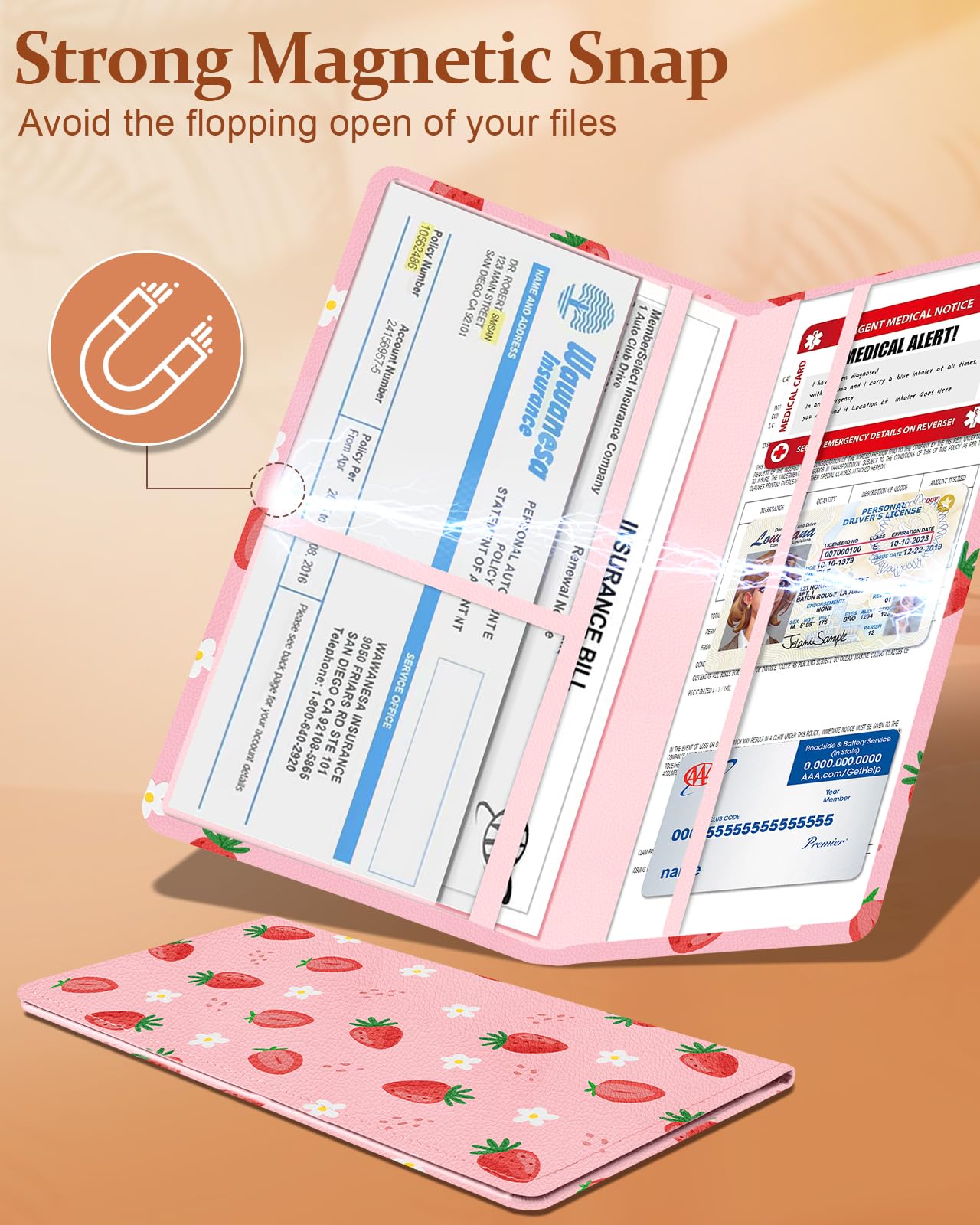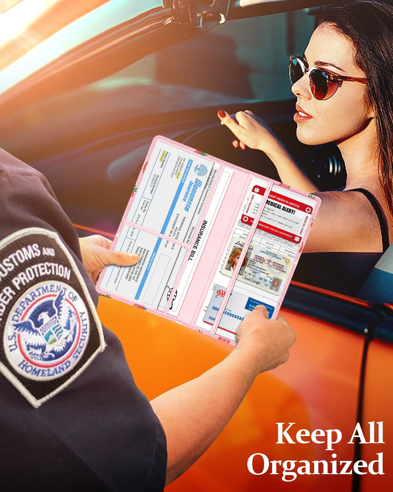 Large Capacity Design: This car registration and insurance holder boasts a large capacity design,can store vehicle registration,insurance,driver's license,business cards,receipts,service records,emergency contact cards,etc