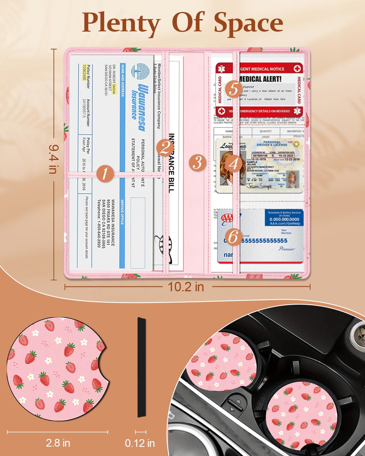 Combination set: The combination package includes the car registration and insurance holder along with a matching car coaster,making for an eye-catching set. This not only serves a practical purpose but also enhances the aesthetic appeal