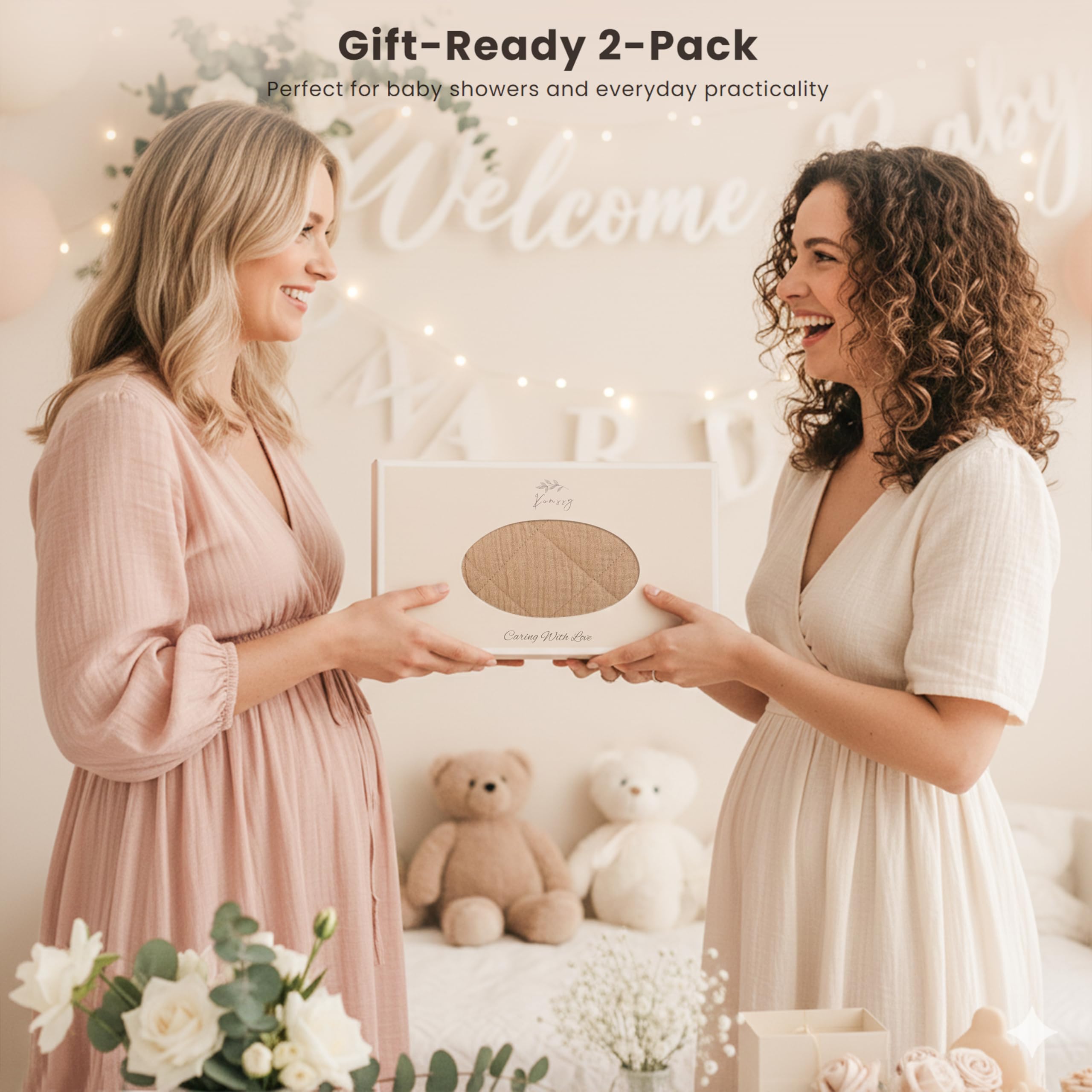 Snug Fit: Our muslin changing pad cover measures 32β x 16βand features a fully encased 360-degree elastic. This design ensures a snug and secure fit on your changing pad. Say goodbye to slipping covers during diaper changes!