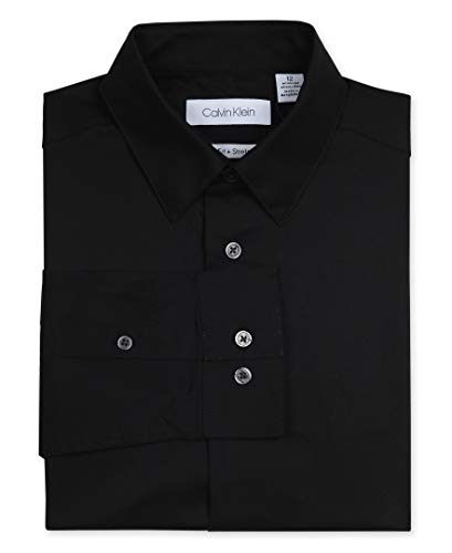 A DRESSWEAR STAPLE: Our Calvin Klein Long Sleeve Sateen Dress Shirt is a classic boys wardrobe staple. Featuring a button-down style with buttoned cuff detailing, shirttail hem, point collar, two extra buttons, and a modern fit, this shirt is perfectly coordinated to accompany any dress pant.