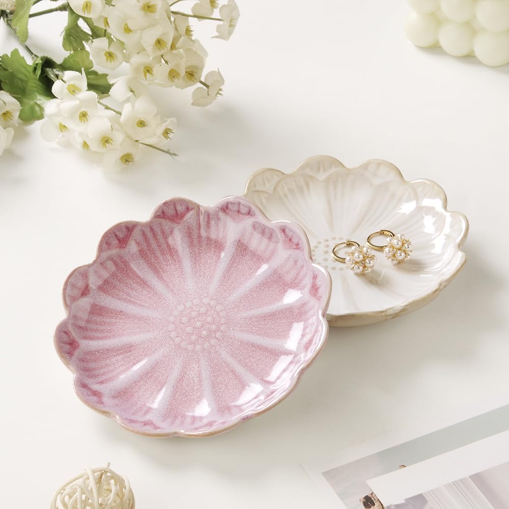 🌸【Exquisite Size】: 4.3″×4.3″×0.8″, Well packed with thick bubble bag. It has a thick bottom and won't scratch your furniture. It is perfect to have in your kitchen, bathroom, on your night stand, dressing table, or anywhere else you take your jewelry off.