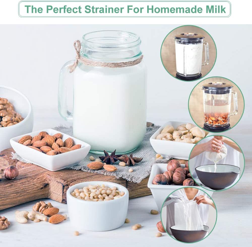 Multiple Uses: This nut milk bag makes a fantastic gift for people who love to live healthy.These nut bags are perfect used for homemade nut/almond/soy bean milk,yogurt,cheese makers,vegetable or fruit juices,cold brew coffee,beer home brewing,tea