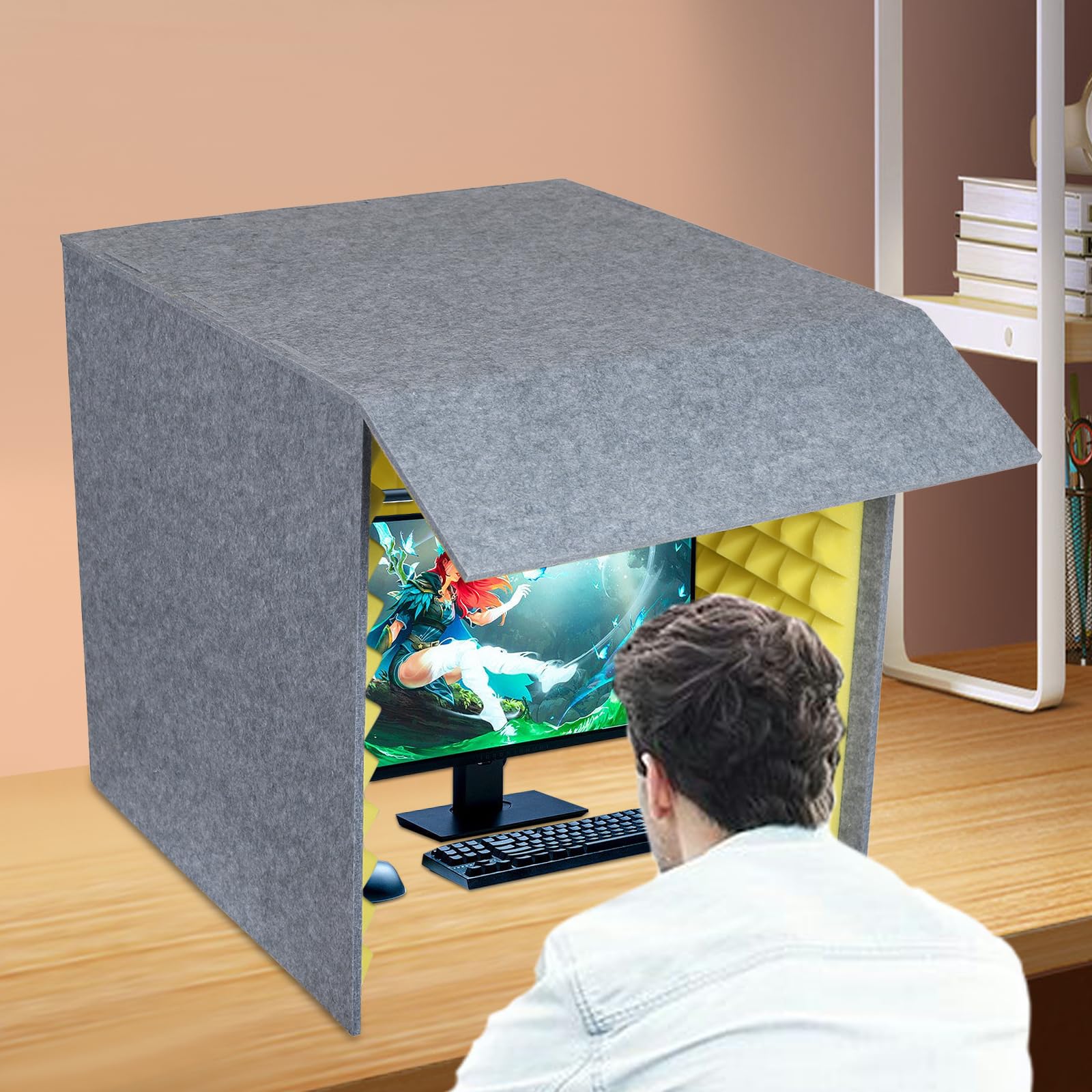 Specifications Material: Sponge, Polyester Color: Yellow & Gray Style: Modern Shape: Square Assembly Required: Yes Mounting Type: Tabletop Sound-absorbing Panel Thickness: 0.47 in Sound-absorbing Cotton Thickness: 1.97 in Inlet Baffle Height: 7.87 in Product Size: 23.62x23.62x23.62 in Package Size: 23.62x23.62x5.91 in Gross Weight: 13.23 lbs Net Weight: 11.02 lbs Package Included 1 x Desktop Soundproof Cover Notes 1. Please carefully check if the size is suitable before placing an order. 2. Please allow the slight color difference caused by the shooting light and 1-3cm error due to manual measurement, and make sure you do not mind before you order.