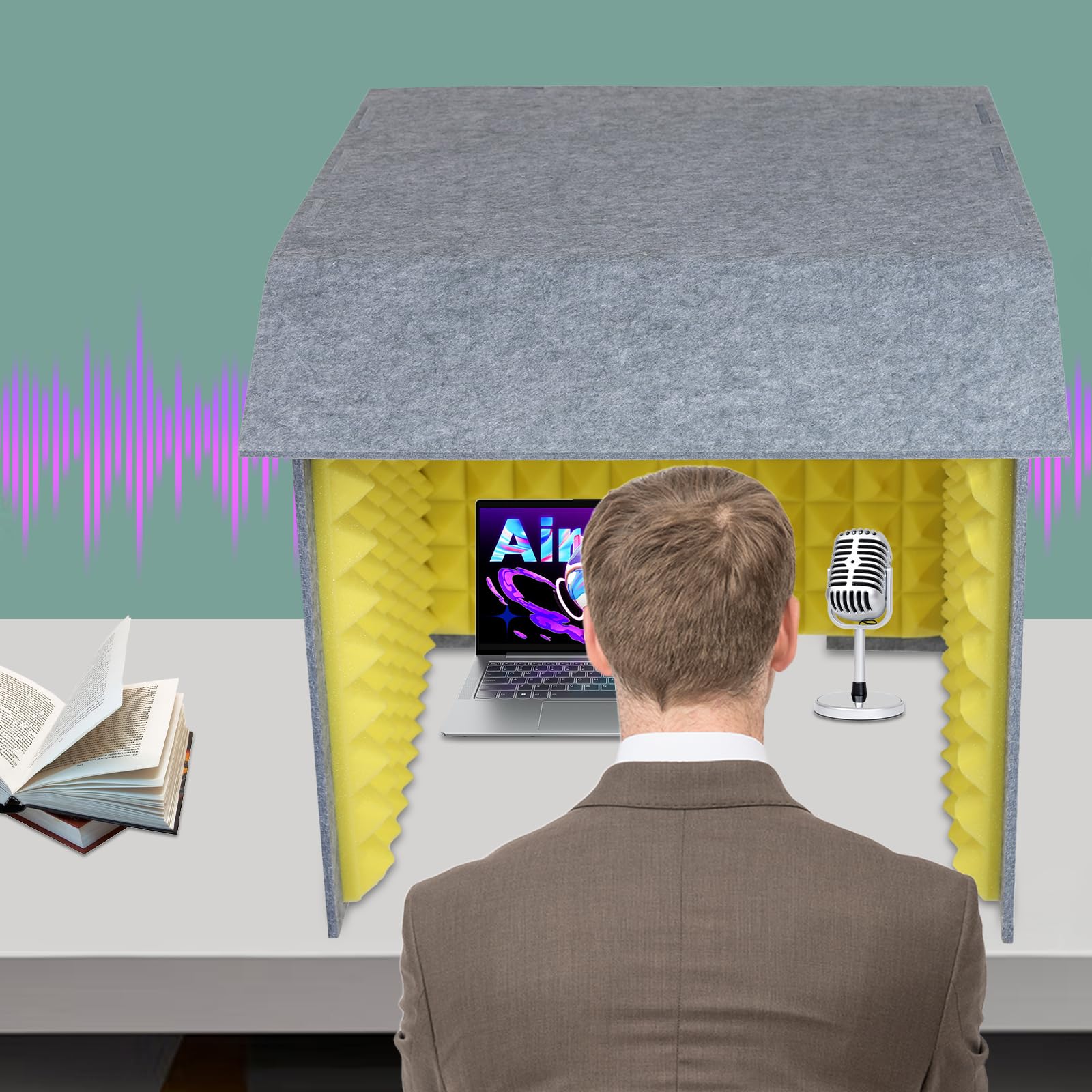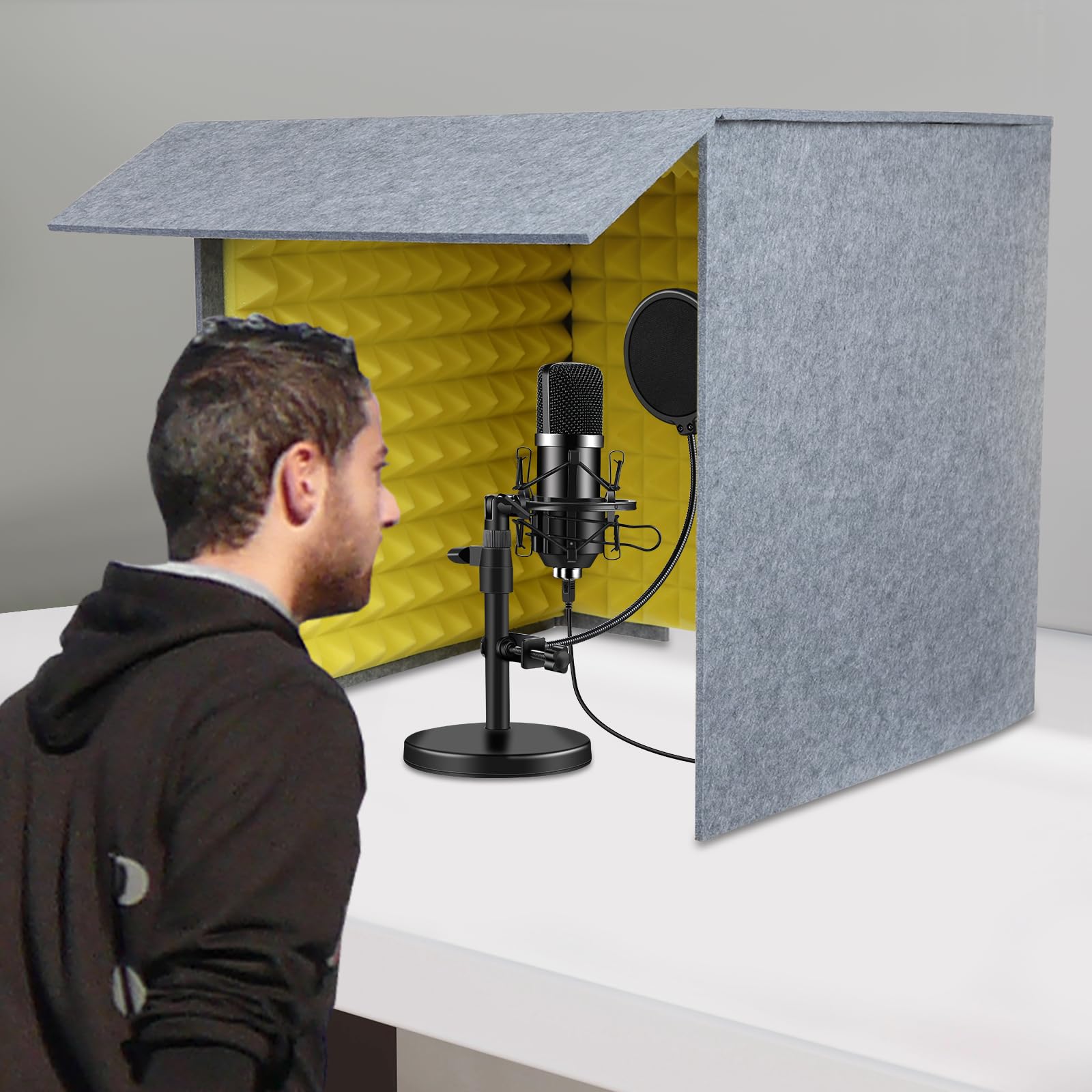 QUALITY MATERIAL: The desktop vocal recording booth is made of high quality sponge and polyester material. Wear-resistant, durable and soundproof, can be used for a long time