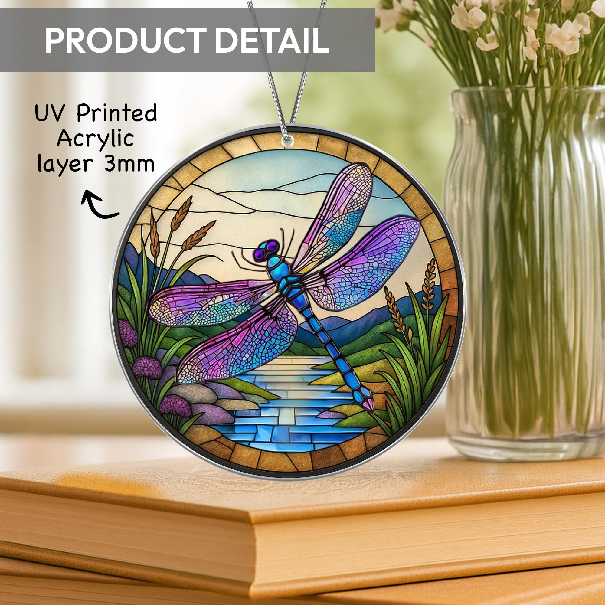 π Stained Glass Effect Without Real Glass β Designed with a shimmering finish that mimics stained glass dragonfly art, this lightweight piece creates a soft, colorful glow without the fragility of glass. A stunning dragonfly sun catcher for windows or indoor light.