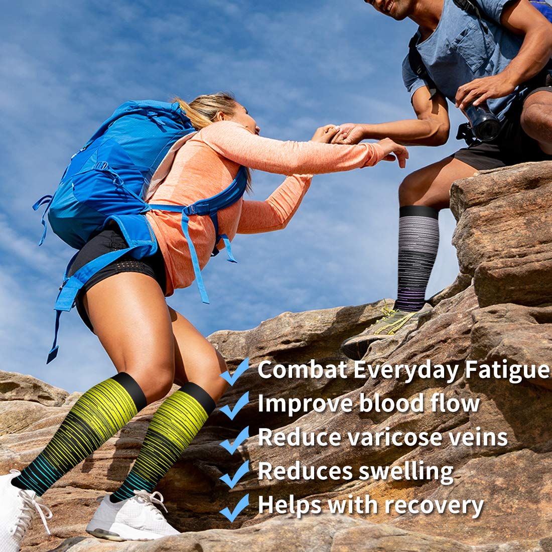 Ideal for All Ages and Fitness Levels-These socks will keep doing their job in the background while you focus on your daily routine. If you want to experience improved circulation, less fatigued feet, and compliment after compliment on how snazzy your socks are- COOLOVER Socks are the choice for you.