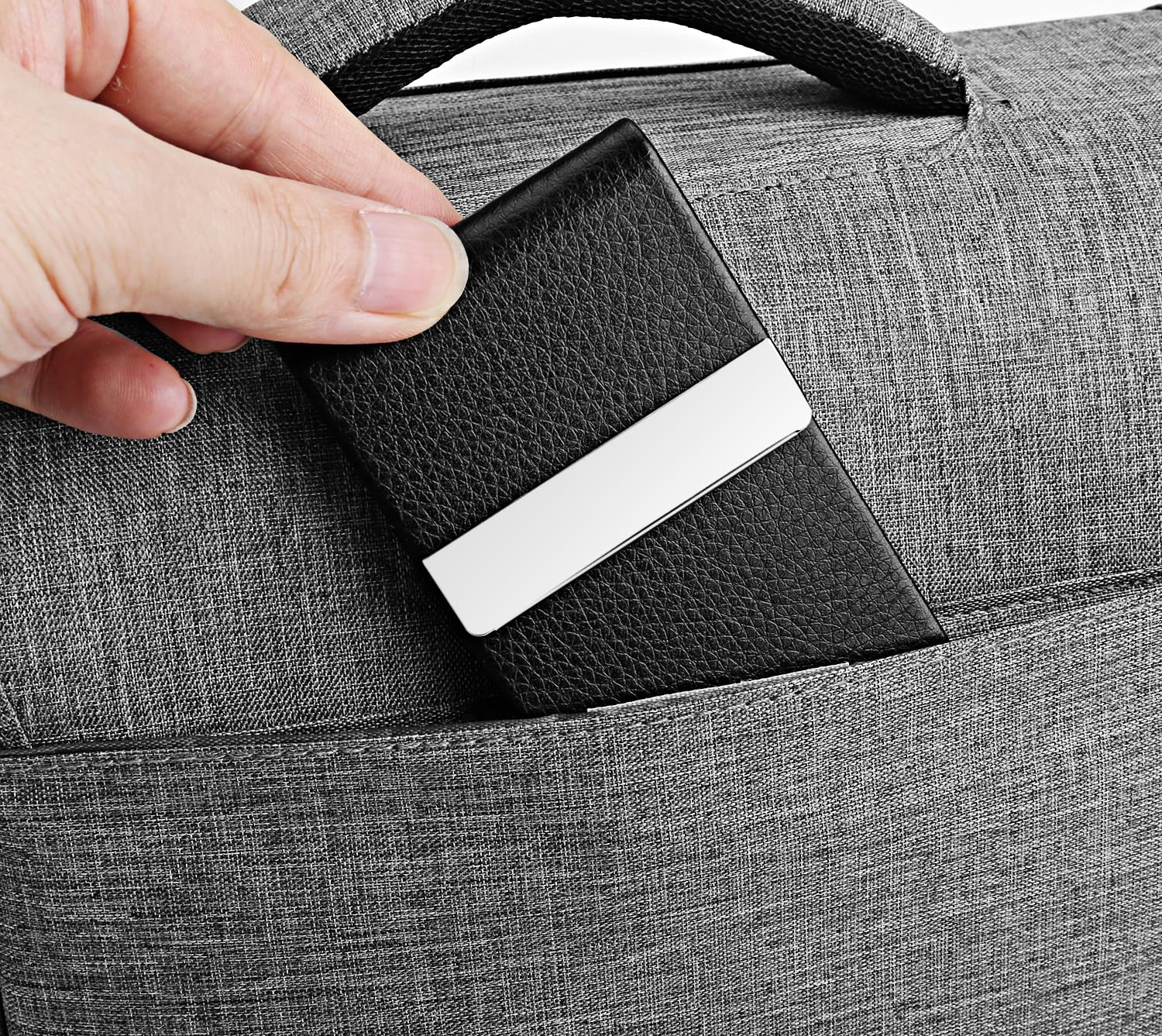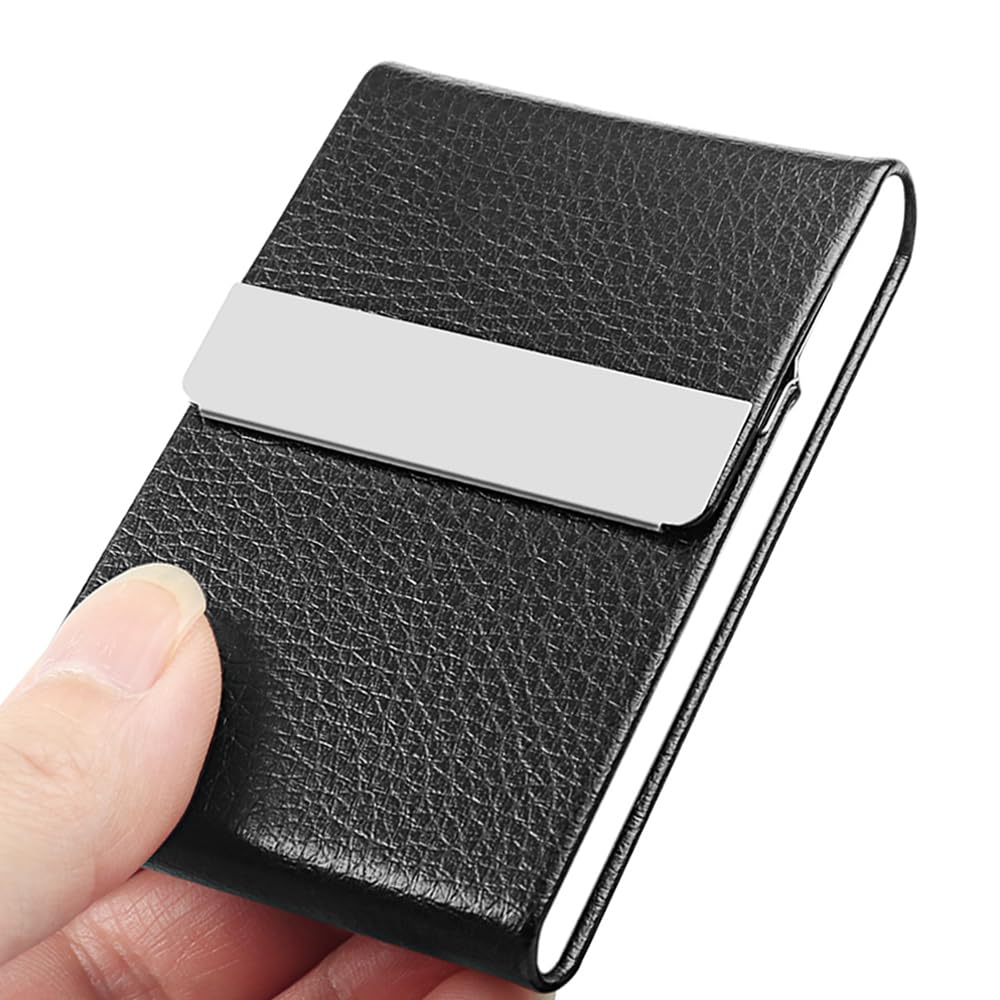 Material: Our business card holder made of luxury PU leather and high quality Stainless Steel. It has a good solid construction, use longer.