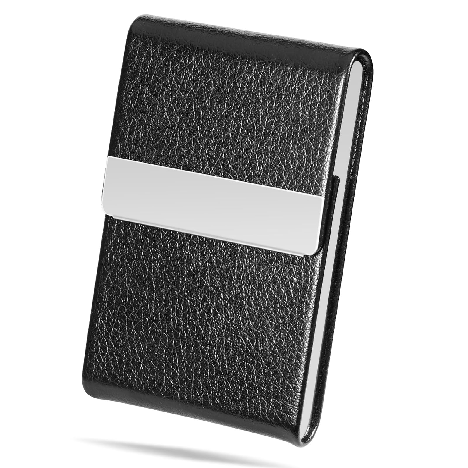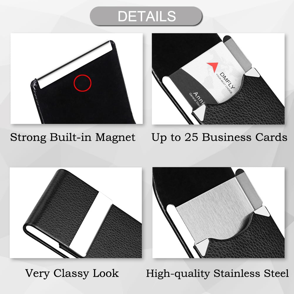 Easy to open: Our leather business card holder case use magnetic closure. It's easier to open than the buckle style. Use built in magnet, keep it nice looking.