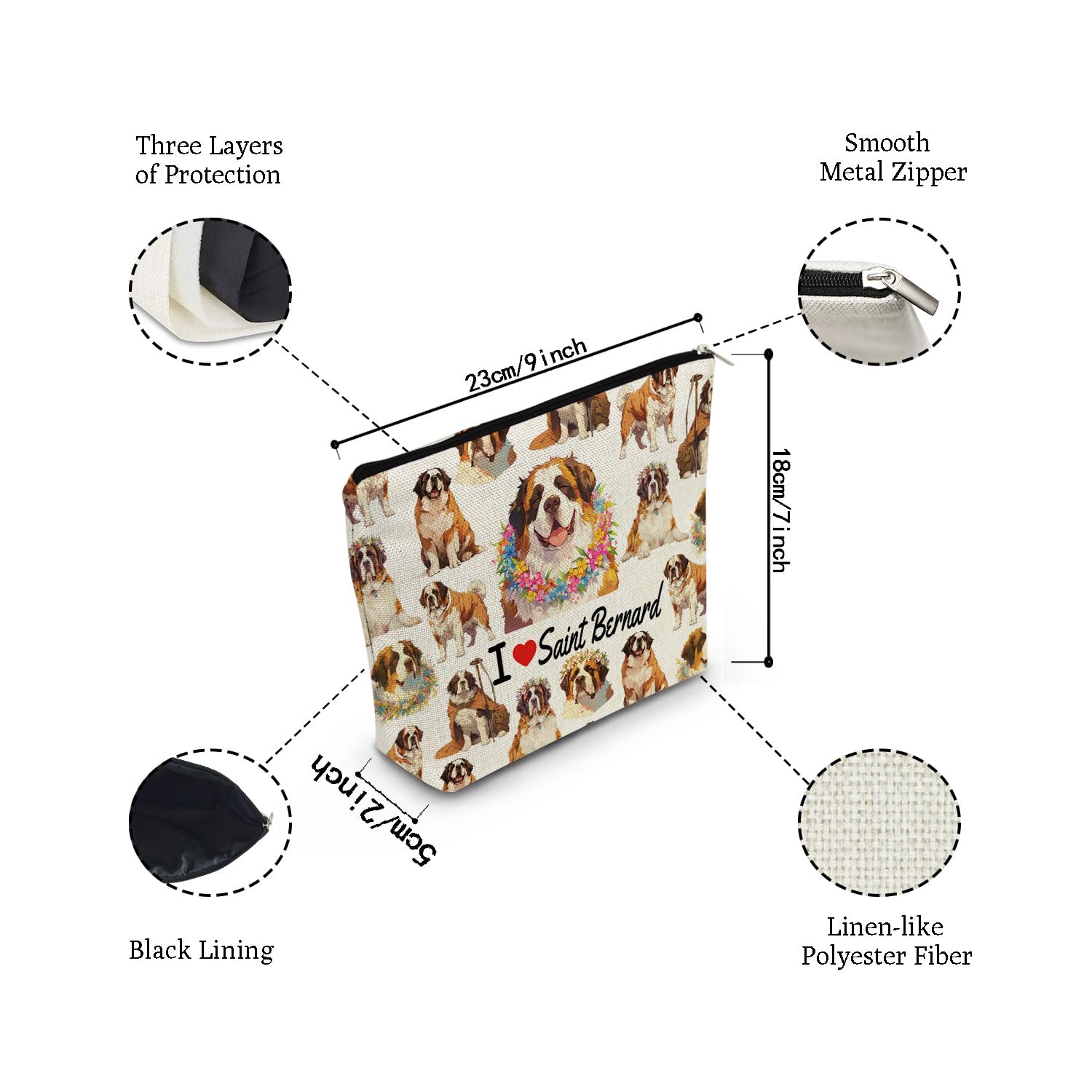 1.The Funny Saint Bernard Makeup Bag is made from durable materials. Polyester fiber makes the bag have the characteristics of both durability and softness. Metal zipper ensures the security of your personal stuff.