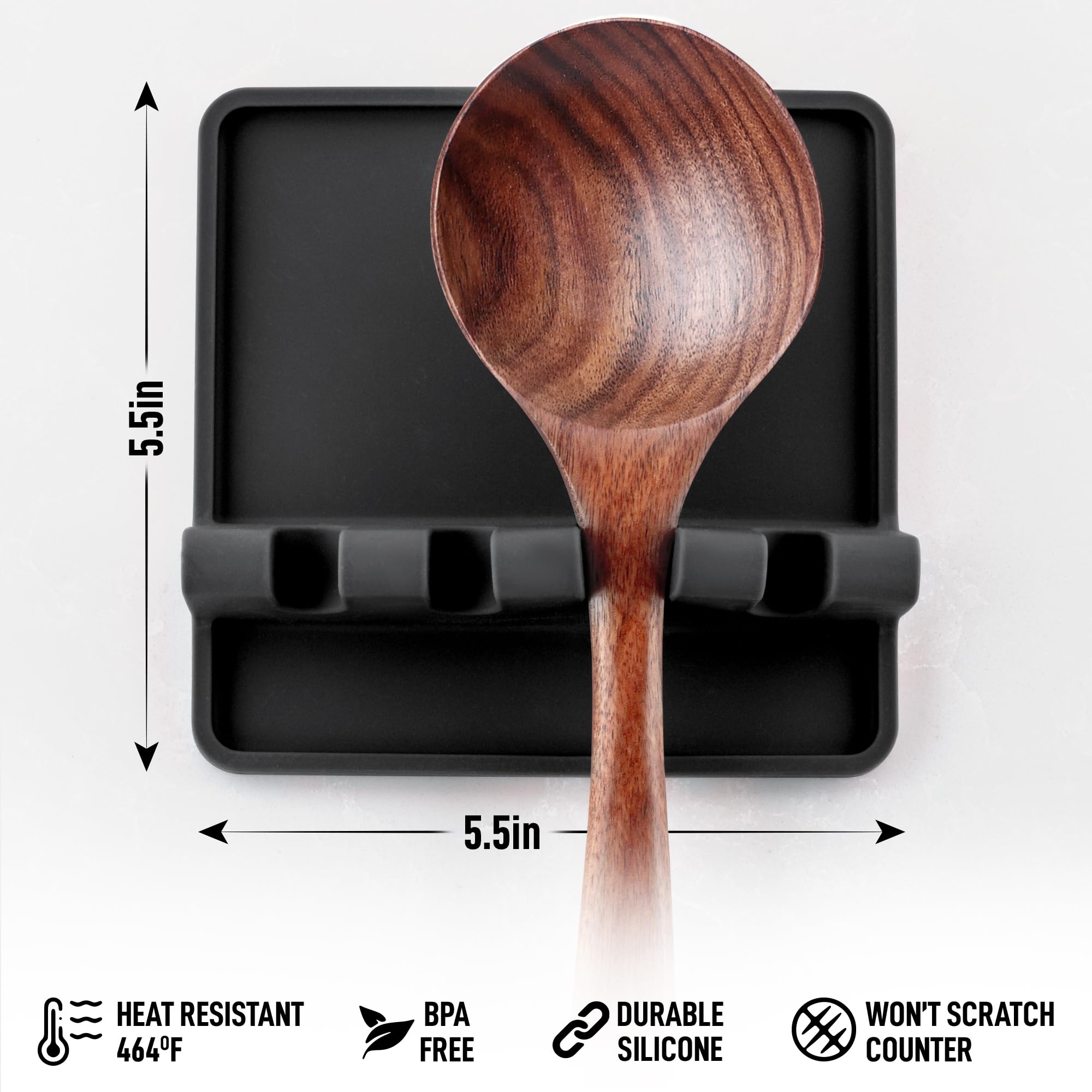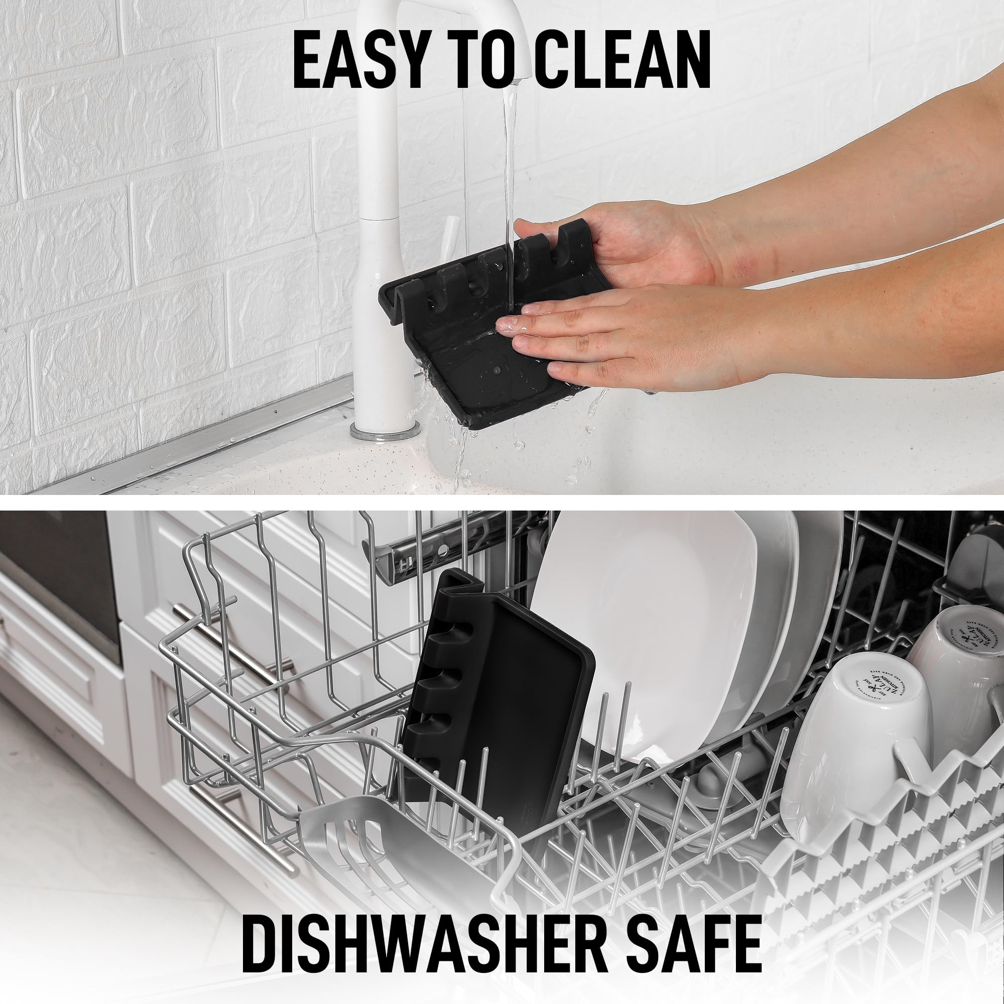 HEAT RESISTANT AND EASY TO CLEAN: Made from food-grade material, this silicone spoon rest can be placed near the stove or countertop without it being affected by heat. It is designed with a non-slip base to prevent it from sliding and causing chaos while cooking. Once you are done with cooking, toss the kitchen tool holder in the dishwasher for a quick cleanup.