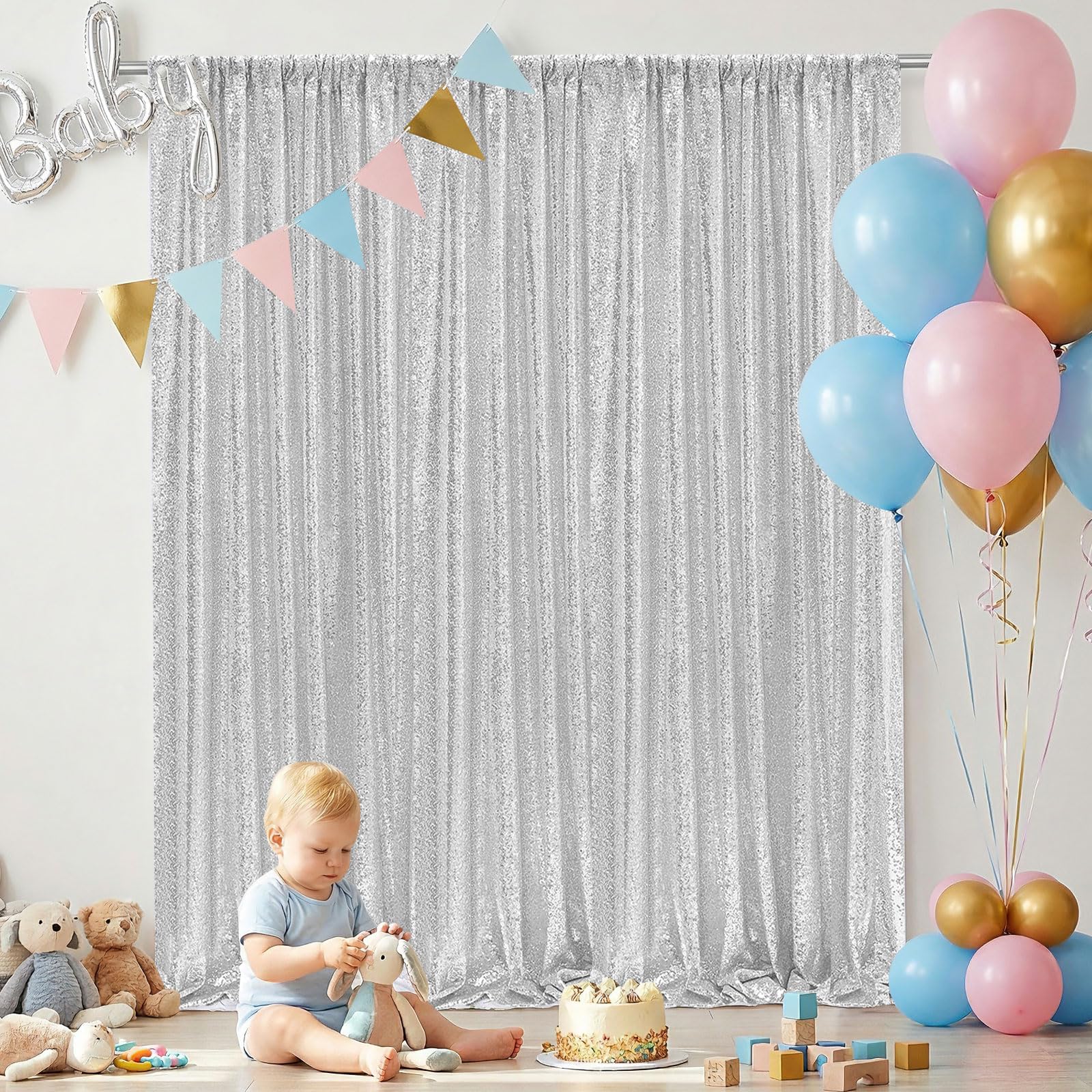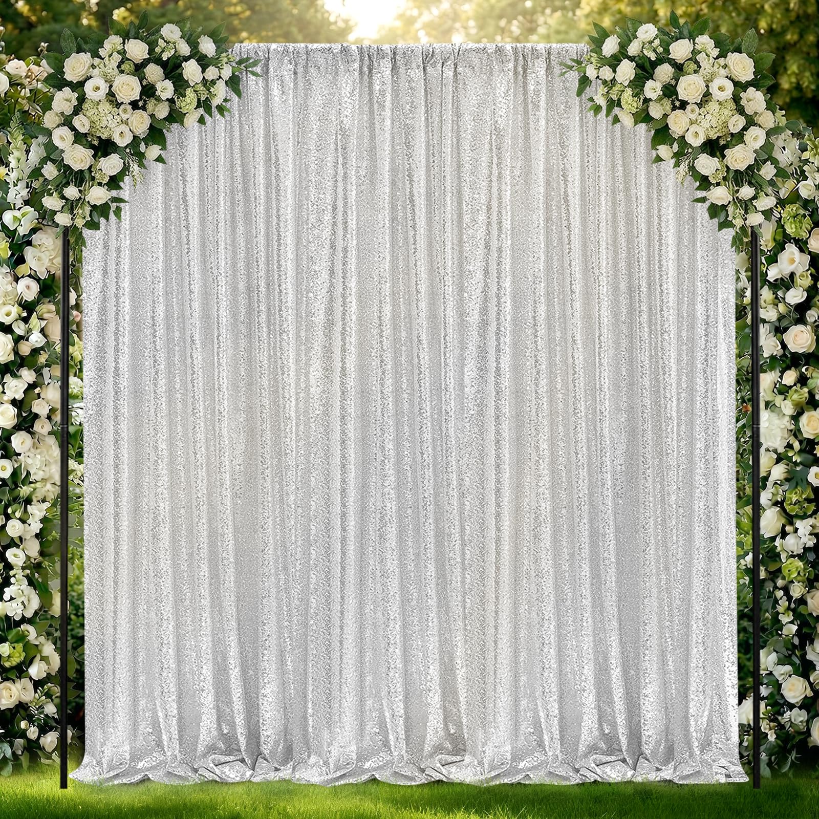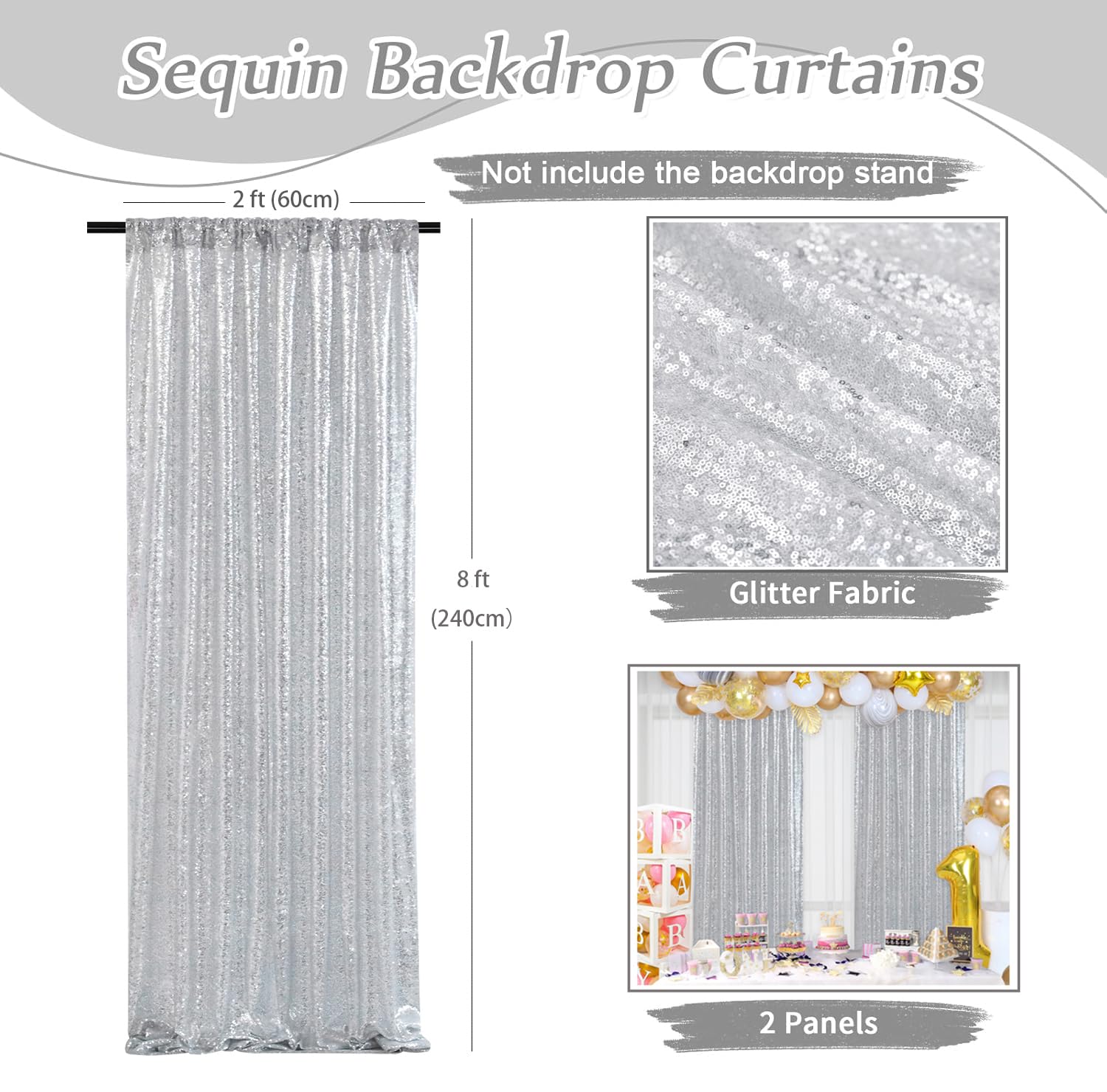 Sequin Backdrop Curtains: Package contains 2Pcs 2ft width by 8ft height backdrop curtains. With a 4-inch rod pocket on the top for easy to be hung on most backdrop stands or curtain rods, and all sides over locked with folded and hemmed edges to ensure the stability during hanging.