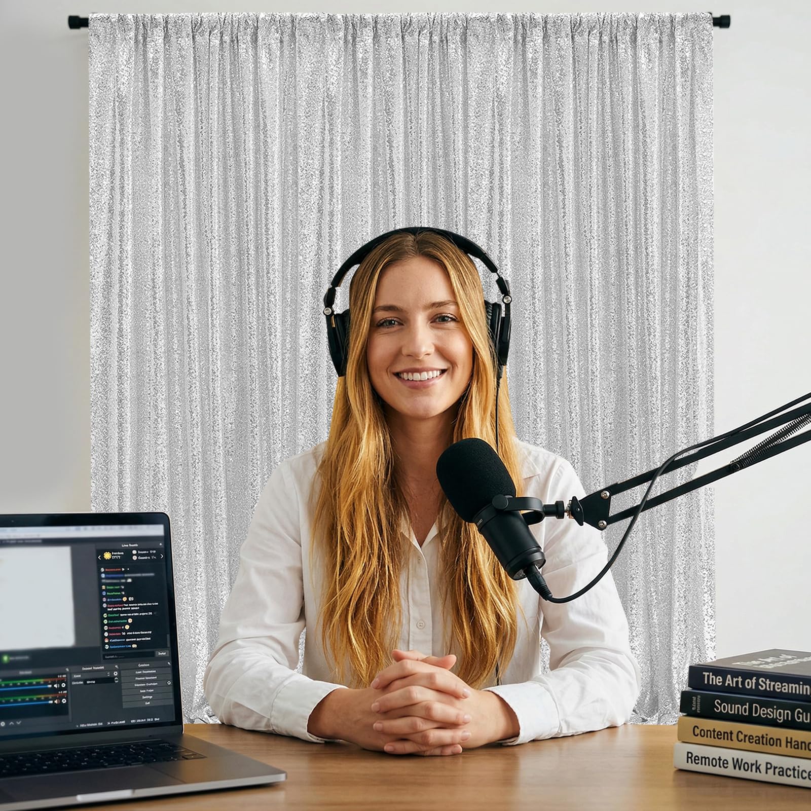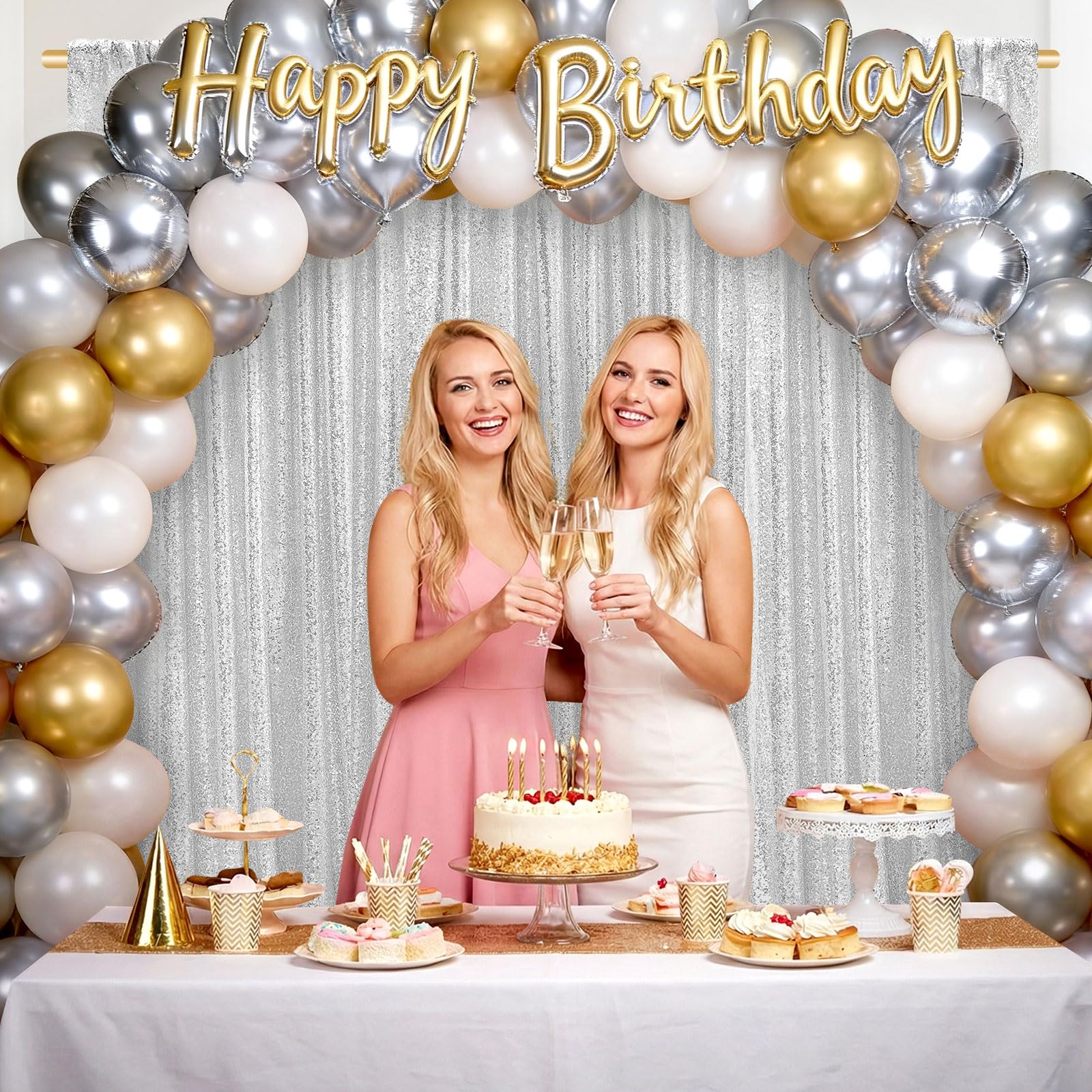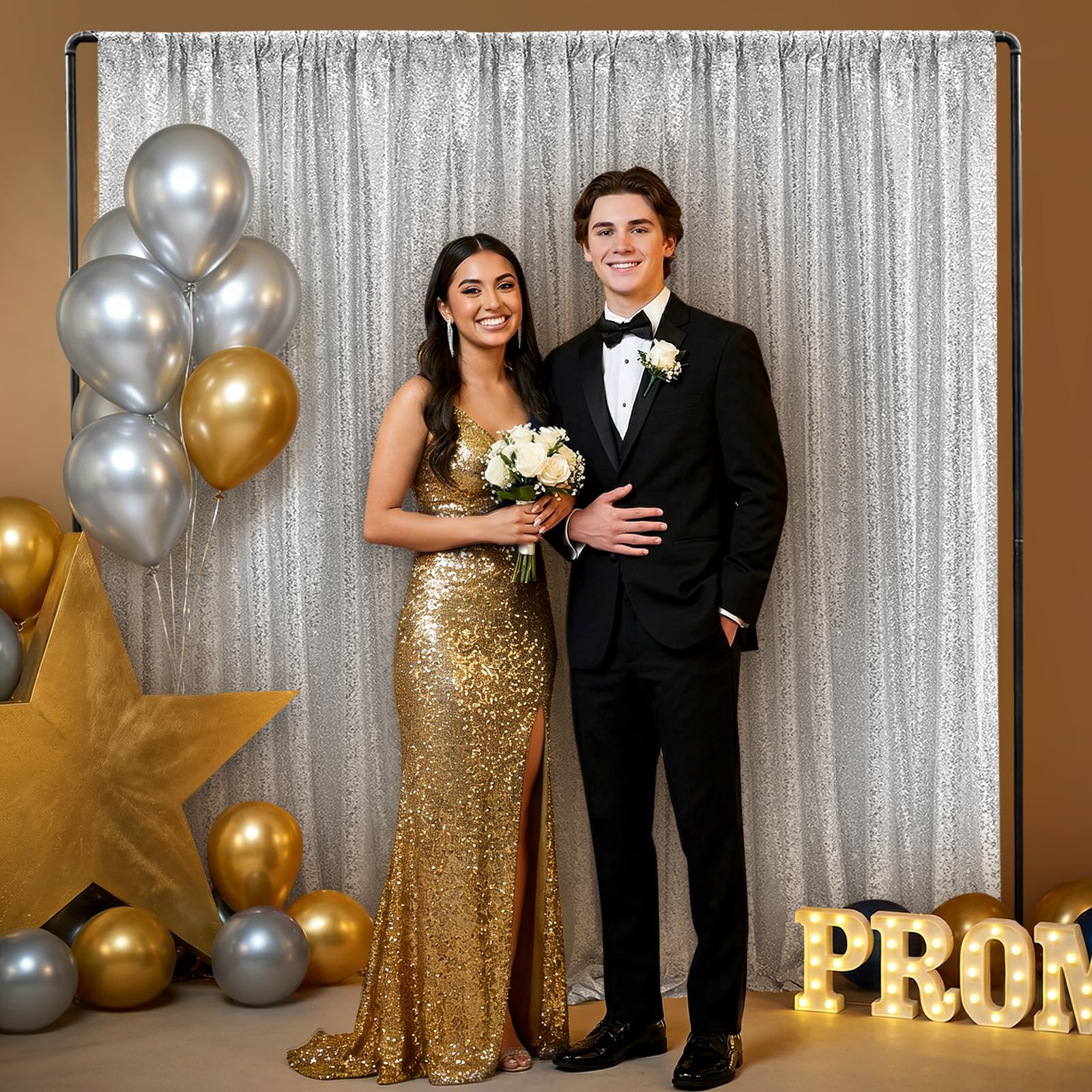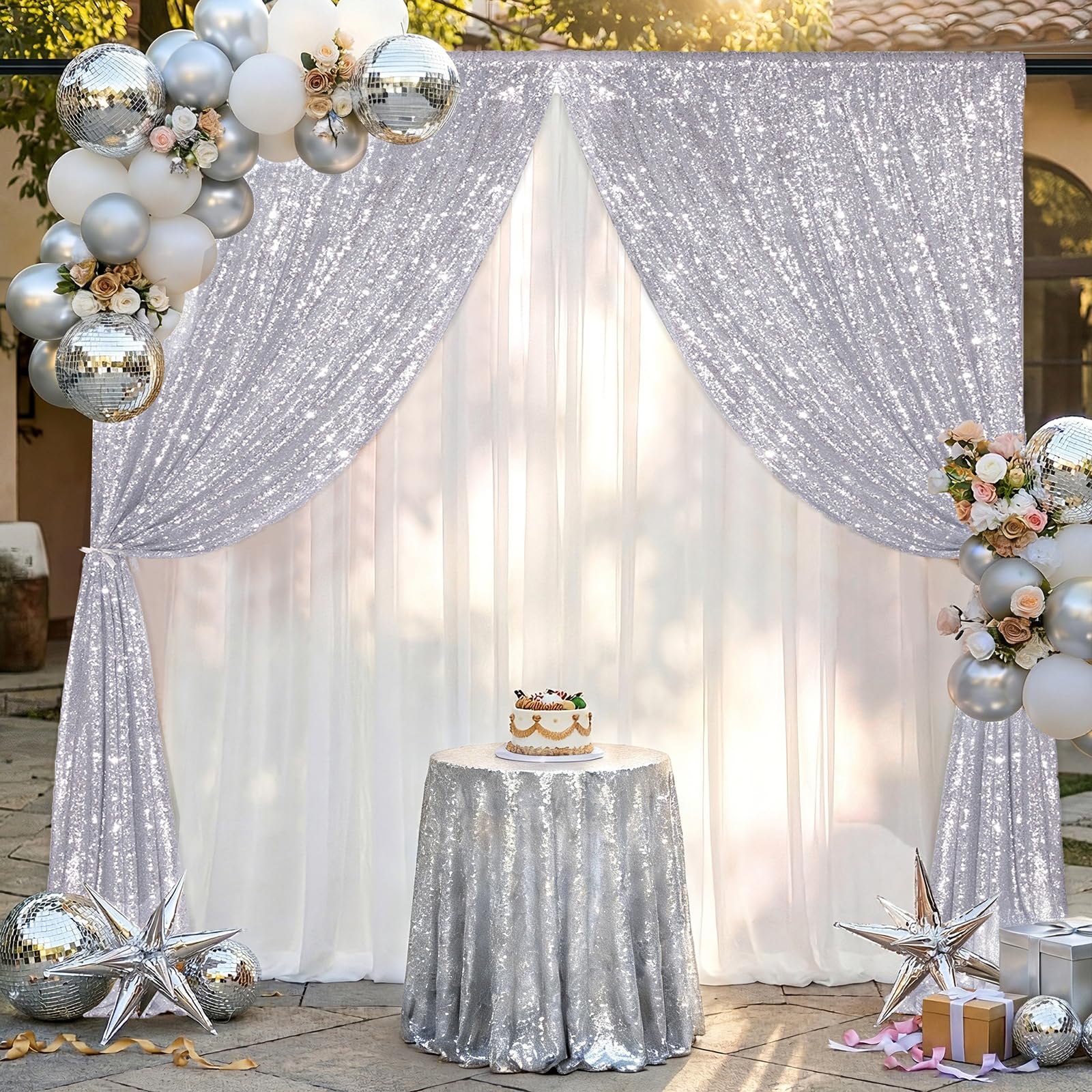 Sequin Backdrop Curtains: Package contains 2Pcs 2ft width by 8ft height backdrop curtains. With a 4-inch rod pocket on the top for easy to be hung on most backdrop stands or curtain rods, and all sides over locked with folded and hemmed edges to ensure the stability during hanging.