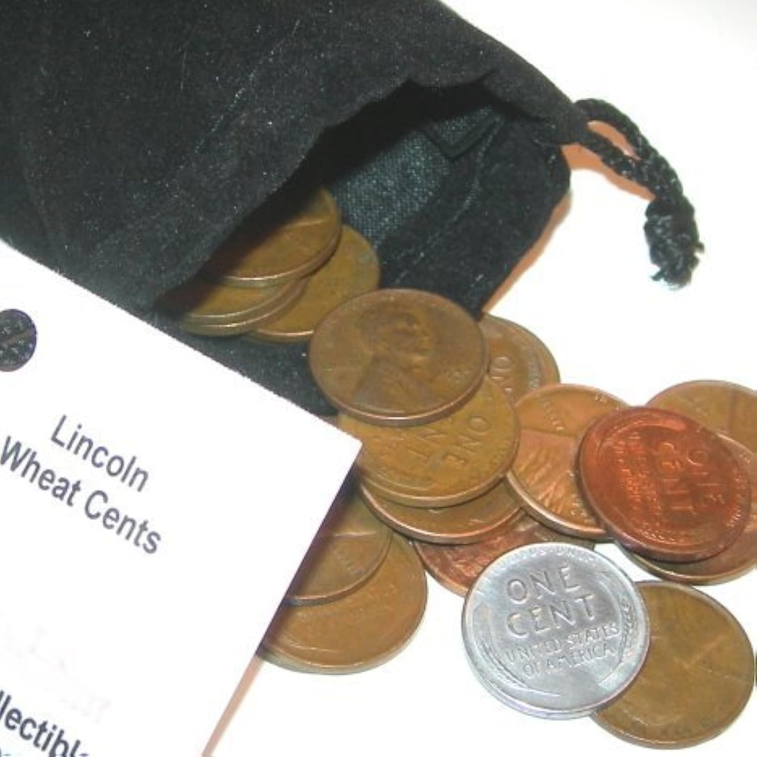 Great assortment of Unsearched wheat cents in average circulated condition. Most will likely be from the 1940's & 1950's but you will likely find some earlier dates too, as well as steel cents. Comes is a velveteen gift bag as shown. Who knows what you might find.