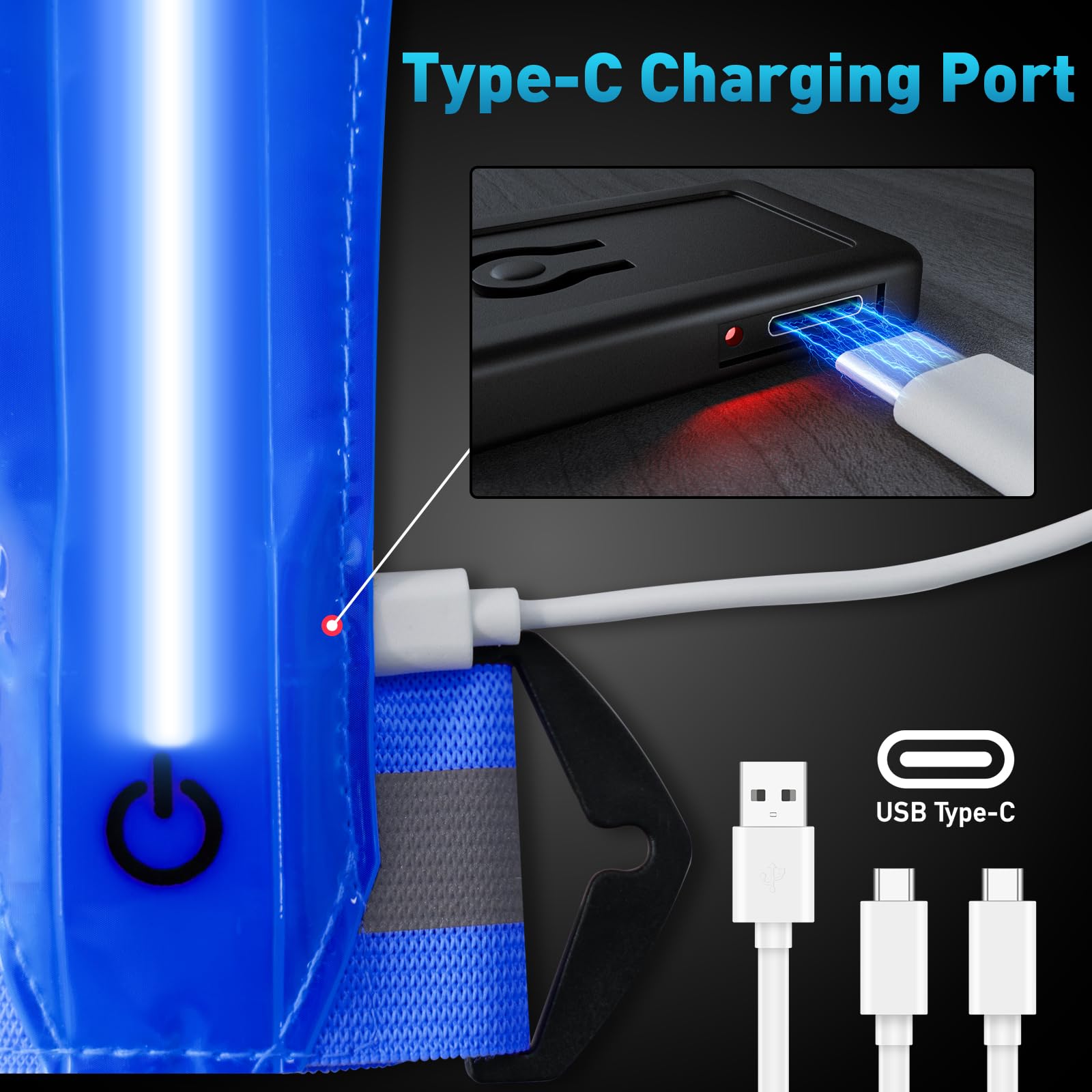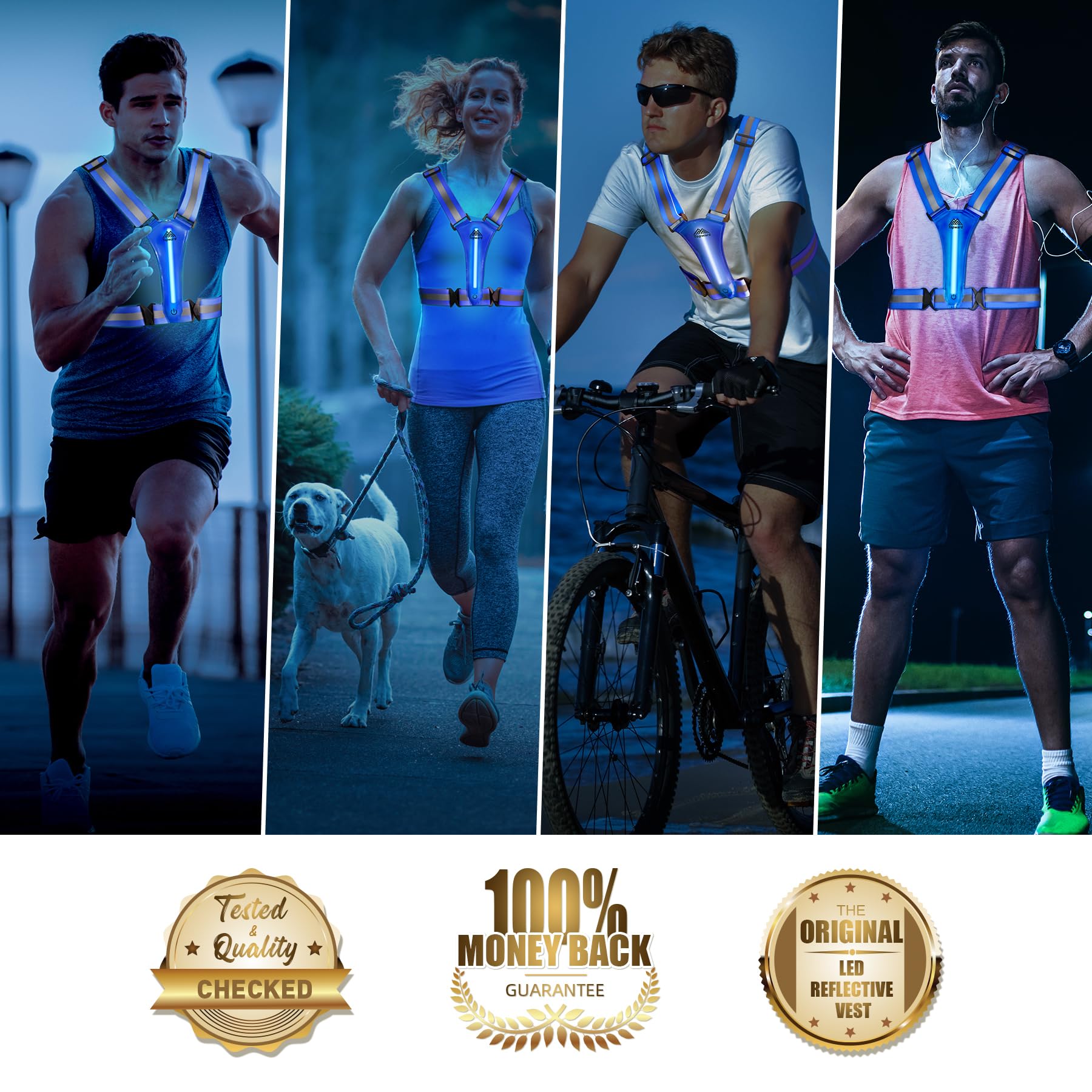 USB RECHARGEABLE LED LIGHT - 70% of pedestrian fatalities happen between 6pm & 6am. It’s a better alternative to traditional safety vests thanks to durable build-in led flash lights. 100 times safer than any other reflective bands at night.