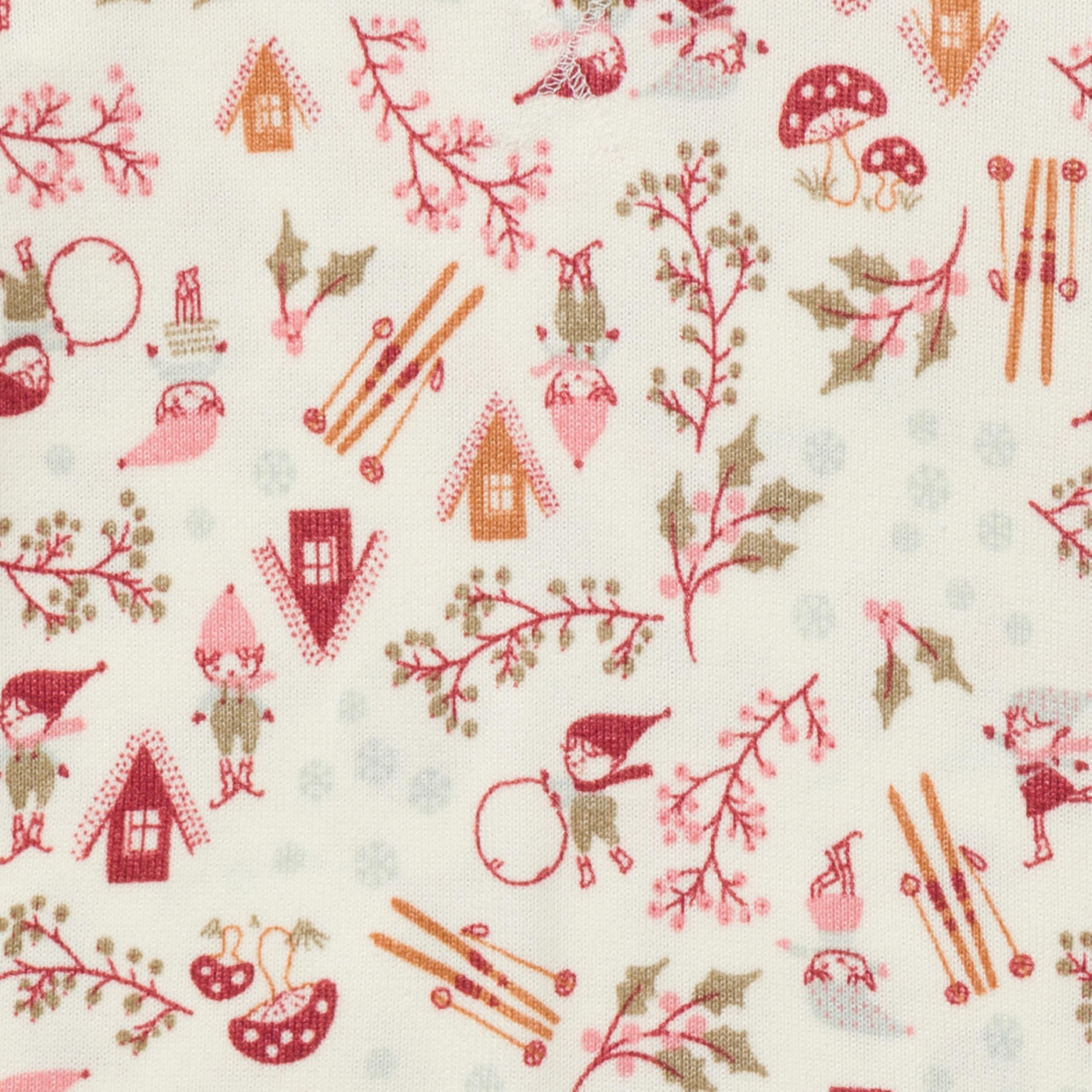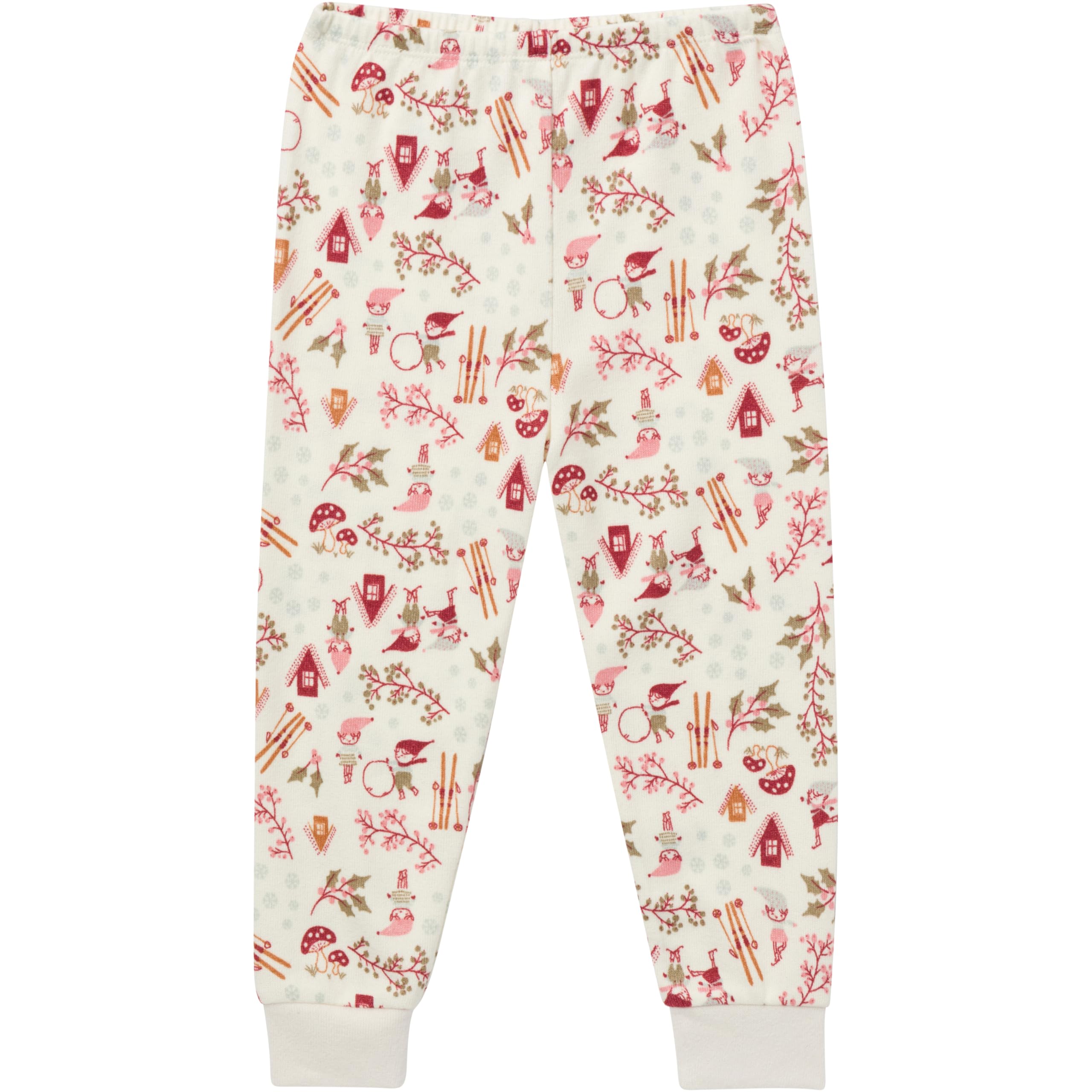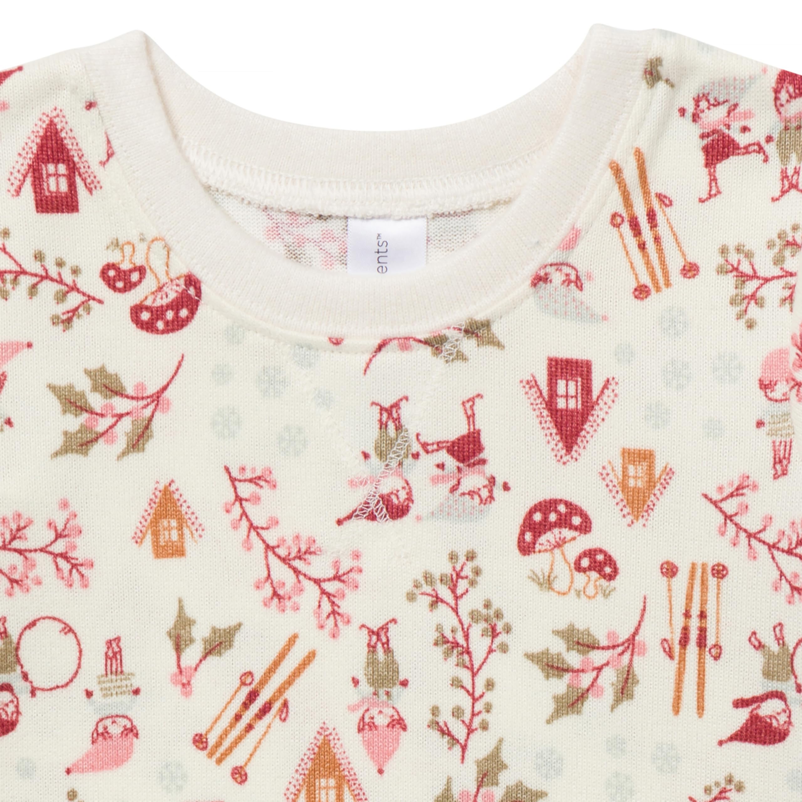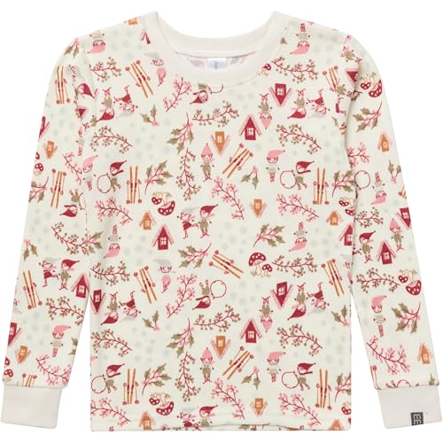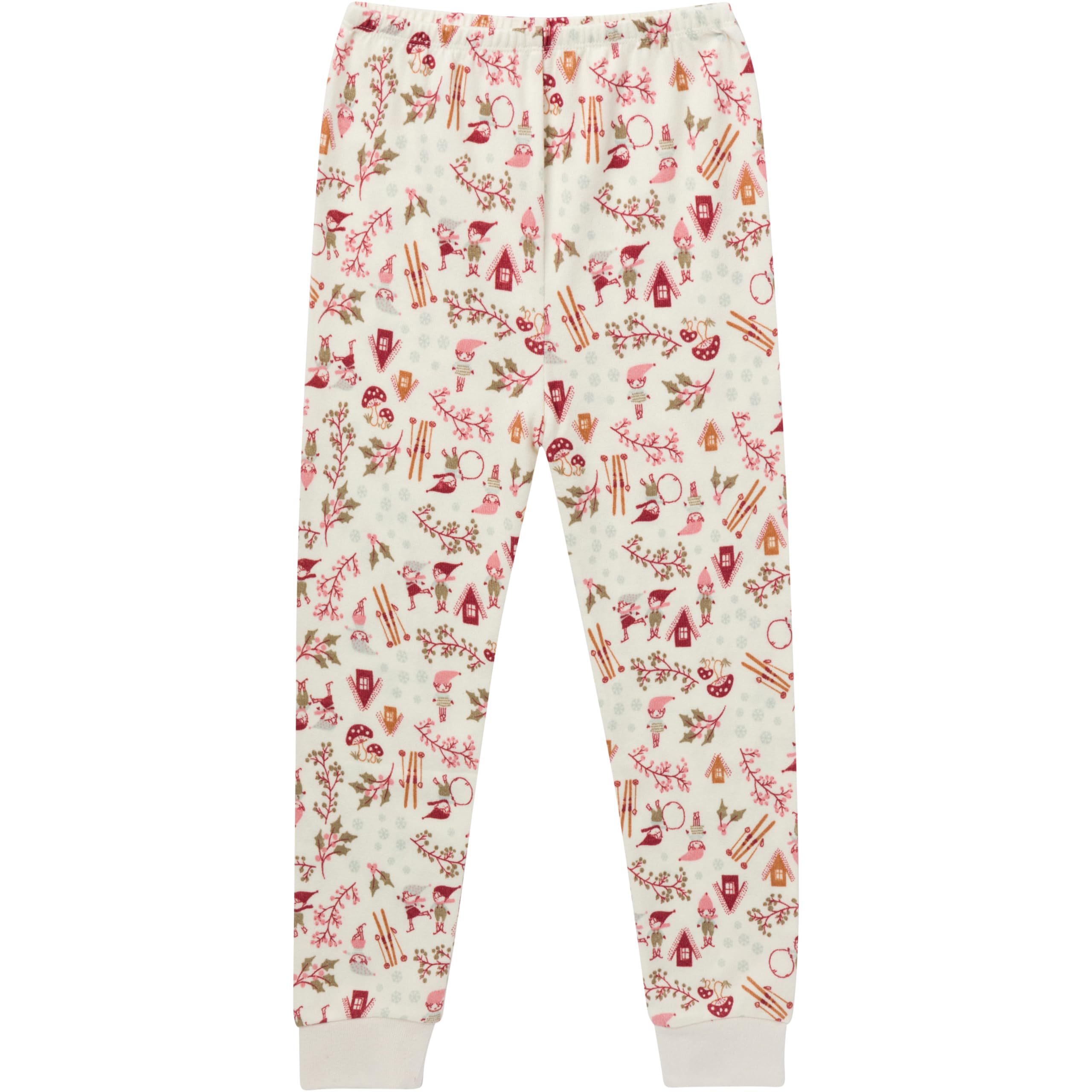 Description Cozy up your little girl for the season with this soft and stretchy 2-piece pajama set, perfect for festive winter nights. Made from exceptionally soft hacci fabric with gentle stretch, it offers a breathable and flexible fit for all-day or all-night comfort. The rounded collar and cinched cuffs at the wrists and ankles help keep everything in place while ensuring irritation-free wear. Finished in a warm off-white hue with red and green accents and a charming winter scene, this snug-fitting set brings cozy holiday cheer to bedtime routines.