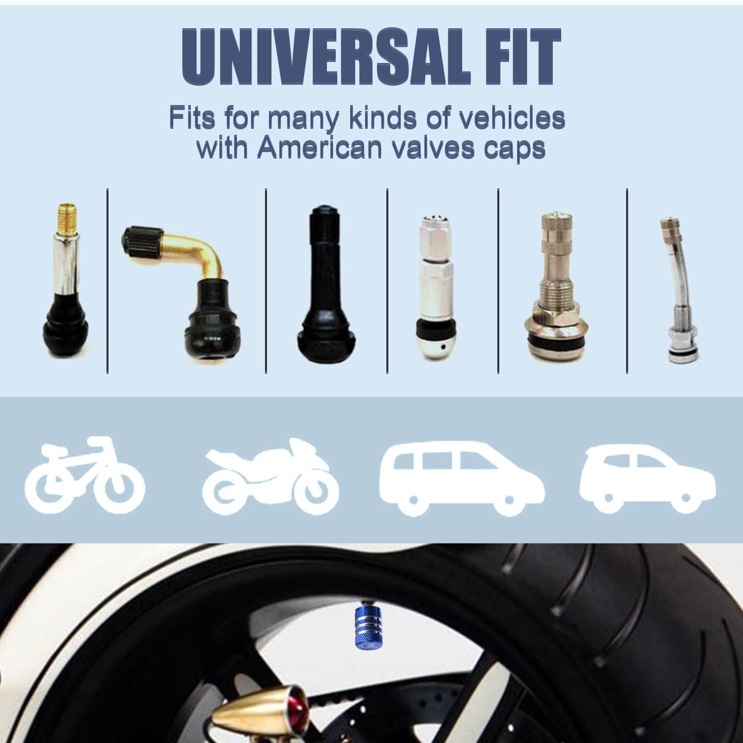 WIDE COMPATIBILITY: Our tire air caps are compatible with all American standard schrader valve stem. Include cars, SUVs, trucks, RVs, bicycles, bikes, and other motor vehicles.