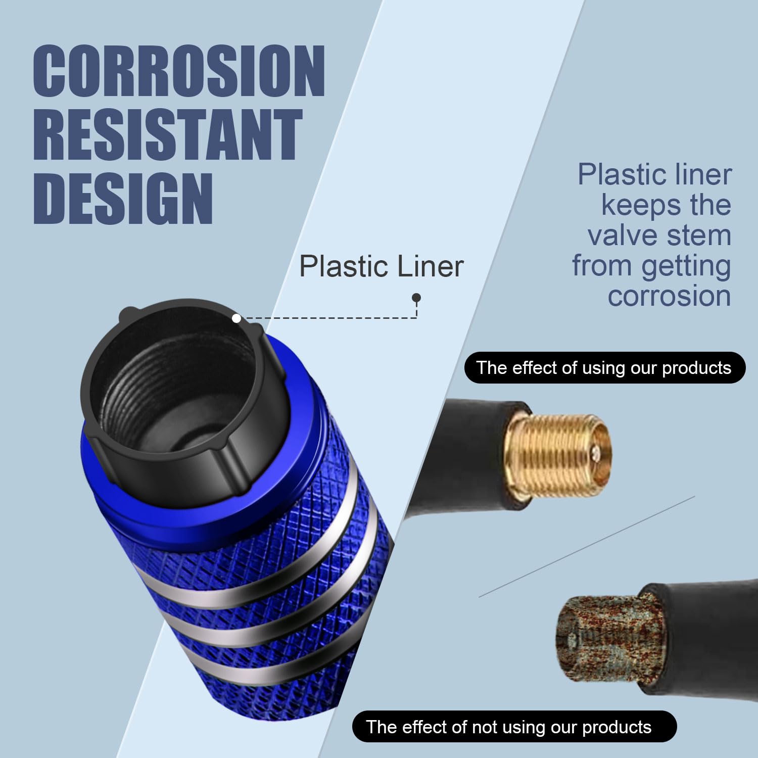 ANTI-SEIZE DESIGN: The tire valve stem caps come with metal shell and plastic insert, which will prevent the valve stem from corrosion, esspecially in wet/cold area.