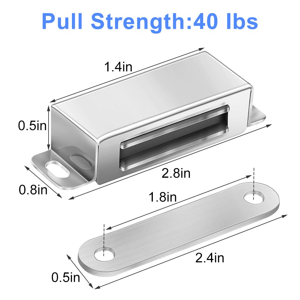 【Strong Magnetic Force 40 lbs】Each Magnetic door closer internally using a single magnet with a strong force that holds the door, drawer, window or gate closed tightly. Heavy duty magnet strength 40 lbs (20kg) suitable for the door size 20"x24" (50x60cm)