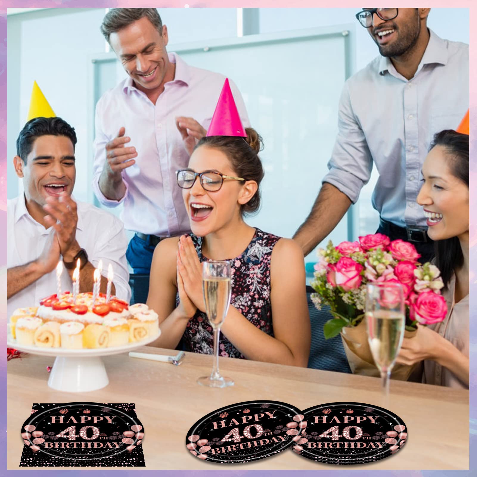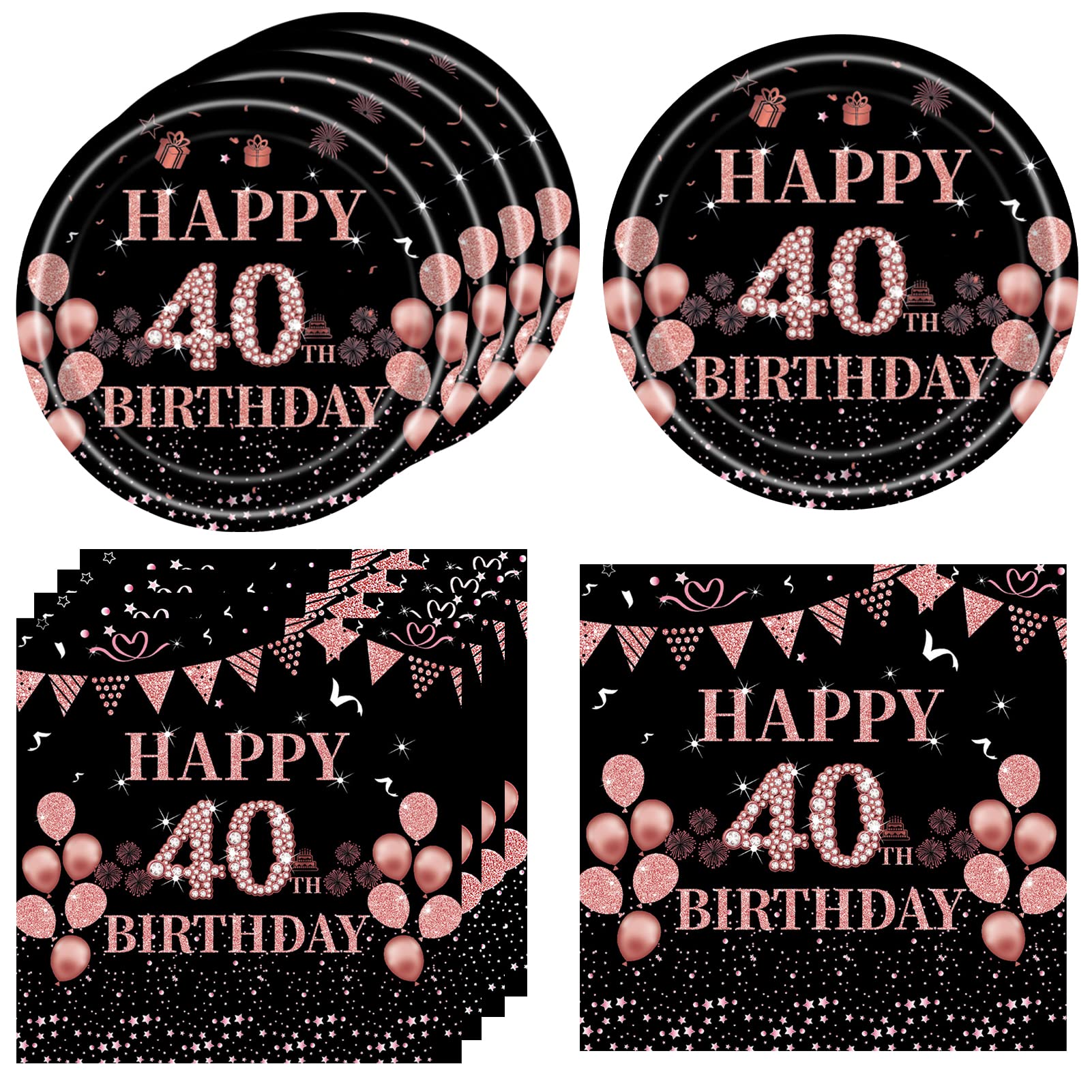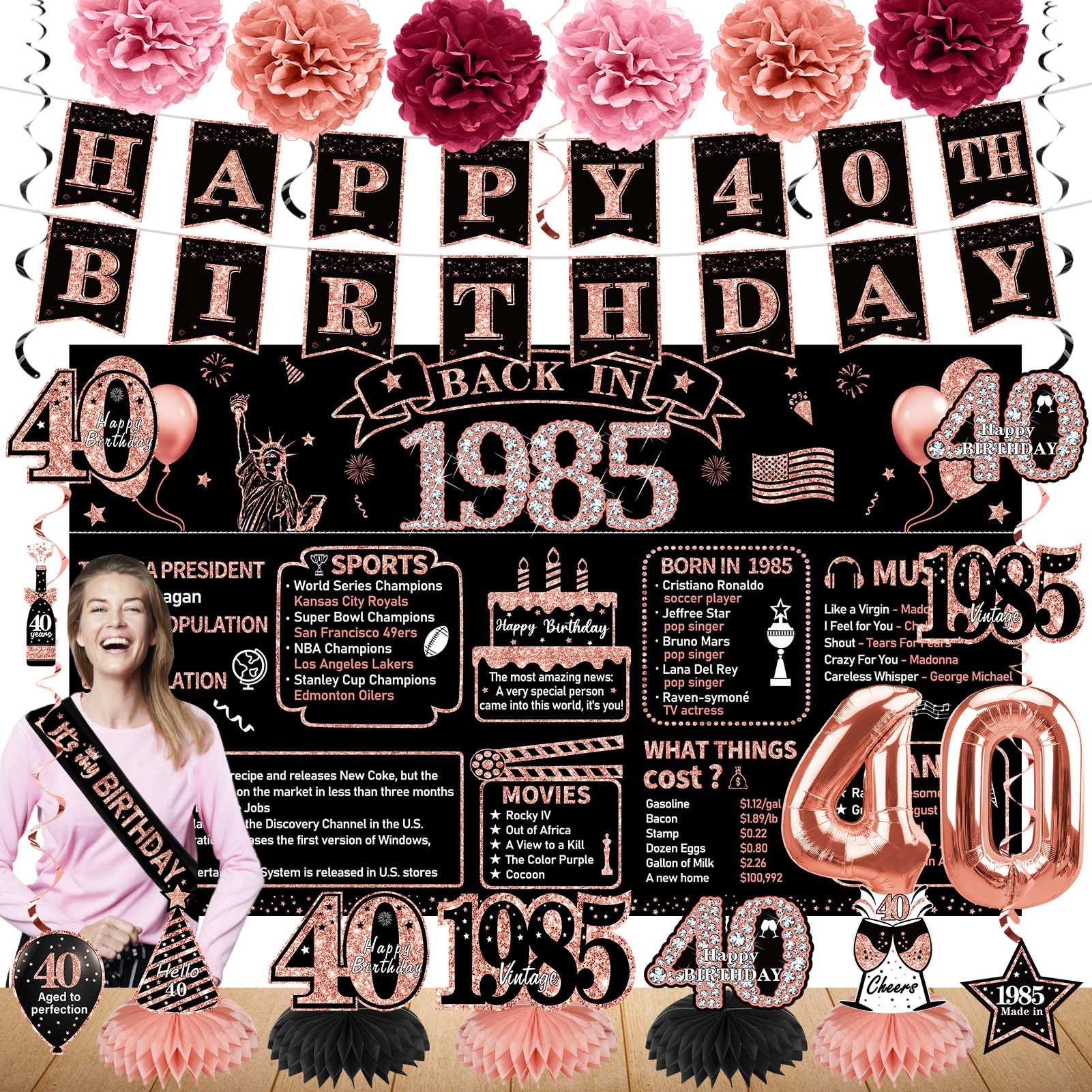 【Viintage 1985 Plates For Women】: With elegant rose gold design,big font "Happy 40th Birthday", with black background, and adding cake, balloons, rose gold pink diamonds ,ribbons and other rich birthday elements,The design is very beautiful and novel,for your Add a rich ambience to the party and impress your family and friends.