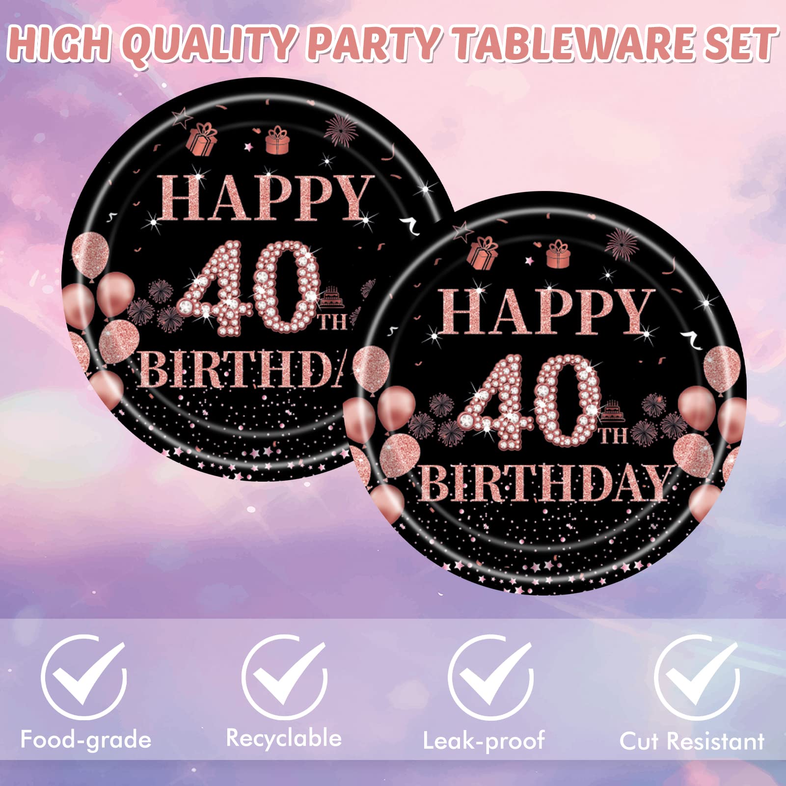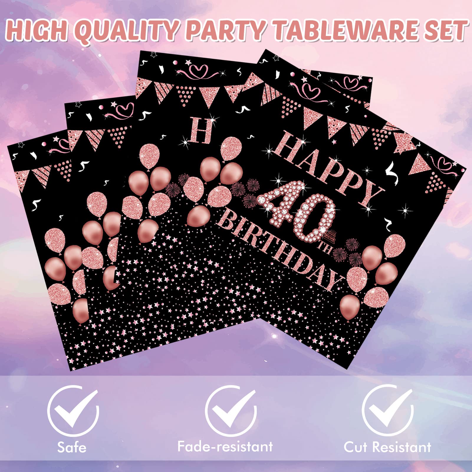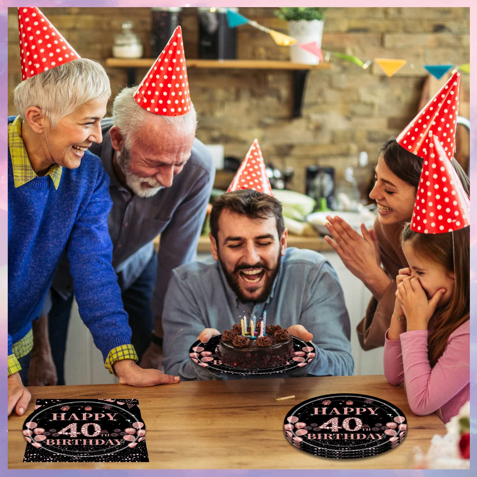 【Viintage 1985 Plates For Women】: With elegant rose gold design,big font "Happy 40th Birthday", with black background, and adding cake, balloons, rose gold pink diamonds ,ribbons and other rich birthday elements,The design is very beautiful and novel,for your Add a rich ambience to the party and impress your family and friends.