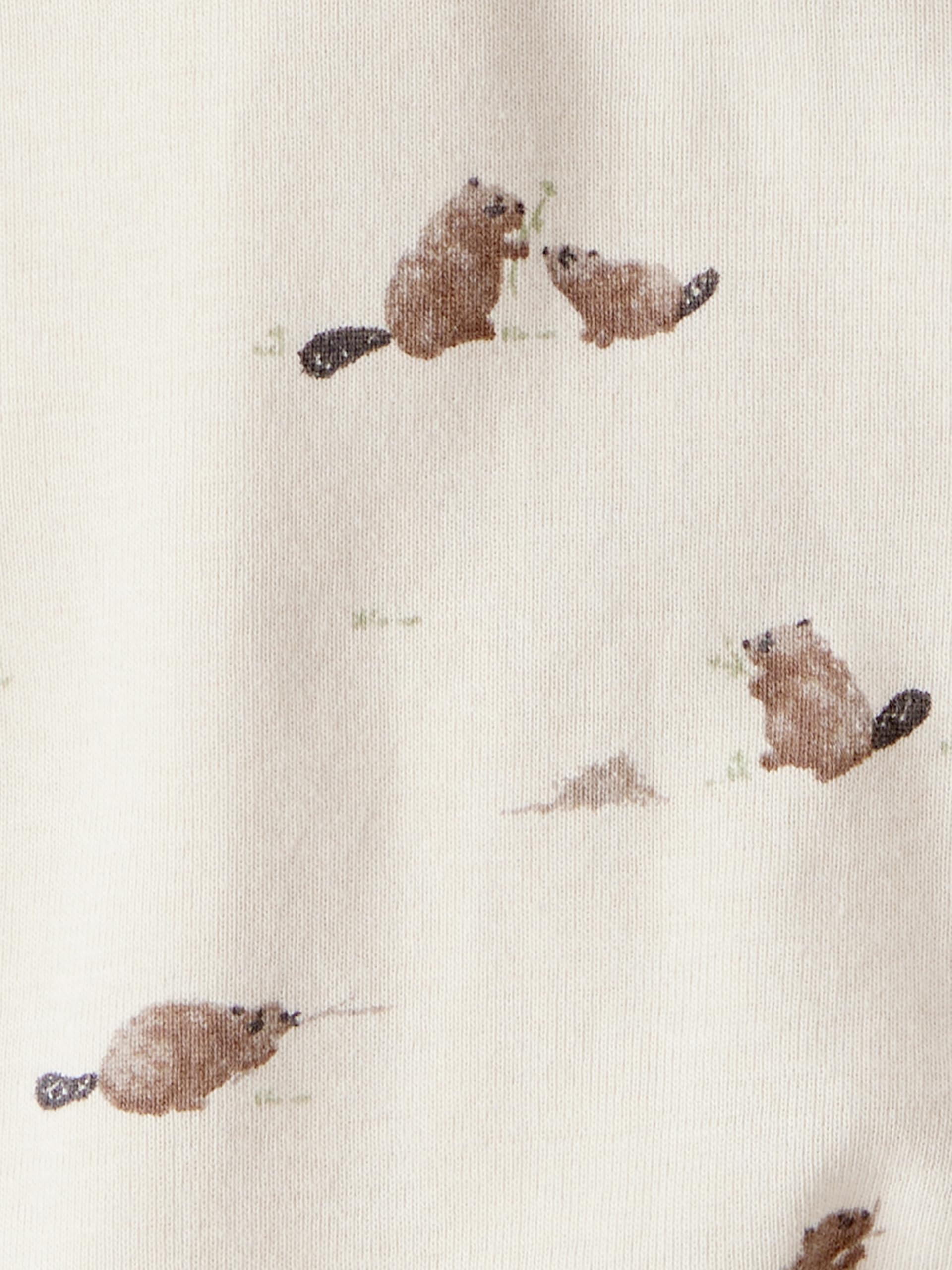 Description Cuddle baby up in this soft, certified organic cotton sleep & play. Made for daily adventures in tummy time, nap time and beyond, this piece is blooming with thoughtful details like a 2-way zipper to keep baby's arms & torso warm during diaper changes, plus built-in footies to keep tiny toes cozy. In our exclusive print, this one piece is wildly cute!
