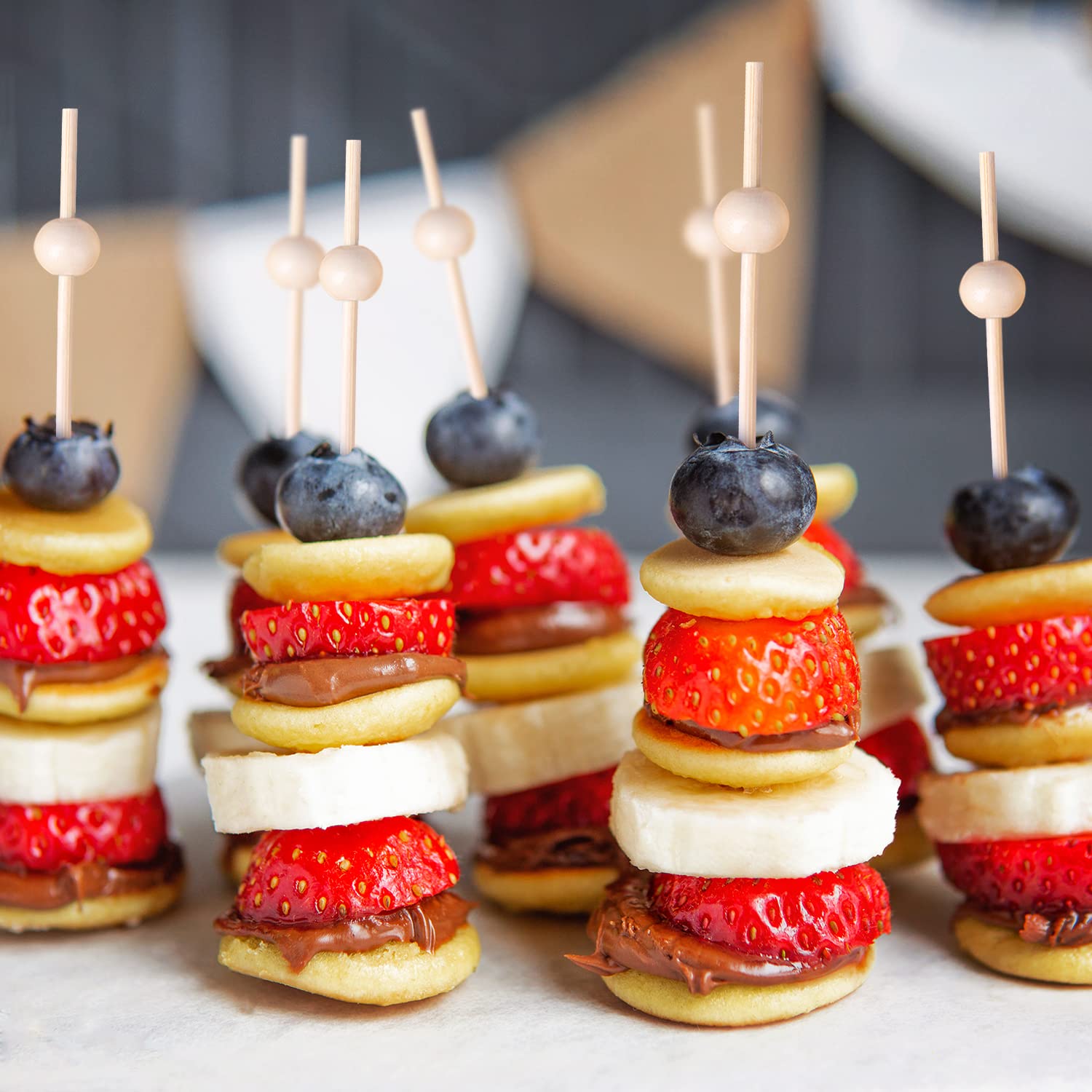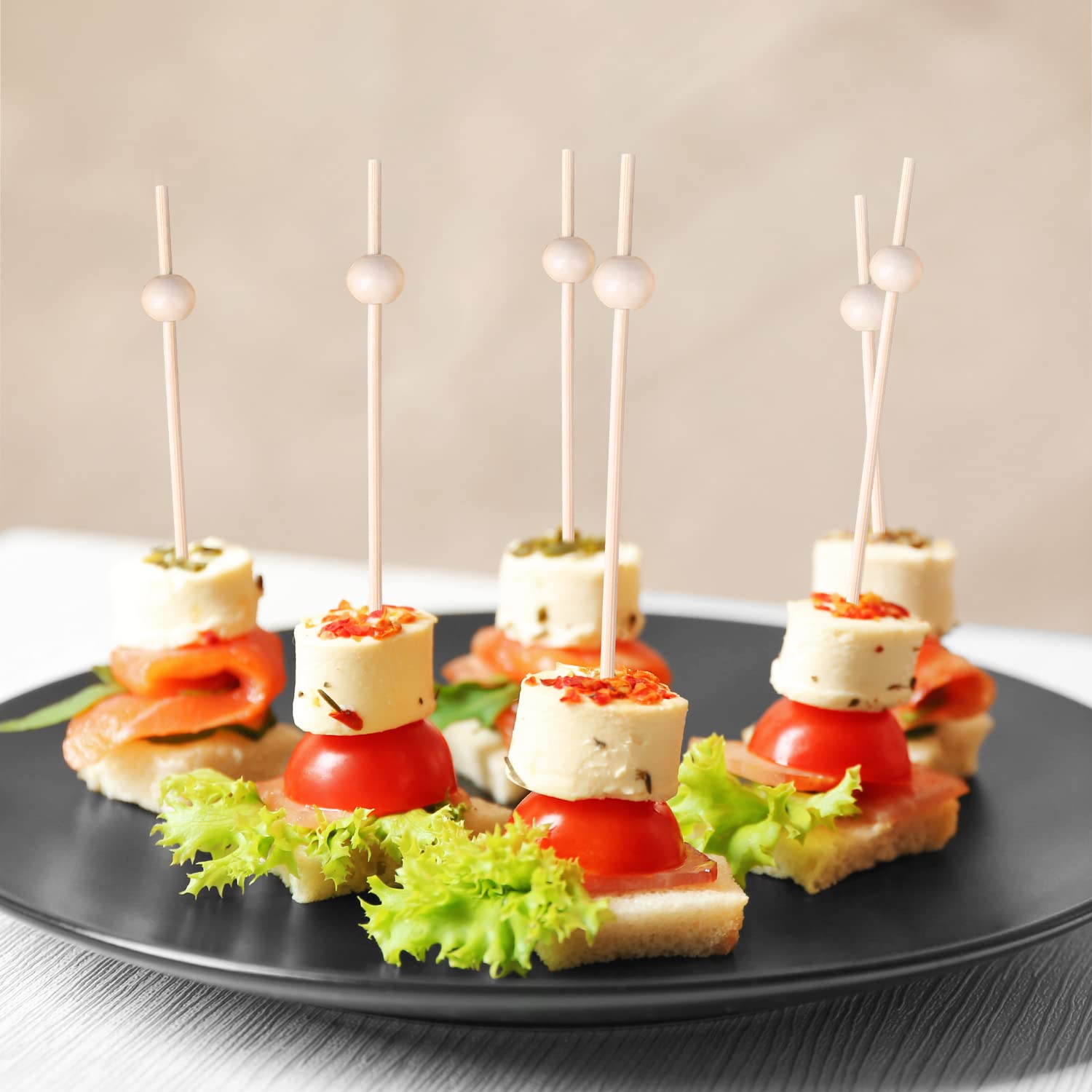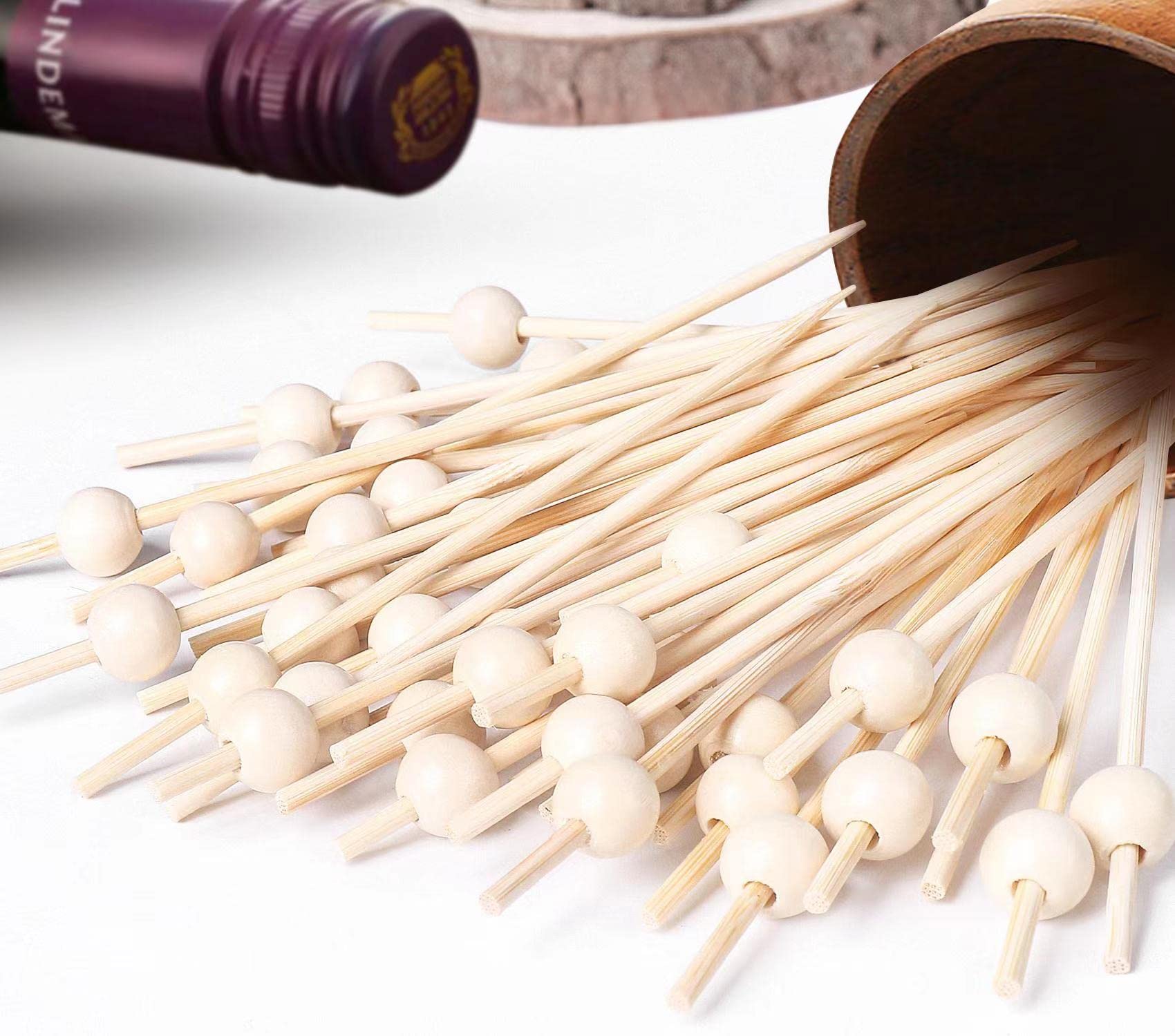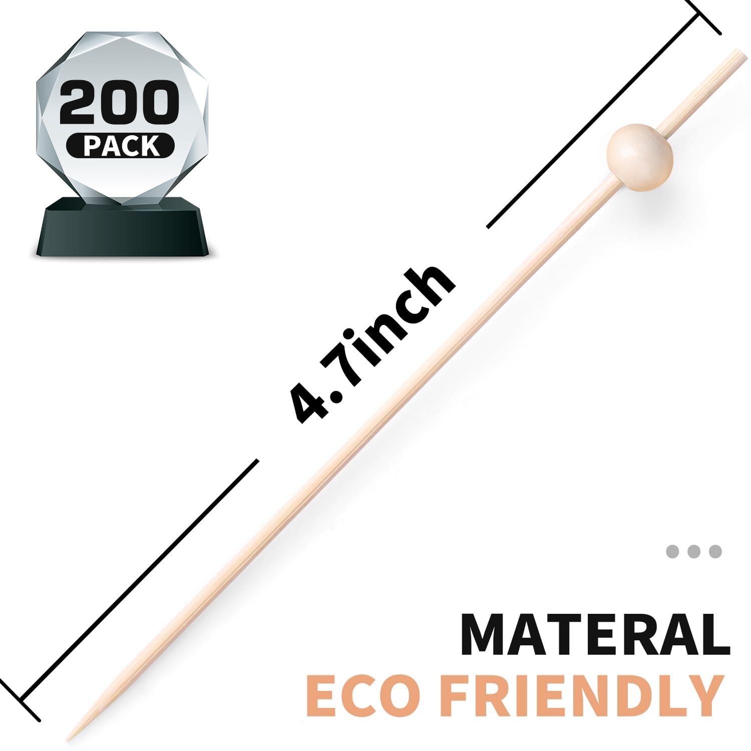 SEANSDA 200PCS Cocktail Picks, Fancy Cocktail Toothpicks for Appetizers Picks, Bamboo Cocktail Skewers for Appetizers Wedding Party Toothpicks, Food Picks for Appetizers - Wooden Pearl (4.7 Inch)
