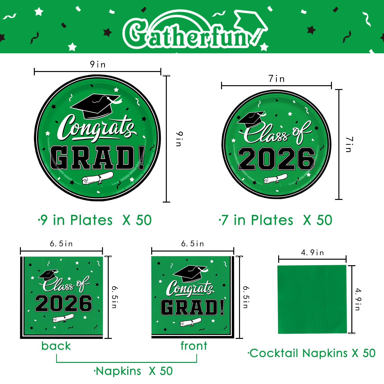 PARTY PACKAGE INCLUDING: 50*dinner paper plates (9 inches), 50*dessert paper plates (7inches) , 50* luncheon napkins, 50* cocktail napkins