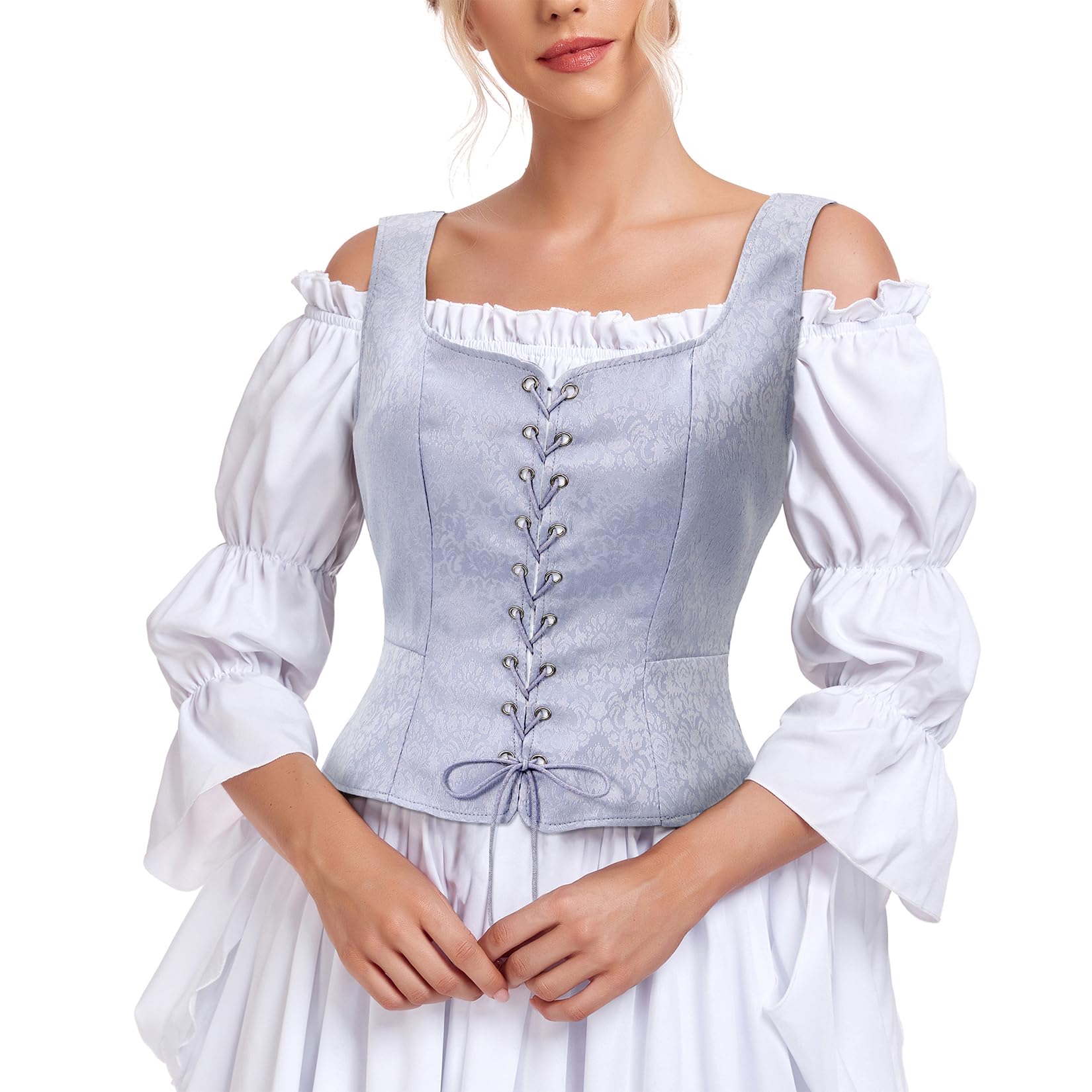 【Match Tips】Medieval corset can be matched with tunic, shirt, dress, skirt, boot, high-heeled shoes. Super cute and versatile, can be wore with any look.